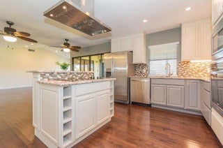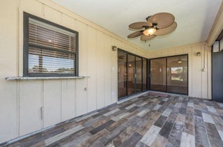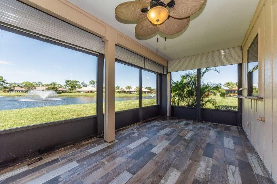 This beautifully remodeled 3/2/1 villa offers serene lake + fountain views from your spacious screened porch - complete w/ pull-down shutters for comfort + privacy. Open, airy floor plan featuring new wood-look vinyl floors, vaulted ceilings, kitchen w/ granite counters, a cook island + sleek stainless-steel appliances. The master suite boasts sliding barn doors + walk-in closet, includes a newer A/C, water heater + washer/dryer. Community offers 2 Fazio-designed championship golf courses, 24/7 manned gated & ''The Pointe'' clubhouse w/ resort-style pool, dining, gyms, tennis.