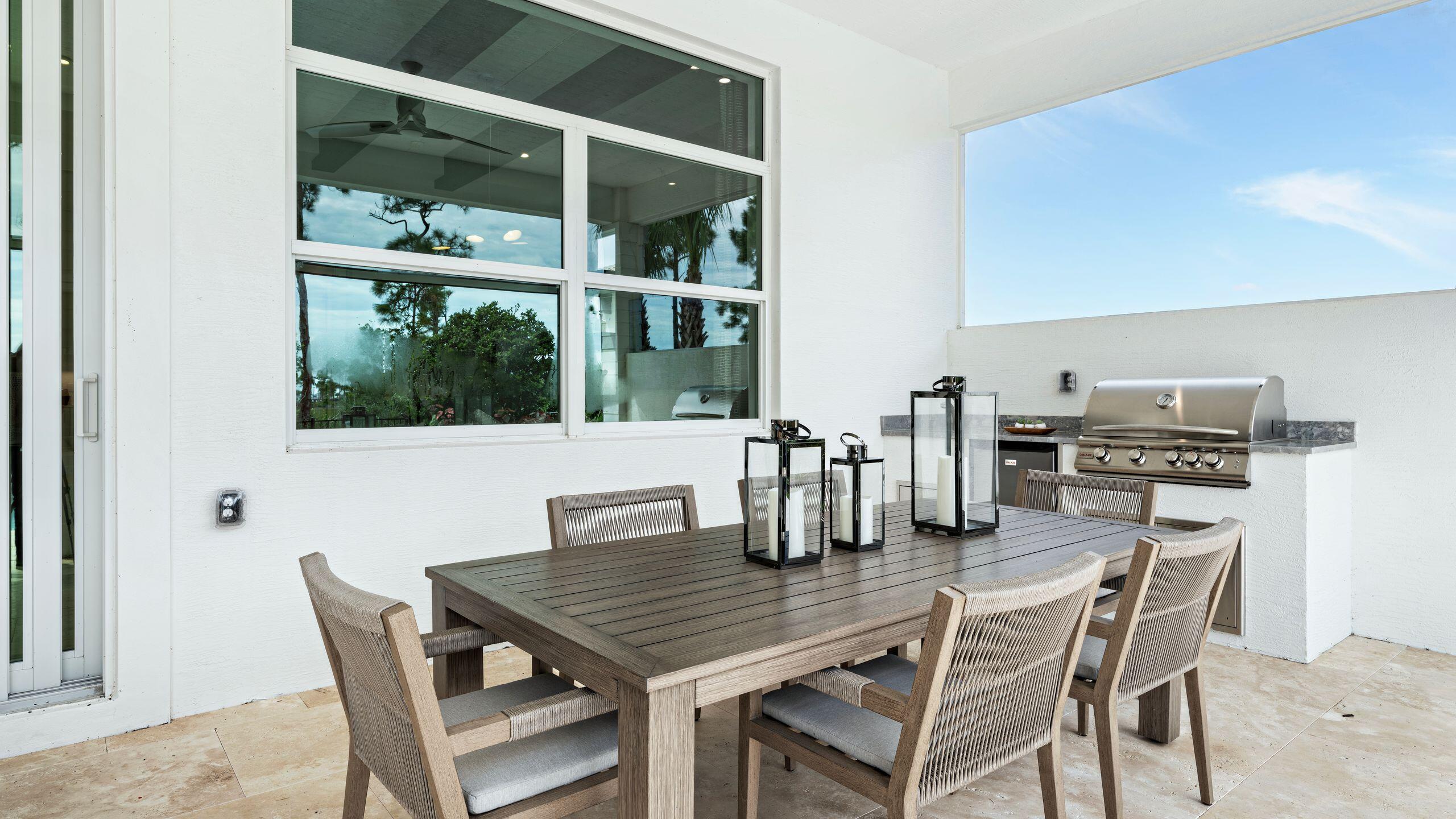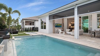 *NEW CONSTRUCTION* Fully Furnished, Decorated Paige Model for sale. This professionally designed and decorated builders' model is being offered for sale with everything you see included. A custom pool overlooking a preserve view, within the gated community of L'Ambiance. This Paige model, built by Kolter Homes has custom trim work and lighting throughout the home. A built-in closet and built-in pantry, as well as an upstairs bonus room with an additional bathroom and closet complete this 3-bedroom, 4 bathroom, 3-car garage, bonus room home. The owners' suite and lanai have been extended 4'. The lanai opens up through a 16' wide slider to a built-in outdoor summer kitchen and a custom pool.There is an added pass-through door from the owners closet to the laundry room and the deluxe shower with free standing tub has been added. L'Ambiance is located directly across from the soon to be completed Great Egret Clubhouse giving residents access to a full service restaurant and poolside bar, 3 separate pools, fitness center, covered playgrounds, indoor and outdoor social spaces, sports courts and more.
