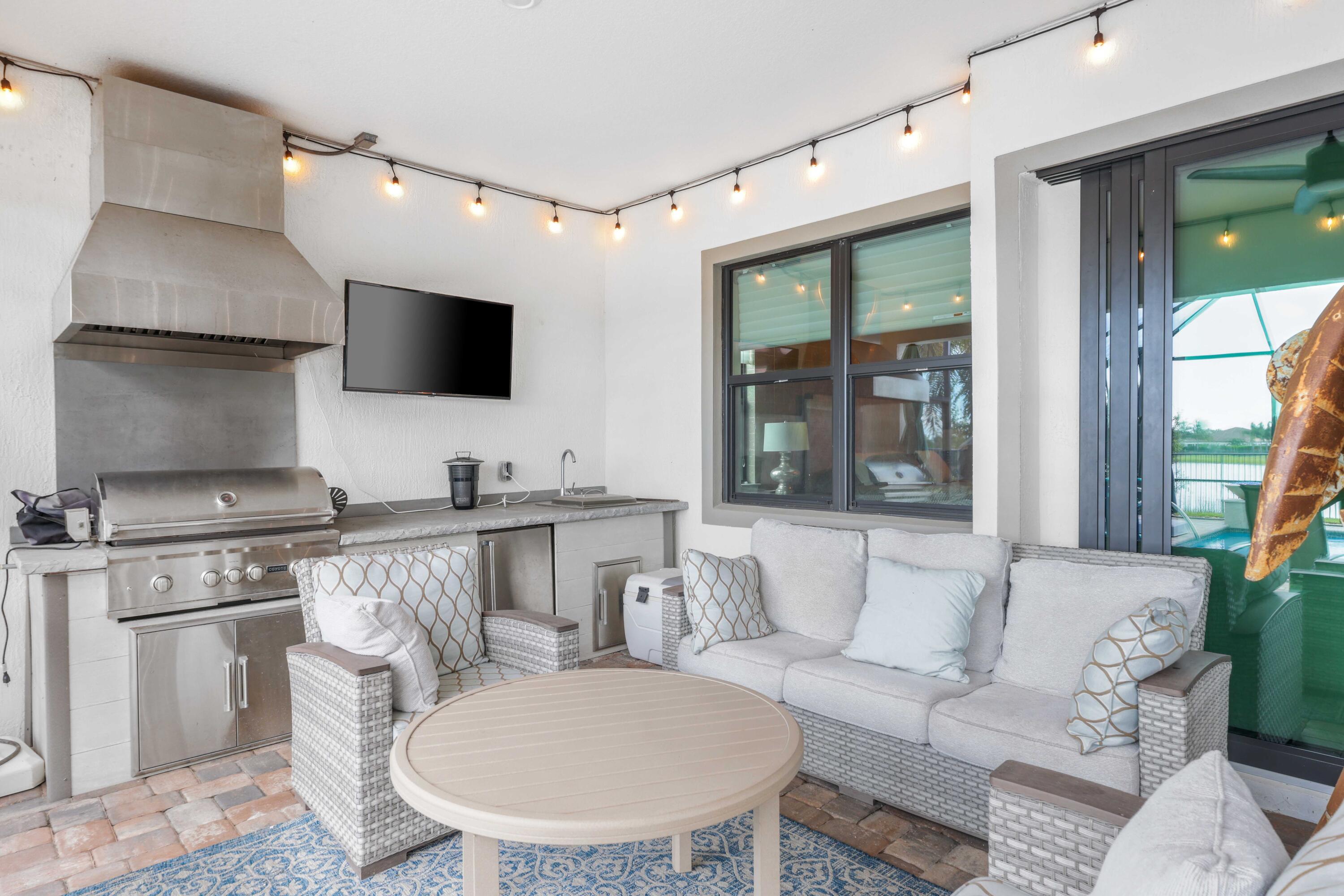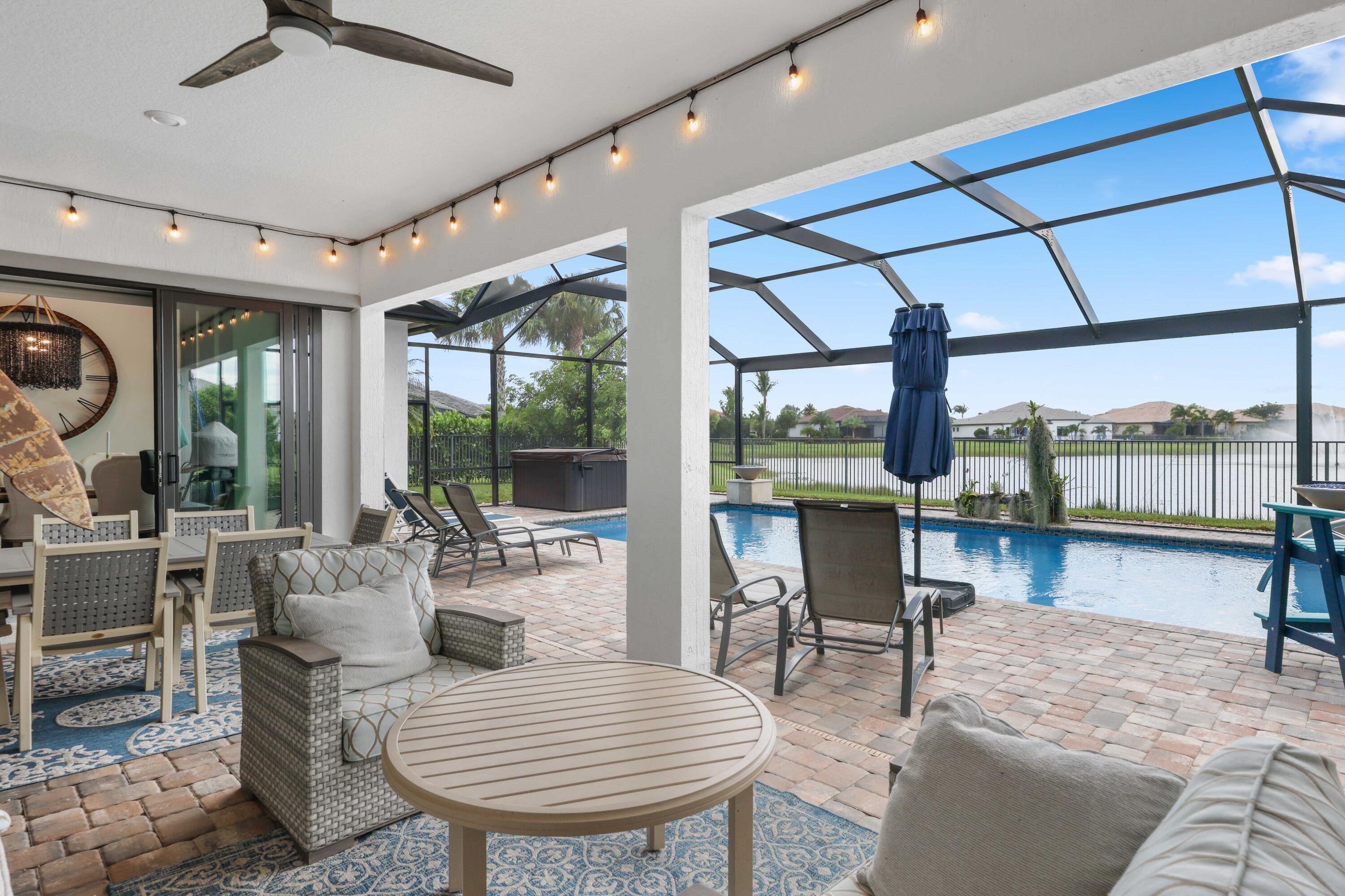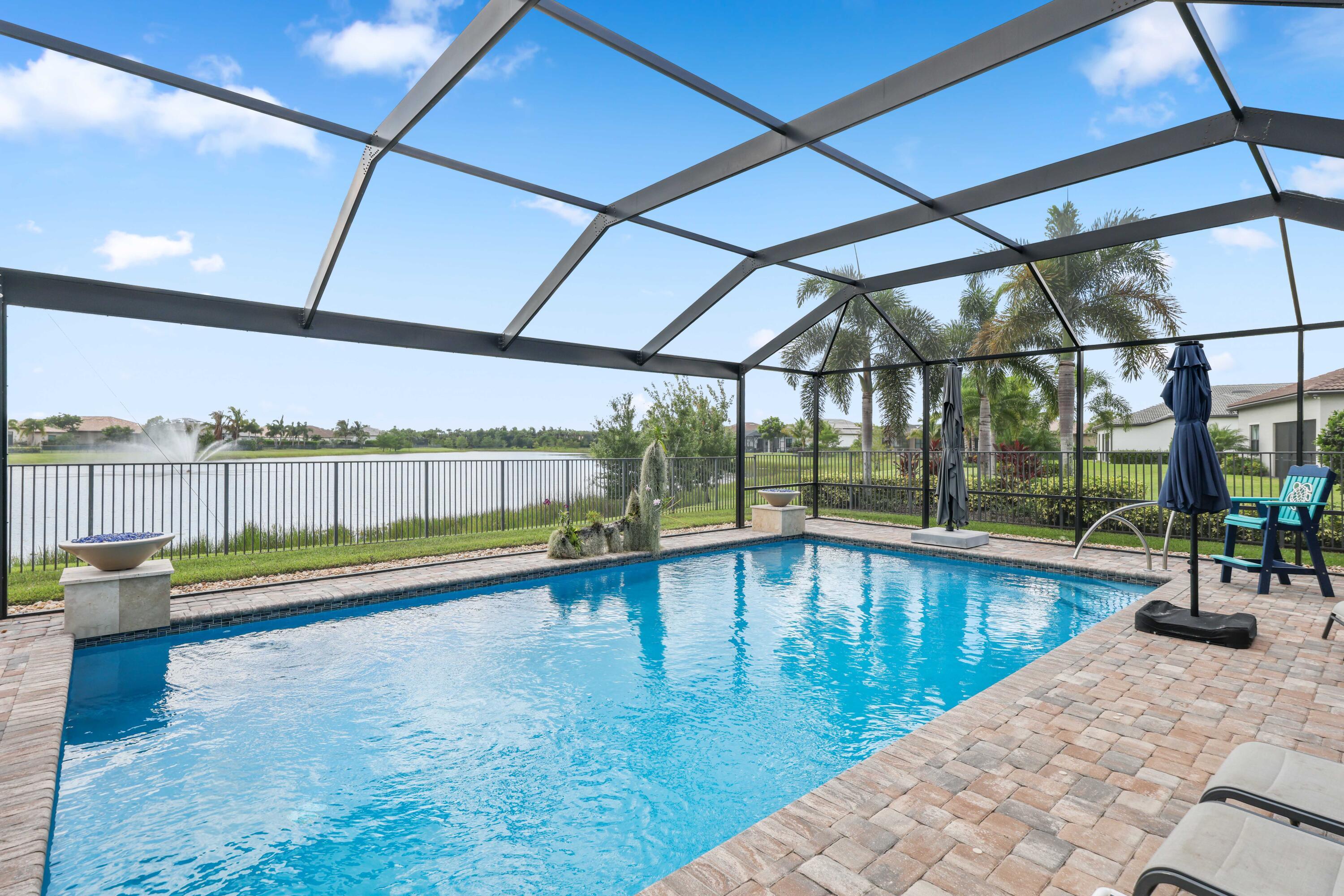 On one of the largest lots in Ancient Tree, this half-acre lakefront home offers wide fountain views and a backyard built for enjoyment. The saltwater heated pool, 6 1/2 feet deep, with fire bowls, hot tub, and panoramic screen enclosure, creates the perfect outdoor retreat. Entertain with ease on the patio featuring a summer kitchen with grill, fridge, ice machine, and trash. Inside, the custom kitchen includes 42'' upper cabinets, upgraded quartz, built-in pet bowls, and premium appliances: Fulgor range with gas burners and double electric ovens, wall oven, microwave, and pot filler. The open great room has coffered ceilings, while the primary suite offers generous closet space. Natural gas serves the dryer, water heater, grill, and burners. Oversized 3-car garage plus golf cart space.Golfers will love being next to Sandhill Crane Golf Club or The Nest, with options for a round on the championship course, the ideal place to practice your short game, or a fun time at the two-story driving range. Enjoy drinks or a meal too. There are new dining and shopping options coming soon for ultimate convenience, including a new Publix. Northlake Boulevard improvements make commuting and errands easy. This property combines outstanding upgrades, a prime location, and a lifestyle that's hard to match in Palm Beach Gardens. Extras: *40k in porcelain tile floors throughout *Zero Corner Sliders are ideal for entertaining or cool weather *Dual fuel main 48-inch range *3 Ovens ideal for entertaining and holidays *Pot Filler *Luxury quartz custom counters with a large edge island *Under and over cabinet lighting on a timer in the kitchen *22-24 k liquid-cooled whole-house Generac natural gas generator *Summer kitchen ready for the perfect BBQ *Panoramic Screen Enclosure to maximize the Lakeview *Gas pool heater *Saltwater pool *Oversized Laundry Room *Oversized 3-car garage with Acrylic floors *High-end flat roof tiles *EV ready with 240-50 amp electric car outlet in garage *Security camera outside and a central alarm system *Sprinkler fed by the HOA *Landscaping and lawn care are included in the HOA, but you can opt out once a year