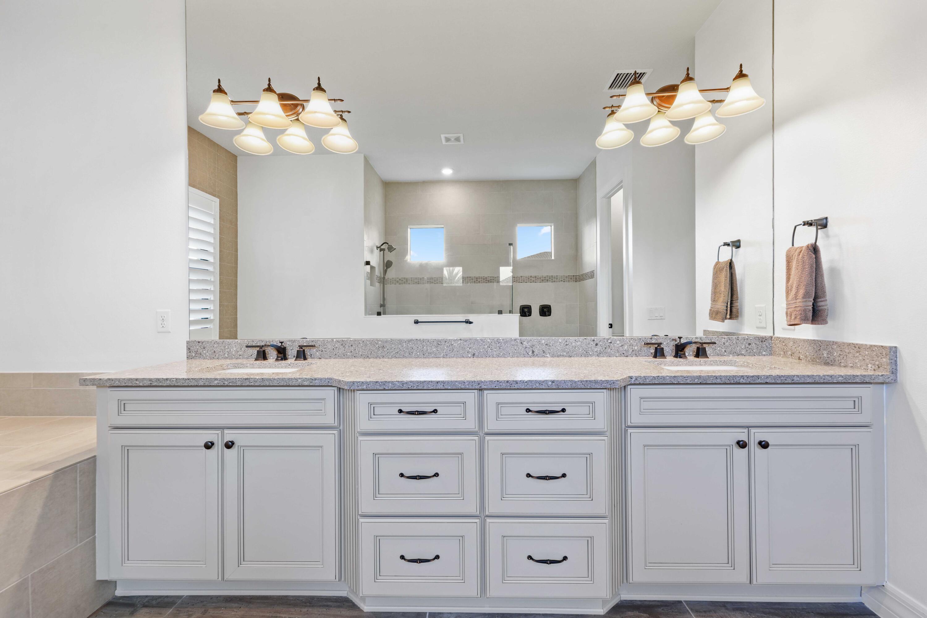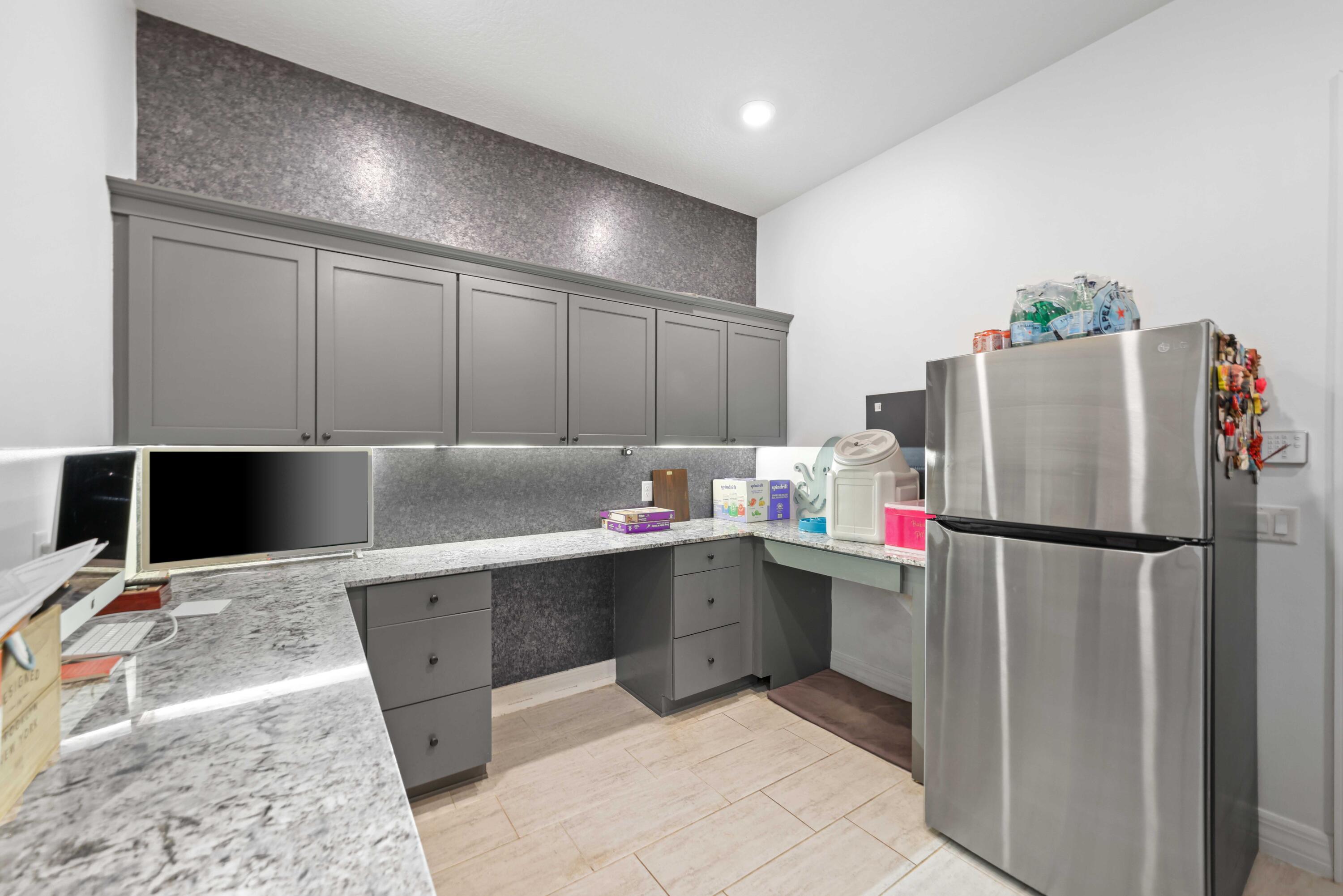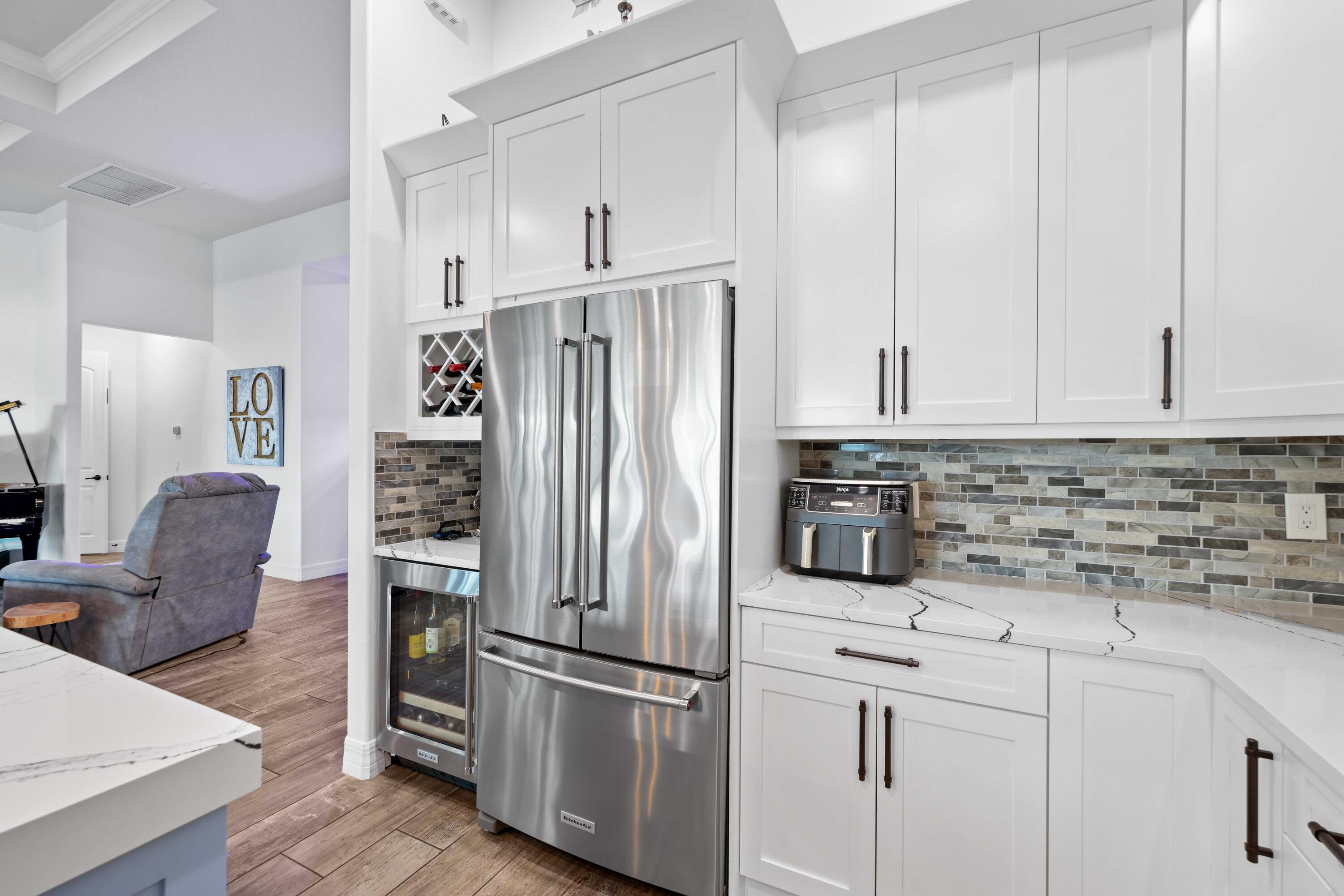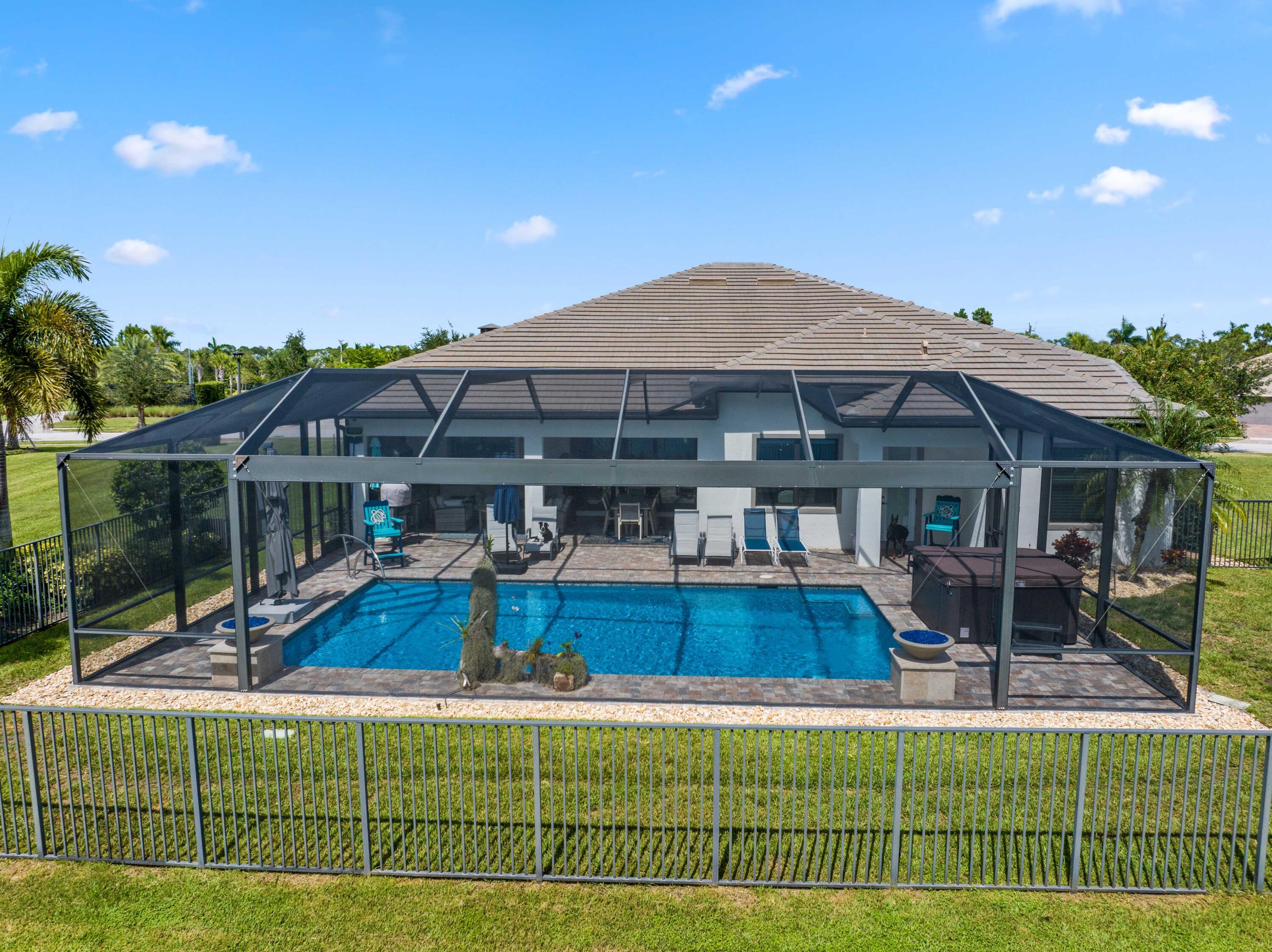 On one of the largest lots in Ancient Tree, this half-acre lakefront home offers wide fountain views and a backyard built for enjoyment. The saltwater heated pool, 6 1/2 feet deep, with fire bowls, hot tub, and panoramic screen enclosure, creates the perfect outdoor retreat. Entertain with ease on the patio featuring a summer kitchen with grill, fridge, ice machine, and trash. Inside, the custom kitchen includes 42'' upper cabinets, upgraded quartz, built-in pet bowls, and premium appliances: Fulgor range with gas burners and double electric ovens, wall oven, microwave, and pot filler. The open great room has coffered ceilings, while the primary suite offers generous closet space. Natural gas serves the dryer, water heater, grill, and burners. Oversized 3-car garage plus golf cart space.Golfers will love being next to Sandhill Crane Golf Club or The Nest, with options for a round on the championship course, the ideal place to practice your short game, or a fun time at the two-story driving range. Enjoy drinks or a meal too. There are new dining and shopping options coming soon for ultimate convenience, including a new Publix. Northlake Boulevard improvements make commuting and errands easy. This property combines outstanding upgrades, a prime location, and a lifestyle that's hard to match in Palm Beach Gardens. Extras: *40k in porcelain tile floors throughout *Zero Corner Sliders are ideal for entertaining or cool weather *Dual fuel main 48-inch range *3 Ovens ideal for entertaining and holidays *Pot Filler *Luxury quartz custom counters with a large edge island *Under and over cabinet lighting on a timer in the kitchen *22-24 k liquid-cooled whole-house Generac natural gas generator *Summer kitchen ready for the perfect BBQ *Panoramic Screen Enclosure to maximize the Lakeview *Gas pool heater *Saltwater pool *Oversized Laundry Room *Oversized 3-car garage with Acrylic floors *High-end flat roof tiles *EV ready with 240-50 amp electric car outlet in garage *Security camera outside and a central alarm system *Sprinkler fed by the HOA *Landscaping and lawn care are included in the HOA, but you can opt out once a year