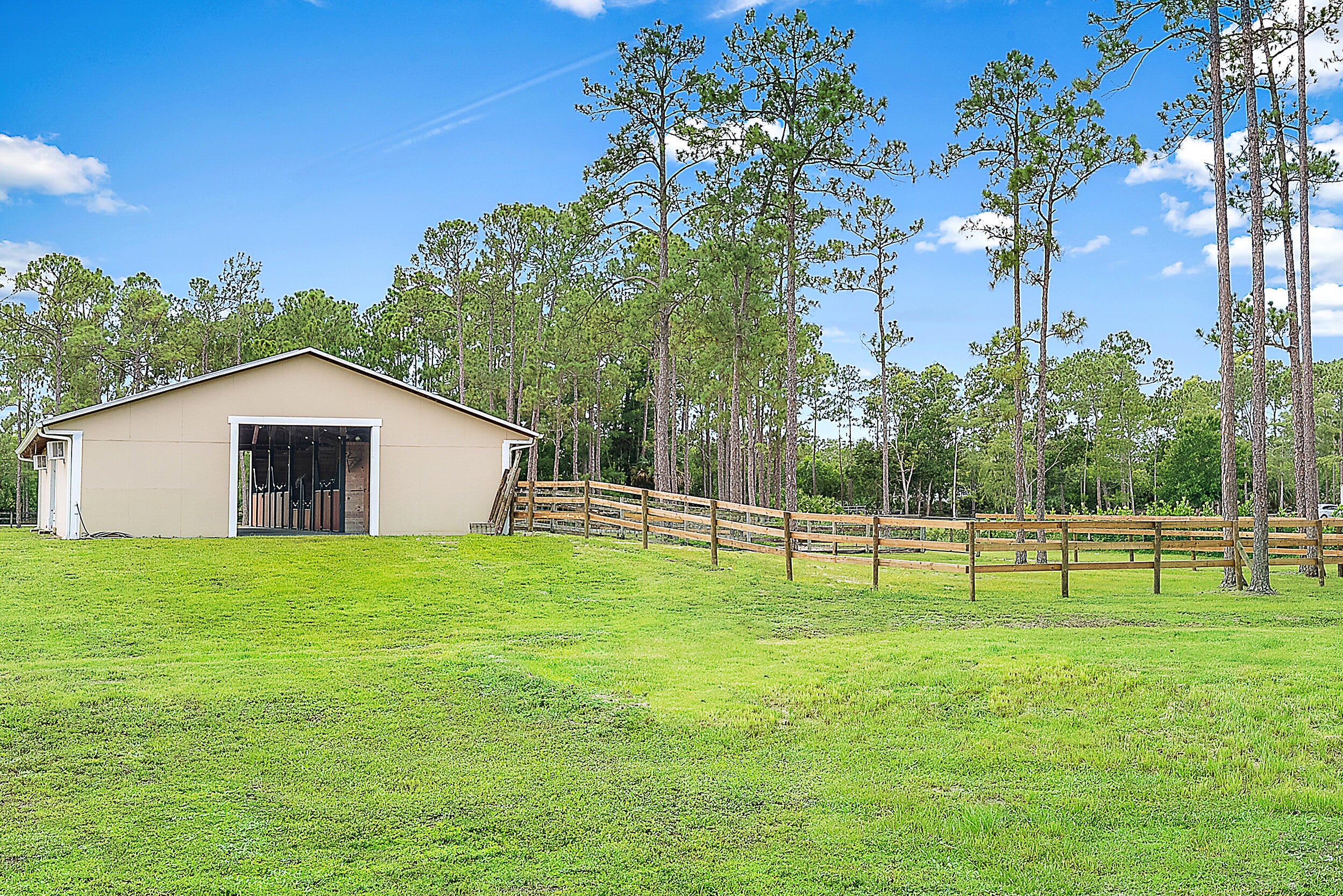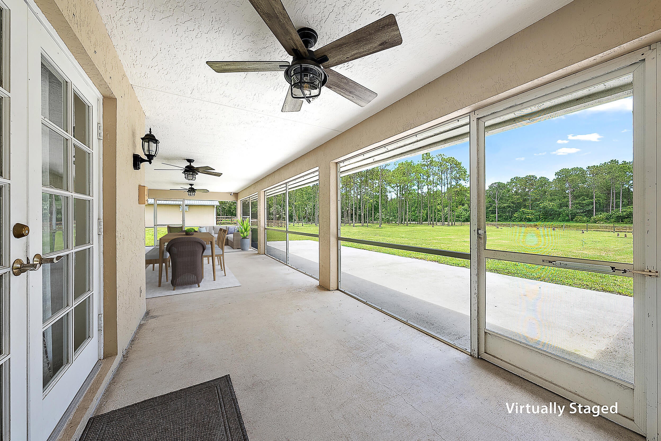 An incredible value in the sought-after Palm Beach Gardens equestrian community of Caloosa, this CBS-built home offers nearly 3,000 sq ft under air, a 2022 metal roof, and a 2018-built 2,000+ sq ft center-aisle barn. The 5-acre fully fenced property provides ample space to add an arena and additional paddocks, making it a versatile choice for equestrian use. The home features a split floor plan, a 702 sq ft garage, and both front and back screened porches. The 2018-barn includes 5 stalls, climate-controlled feed and tack rooms, and multiple turnouts and paddocks. Caloosa community amenities include miles of riding trails, a 32-acre horse park, pickleball courts, playground, and picnic areas, all with low HOA dues. Conveniently located minutes from shopping, dining, and top-rated schools.Recent updates: Metal Roof (2022), Barn (2018), HVAC (2018), Water Heater (2015).