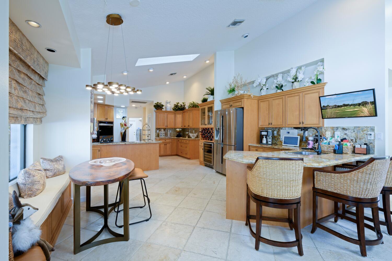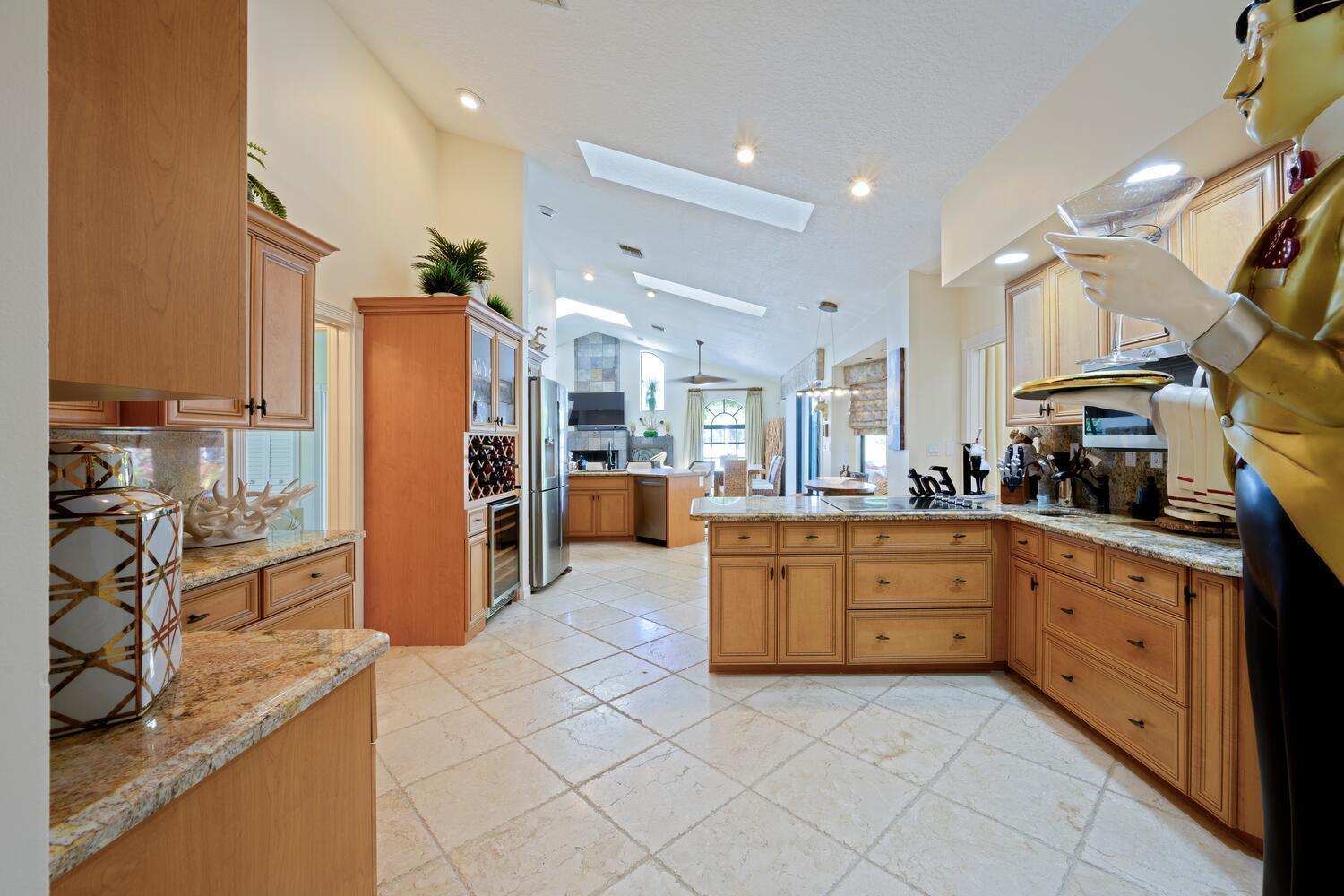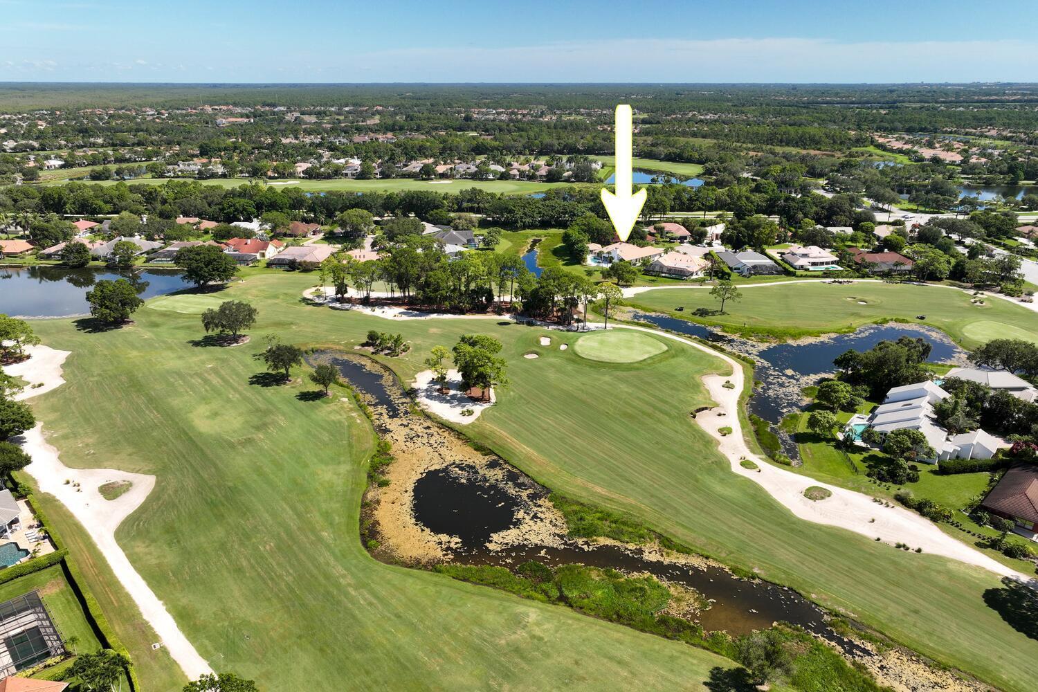 Discover luxury living in the heart of PGA National's prestigious Marlwood. Perfectly situated on the 13th hole of The Match Course, this elegant 5-bedroom, 3 full bath 2 half bath estate (including a private casita) blends timeless design with resort-style amenities offering the ultimate in South Florida living.The main residence features 4 bedrooms, 2 full bath and 2 half baths, with a thoughtfully designed layout ideal for entertaining. A custom wood front door with glass accents welcomes you into marble-clad living spaces, a sunken living room with sliders to the pool, custom wall coverings, designer lighting, recessed lighting, and skylights. A tranquil water feature and artful details, including sculptures that convey, enhance the home's serene ambiance.The primary suite is a private retreat with direct access to the pool, a sitting area, custom walk-in closet, and a luxurious bath featuring marble floors, jetted tub, dual-head shower with glass doors, plantation shutters, and a separate water closet with bidet. The gourmet kitchen boasts double wall ovens, stainless steel appliances, granite counters, wine cooler, built-in wine rack, two sinks, full backsplash, and rich wood cabinetry with glass accents. Enjoy casual dining in the breakfast nook overlooking the pool, or cozy up by the wood-burning fireplace in the family room. Additional highlights include a formal dining room, versatile office, and a well-equipped laundry room with granite countertops, sink, and storage. Step outside to your private backyard oasis, featuring a 15x35 Gunite saltwater pool with fountains and heater, sandblasted marble decking, remote-controlled screens, outdoor shower, and a fully outfitted summer kitchen with fire feature, grill, refrigeration, and cabana bathall within a fully fenced yard. The detached casita includes a living room, kitchen, bedroom, full bath with shower, plantation shutters, and private entryideal for extended stays, guests, or a home office. Additional features include hard-wired security cameras, skylights, and elegant finishes throughout. Marlwood Estates offers peaceful, tree-lined streets and is nestled within PGA National, a renowned golf and resort community offering optional memberships for golf, tennis, pickleball, spa, and fitness. Enjoy world-class amenities, five championship golf courses, and a vibrant social lifestylejust minutes from The Gardens Mall, Downtown Palm Beach Gardens, fine dining, and Juno Beach. Conveniently located minutes to major highways 195, Florida's Turnpike and PBIA. This exceptional property is the perfect blend of privacy, sophistication, and unmatched location.