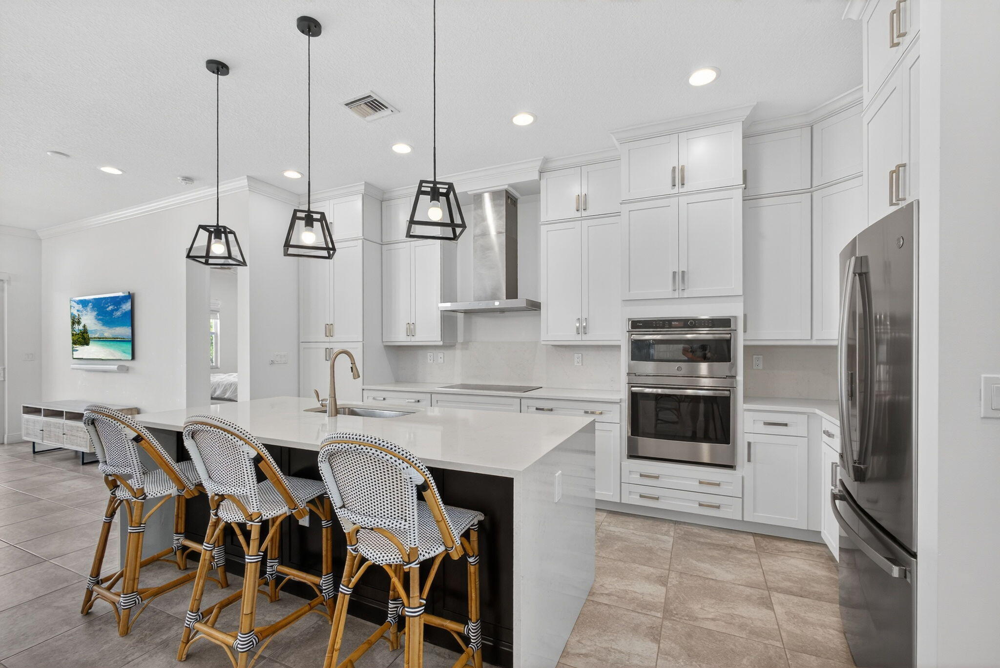 Built in 2021, this stunning contemporary 4-bedroom, 4.5-bath home is a true gem!Located in Palm Beach Gardens within a private gated community, this Drake Island Contemporary model features a first-floor master suite, all impact windows and doors, and a private saltwater pool/spa with smart technology overlooking a serene lake. Inside, the home boasts an open, bright, and spacious floor plan with soaring ceilings. The kitchen is designed for entertaining, complete with an expansive Quartz island, GE stainless steel appliances, and ceiling-height cabinetry. Upstairs, enjoy a large open loft--perfect for an office, gym, or media space--along with three private ensuite bedrooms. The first-floor master suite features an enormous walk-in closet and a luxurious spa-style bath.