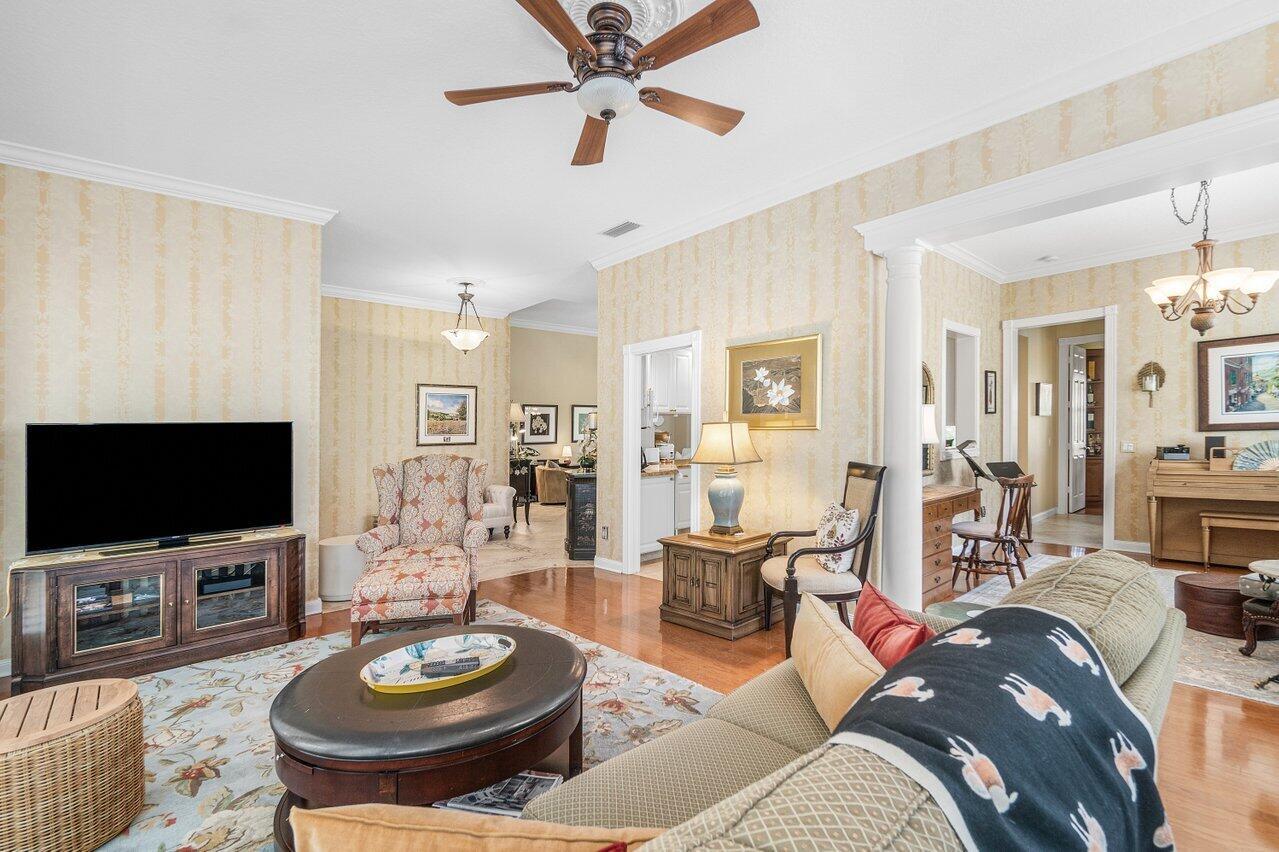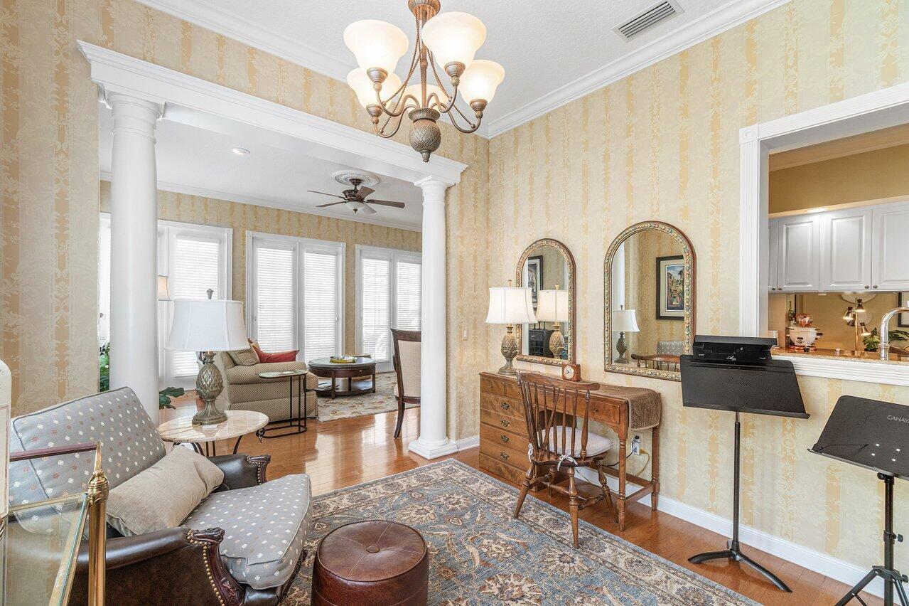 Enjoy peaceful lake views from this immaculately maintained Carlyle model, on a quiet cul-de-sac in the coveted Isles at Palm Beach Gardens. Boasting a brand new roof (Aug 2025), updated baths with marble vanities and nickel finishes and an inviting front porch, this light-filled 4BR/3BA home features formal and informal living areas, soaring ceilings, diagonal porcelain tile, and a screened-in lanai perfect for outdoor relaxation. The 4th bedroom is set up as a home office with custom built-ins. The spacious kitchen with granite counters and abundant cabinetry flows seamlessly into the family room. Large primary suite offers dual baths and generous closets. Pristine 2 car garage and laundry. Enjoy resort-style amenities including pool, tennis, pickleball, clubhouse, and fitness center.