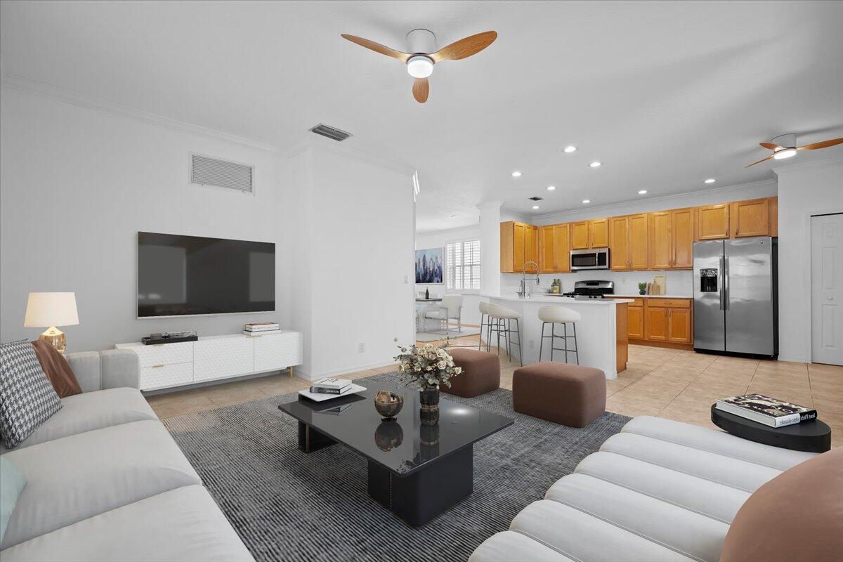 Fantastic, Sun-Filled, Updated 3Bed/2.5Bath Home with an Extended Enclosed Patio. Renovated Open Modern Kitchen has Quartz Counters-Tops & Backsplash, Top Notch Appliances + a Separate Breakfast Area. Spacious Living Room Leads to an Extended Enclosed Patio with Separate AC Unit & Sky-Lite Windows, Perfect for Entertaining. Separate Dining Area. Spacious Owner's Suite has an Updated Bathroom + His/Hers Shelved Closet. Split 2nd & 3rd Bedrooms have a Shared Desk/Office Space. Home Features Include; Accordion Hurricane Shutters, New AC Units, Upstairs Laundry Room, Tile & Plank Wood Floors, Lots of Storage Space, 2 Car Garage. Perfectly Located. Enjoy Evergrene's Resort-Like Amenities. Minutes to the Beach, Tennis Center, Public Golf Courses, Downtown & Airport, Triple ''A'' Rated Schools.