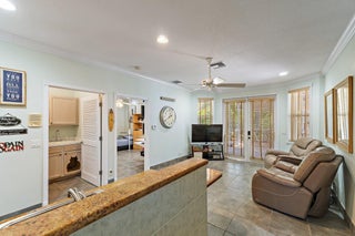 **Seller financing may be possible**Welcome to a truly one-of-a-kind home located in the gated community of Hidden Hollow, known for its low HOA fees, and featuring a full, ADA-accessible IN-LAW / GUEST APARTMENT with its own private entrance--perfect for aging parents, long-term guests, or multi-generational living. This meticulously maintained, single-owner residence lives like two homes in one, offering exceptional flexibility, privacy, and comfort for families who want both space and versatility. ***MUST SEE IN PERSON!!!***The second level feels like a spacious single-family home, with 3 bedrooms, 2 full bathrooms, and an open-concept living area designed for entertaining or everyday family life. The chef-ready kitchen seamlessly flows into the dining and living spaces. READ MORE..Double French doors open to a deck that extends the full width of the home, offering the perfect setting for weekend cookouts, morning coffee, or evening wine. An electric Acorn chair lift provides accessibility to the second level, ensuring everyone, young and old alike, can enjoy gatherings together. On the main level, the ADA-accessible In-Law/Guest apartment offers a private living space with its own kitchen, comfortable living room, separate bedroom, full bathroom, and private entrance. French doors open to the lanai, creating a seamless indoor-outdoor lifestyle. Also on this level is an additional private bedroom with full bathroom and separate entrance, plus an adaptable open living area perfect for a home office, den, playroom, or creative studio. The layout can even be converted into a two-bedroom, two-bathroom In-Law/Guest Apartment, offering ultimate flexibility. Set on a premium oversized lot with tranquil water views, the property offers unparalleled privacy and natural beauty. The fully fenced backyard is finished with decorative pavers and lush landscaping, providing plenty of room for a future pool, outdoor kitchen, or custom-designed oasis. An oversized covered patio on the main level and expansive composite deck upstairs offer multiple outdoor spaces to enjoy year-round. Thoughtful upgrades and high-end details are found throughout the home, including an oversized two-car garage with 8-foot door and decorative driveway with space for three additional cars. Additional features include a central vacuum, surround-sound wiring, laundry chute, crown molding, plantation shutters, custom blinds, floating-style wood staircase, and tray ceilings in the primary bedroom and living room. The home is pre-wired for an elevator, and all windows are protected by accordion hurricane shutters for peace of mind. Hidden Hollow is a private, gated community known for low HOA fees, which cover beautifully maintained common areas, landscaping, the security gate, roads, sidewalks, and annual tree trimming. Centrally located, the neighborhood offers convenient access to shopping, dining, and local amenities while providing the privacy and flexibility of a home designed for multi-generational living.