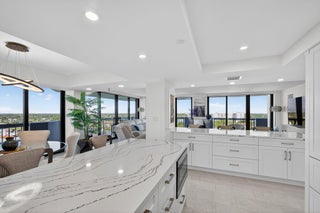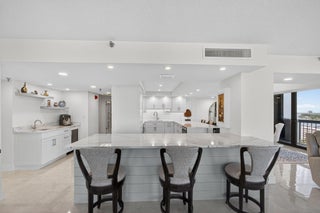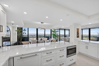 Breathtaking corner residence with 2,500+ sq. ft. and sweeping Intracoastal and Ocean views from every room. This 3BR home has been completely reimagined with elegant porcelain tile, and a showpiece chef's kitchen featuring quartz countertops, custom cabinetry, and Sub-Zero, Wolf & Miele appliances. Designer bathrooms showcase stunning tile and premium fixtures. Enjoy peace of mind with newer AC, hurricane impact glass, new accordion shutters and all new electrical. Located in the prestigious, gated Old Port Cove community in North Palm Beach, residents enjoy a resort lifestyle with a renowned marina, two-mile waterfront walking path, 24-hr security, and on site restaurant, pool, spa and his and her sauna!