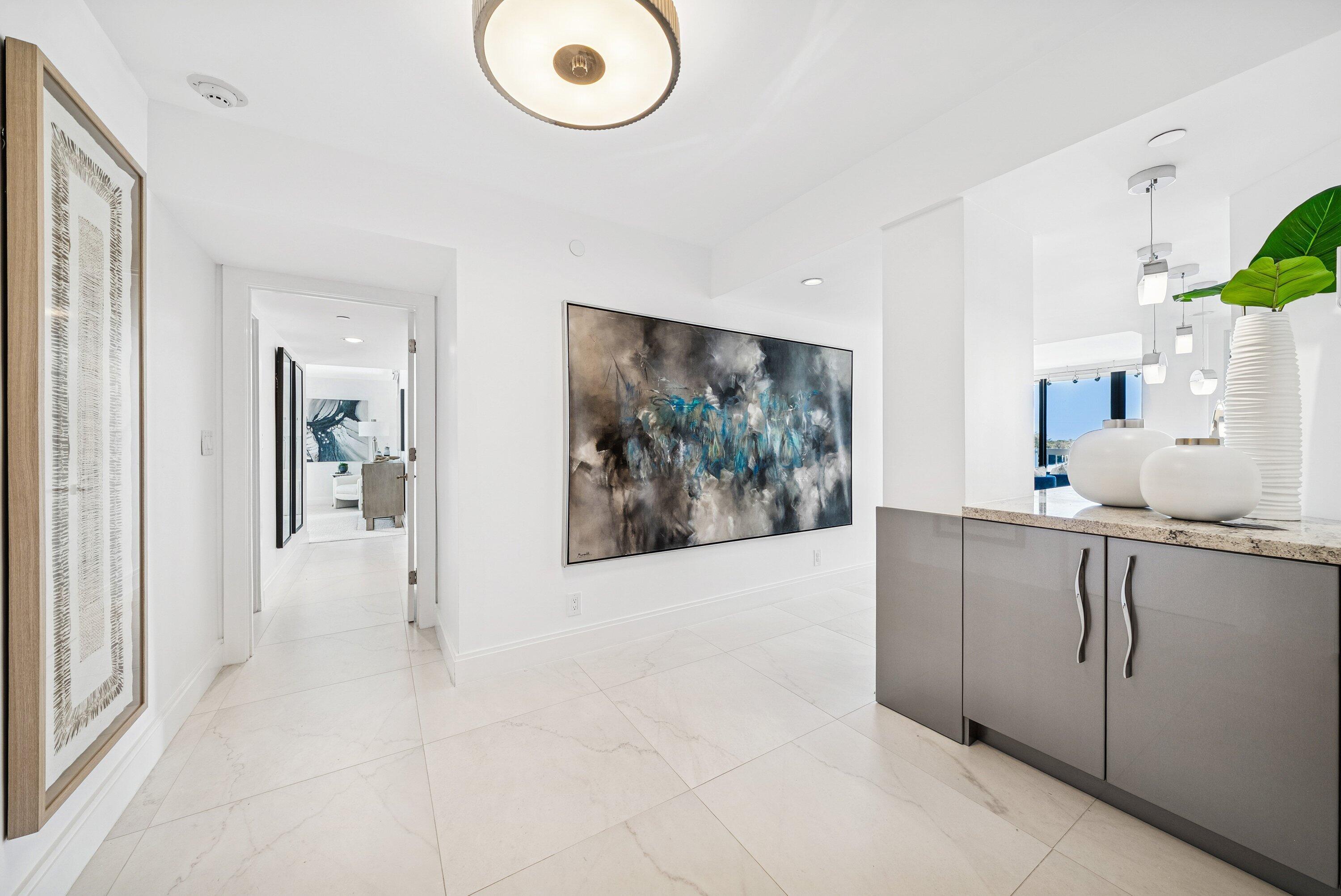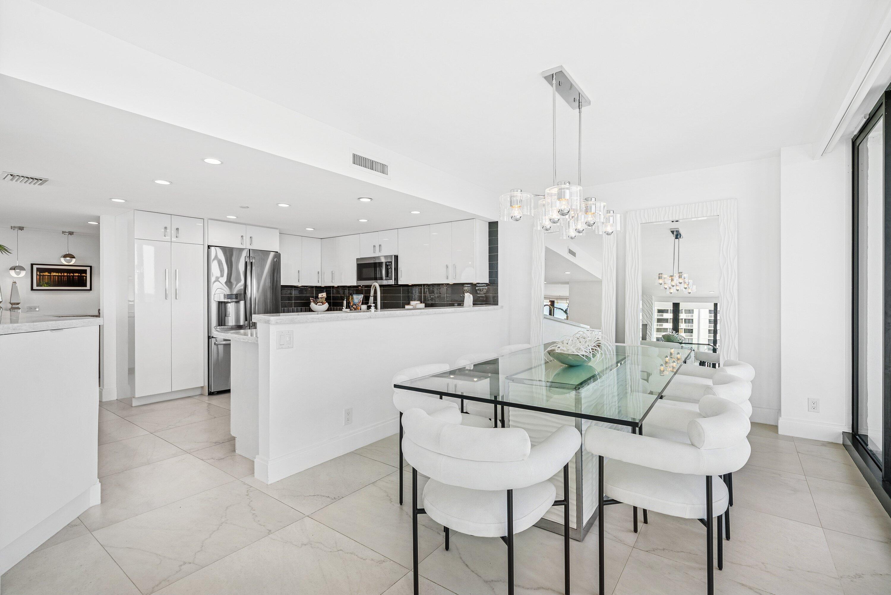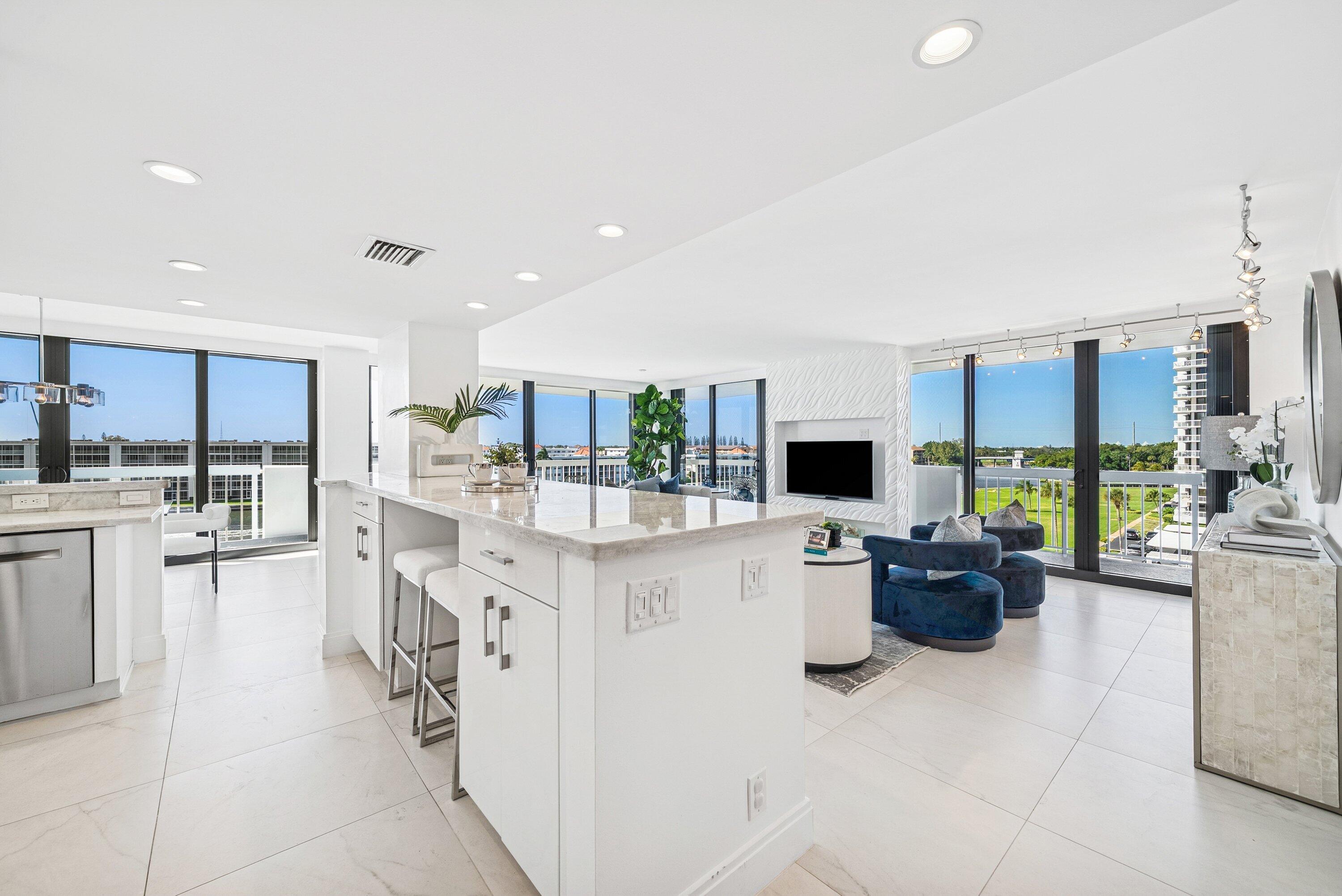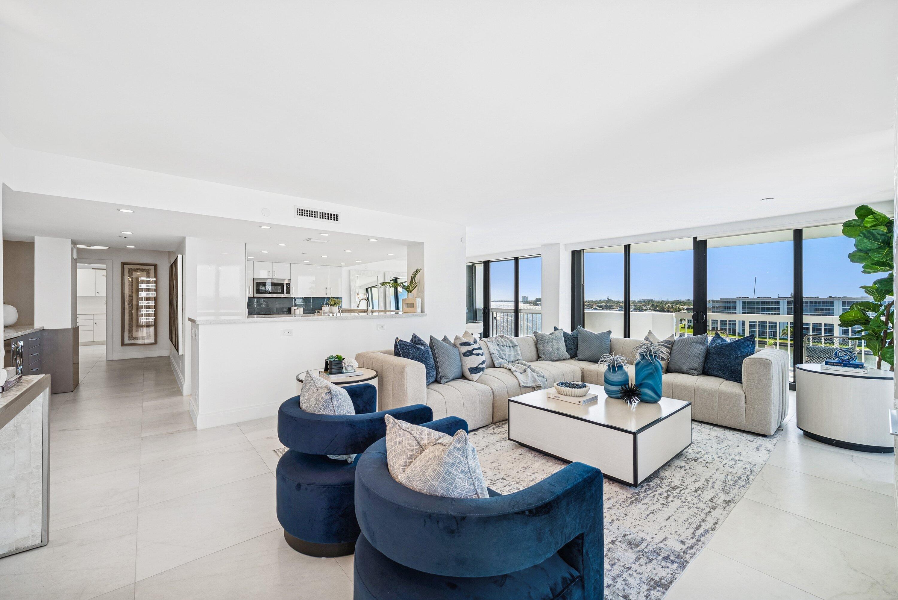 Sweeping intracoastal views and gorgeous sunlight fill this move-in-ready, renovated 3-bedroom, 2.5-bath condo in East Cove Tower at Old Port Cove. With just four residences per floor, this spacious sixth-floor home offers an open modern updated kitchen, large living and dining areas, and floor-to-ceiling impact windows with electric shades.Enjoy marina and water views from every room, with full walls of sliders bringing the scenery in. The primary suite is a standout, featuring stunning water views, two custom walk-in closets, and dual vanities. Tasteful tile flooring runs throughout the living areas.The building has been recently updated with a new roof, balconies, hallways, and lobby. A Structural Integrity Reserve Study was completed in 2024, reserves are funded, and thereare no current special assessments. POA fees include cable, internet, water, and trash. Old Port Cove offers a 24-hour manned gate, marina, Belle's restaurant, a scenic two-mile walking path, and beautifully maintained grounds. East Cove Towers features a pool, hot tub, sauna, and social room. Ideally located near the North Palm Beach Country Club, shopping, dining, and beaches. Private showings available.