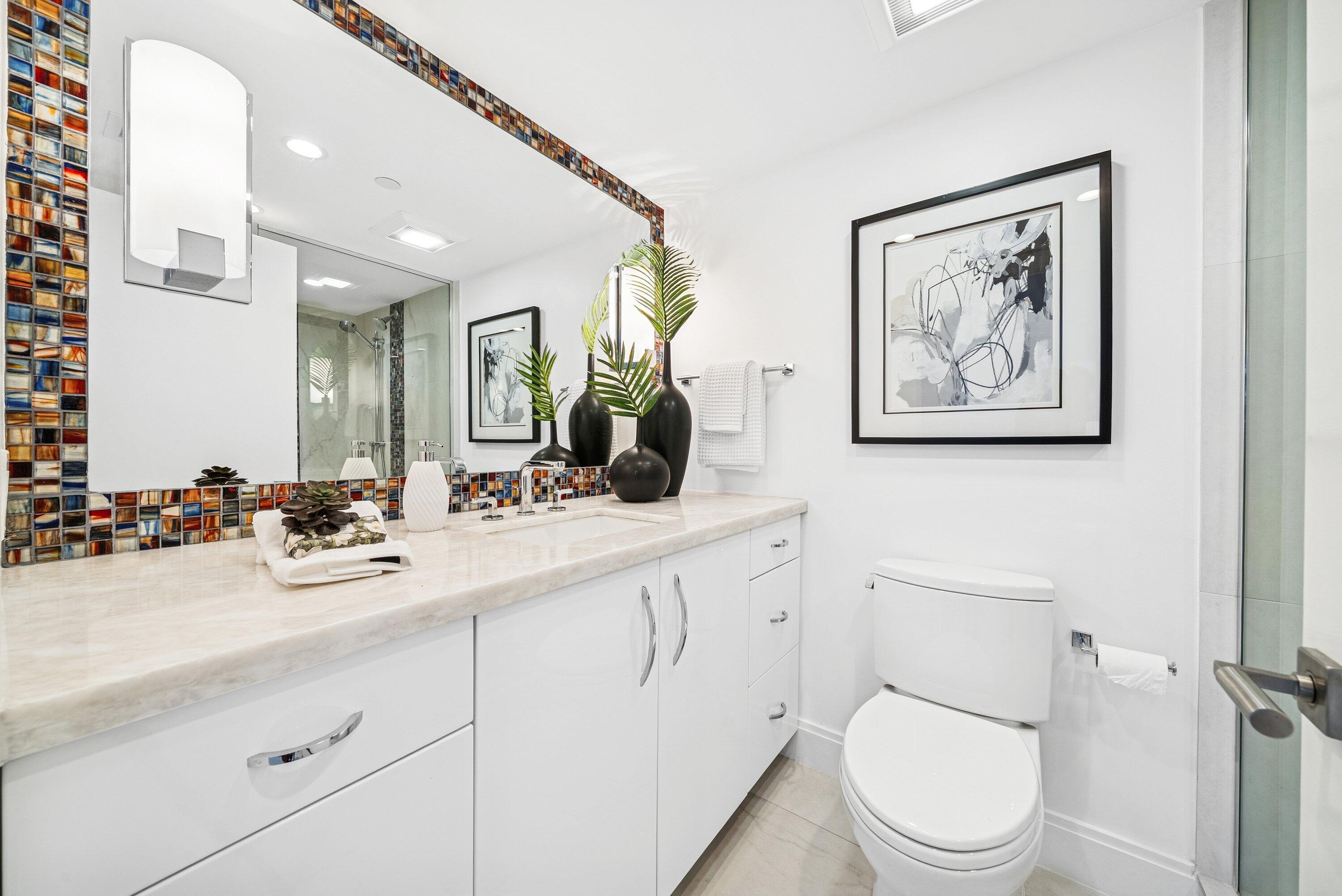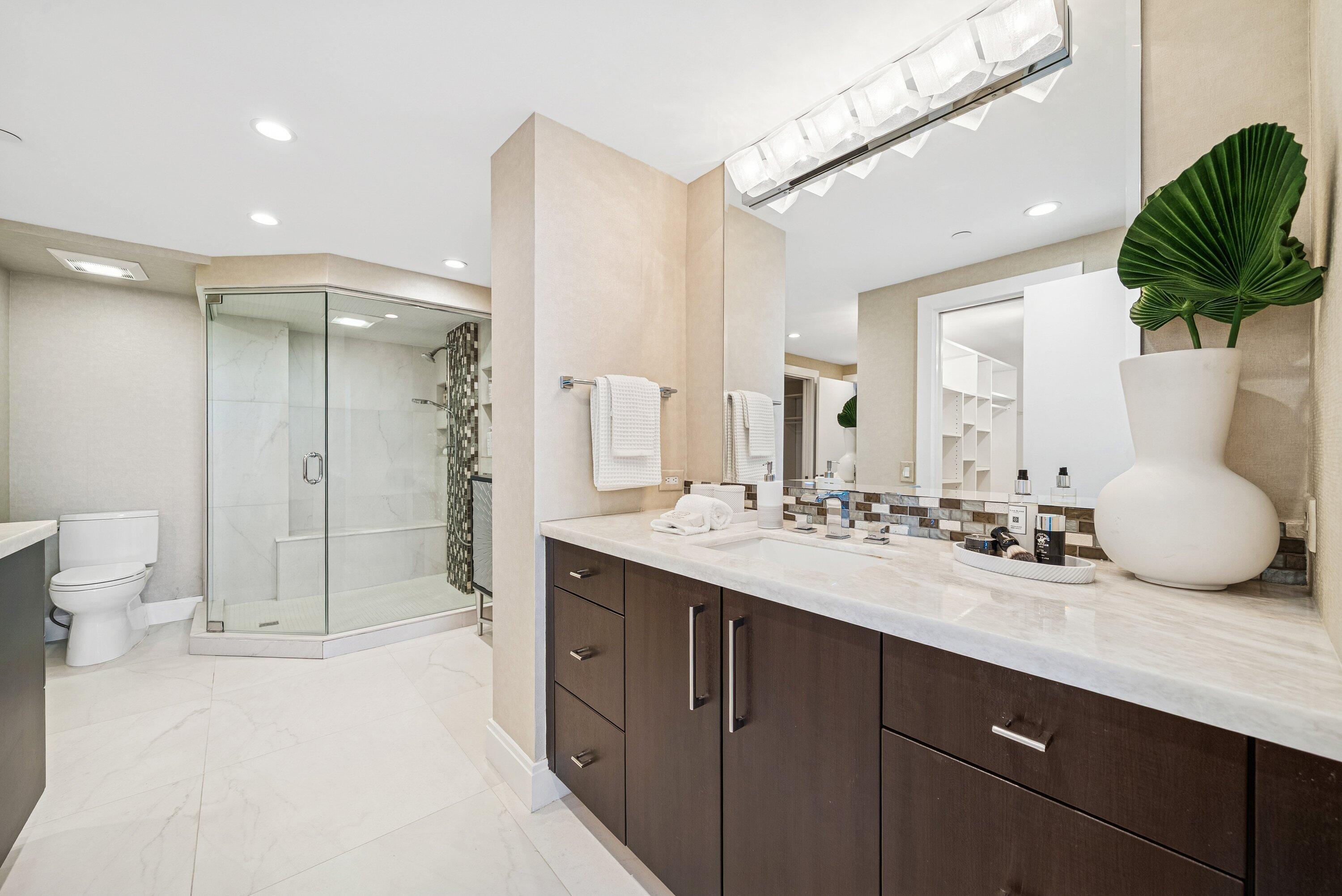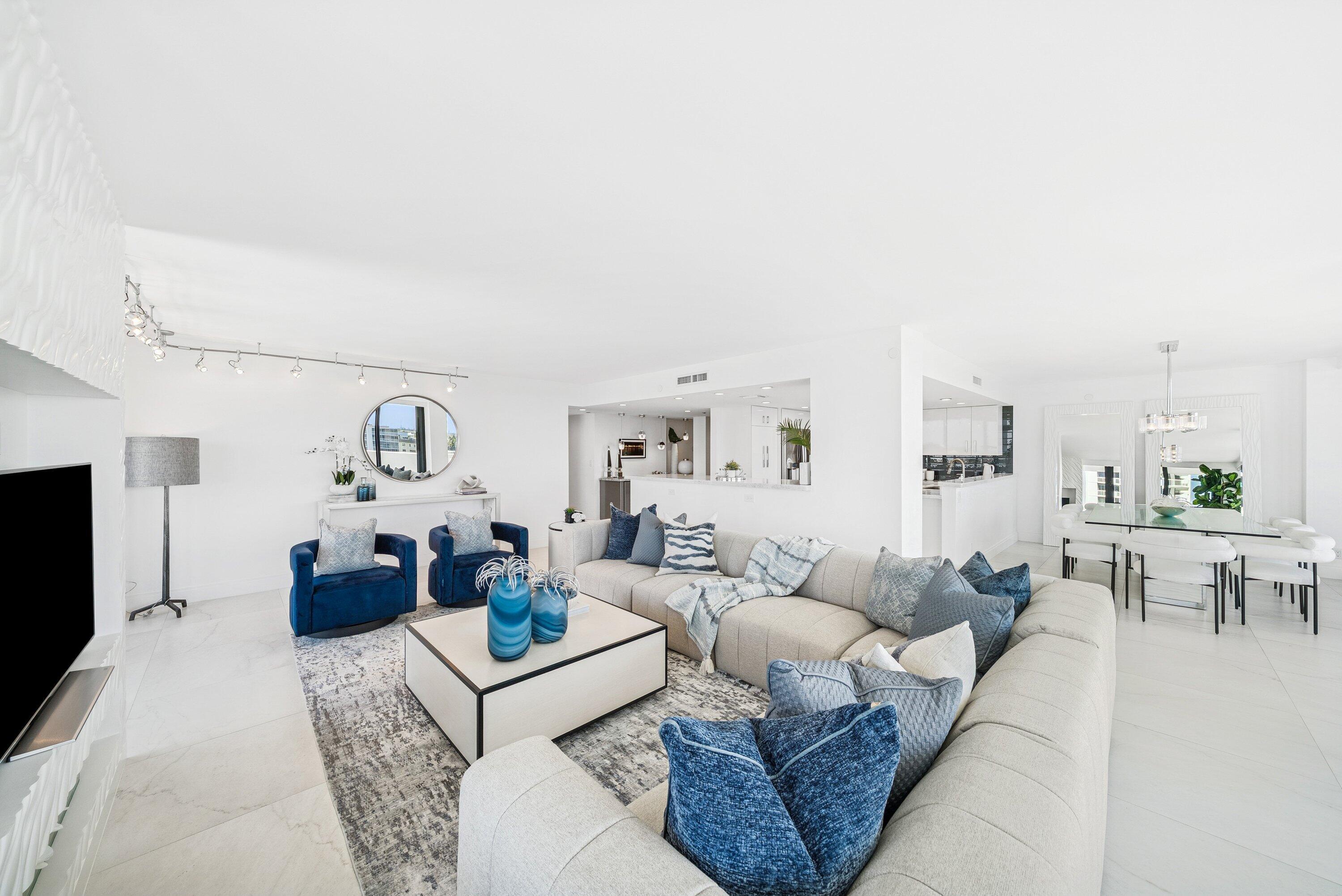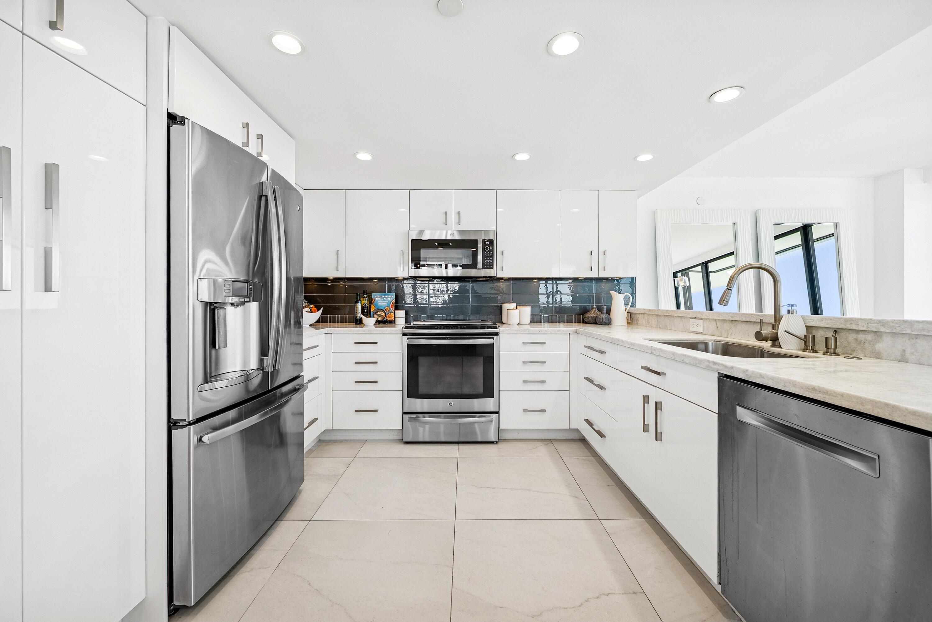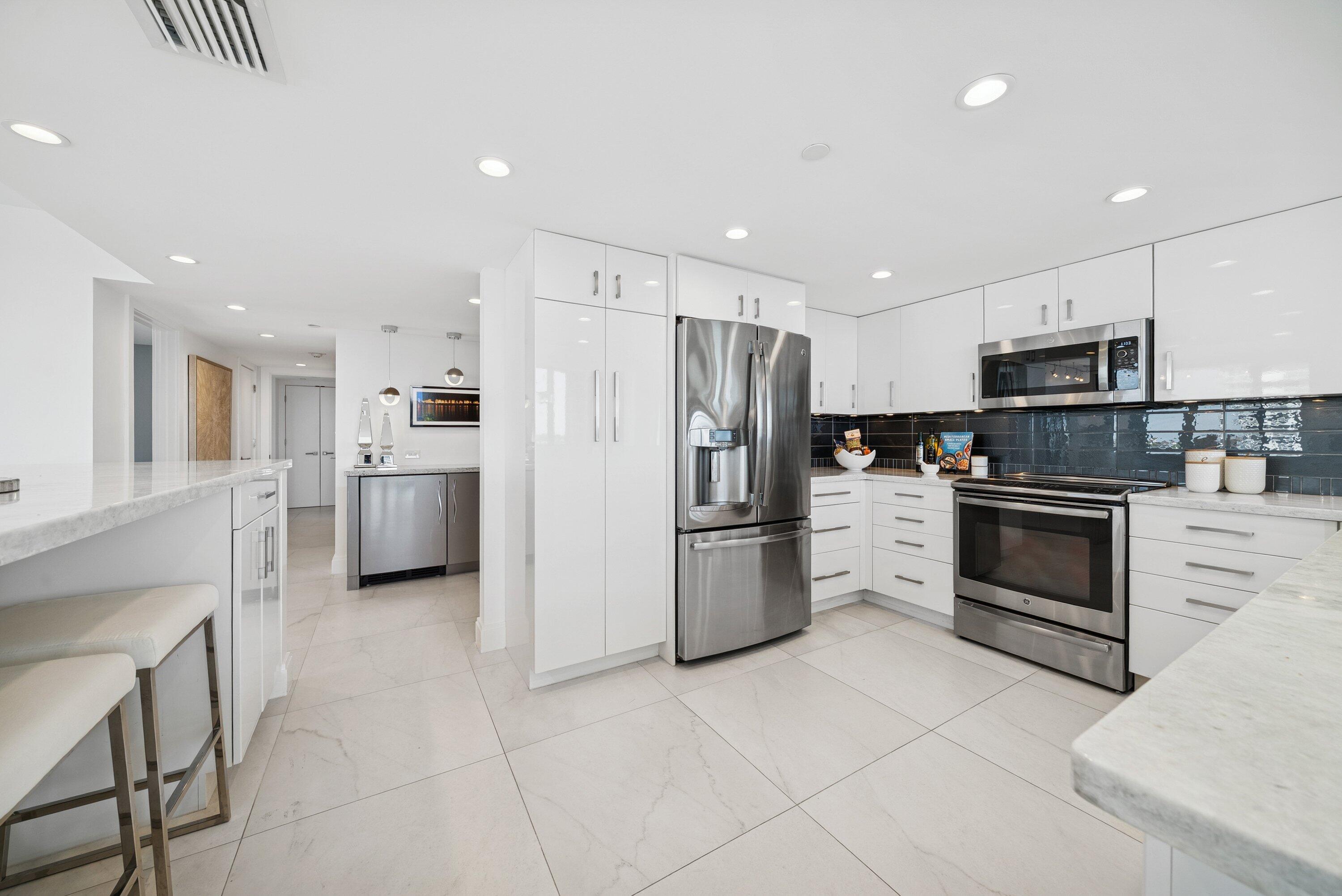 Sweeping intracoastal views and gorgeous sunlight fill this move-in-ready, renovated 3-bedroom, 2.5-bath condo in East Cove Tower at Old Port Cove. With just four residences per floor, this spacious sixth-floor home offers an open modern updated kitchen, large living and dining areas, and floor-to-ceiling impact windows with electric shades.Enjoy marina and water views from every room, with full walls of sliders bringing the scenery in. The primary suite is a standout, featuring stunning water views, two custom walk-in closets, and dual vanities. Tasteful tile flooring runs throughout the living areas.The building has been recently updated with a new roof, balconies, hallways, and lobby. A Structural Integrity Reserve Study was completed in 2024, reserves are funded, and thereare no current special assessments. POA fees include cable, internet, water, and trash. Old Port Cove offers a 24-hour manned gate, marina, Belle's restaurant, a scenic two-mile walking path, and beautifully maintained grounds. East Cove Towers features a pool, hot tub, sauna, and social room. Ideally located near the North Palm Beach Country Club, shopping, dining, and beaches. Private showings available.