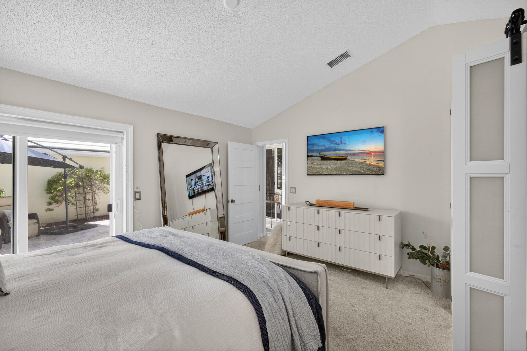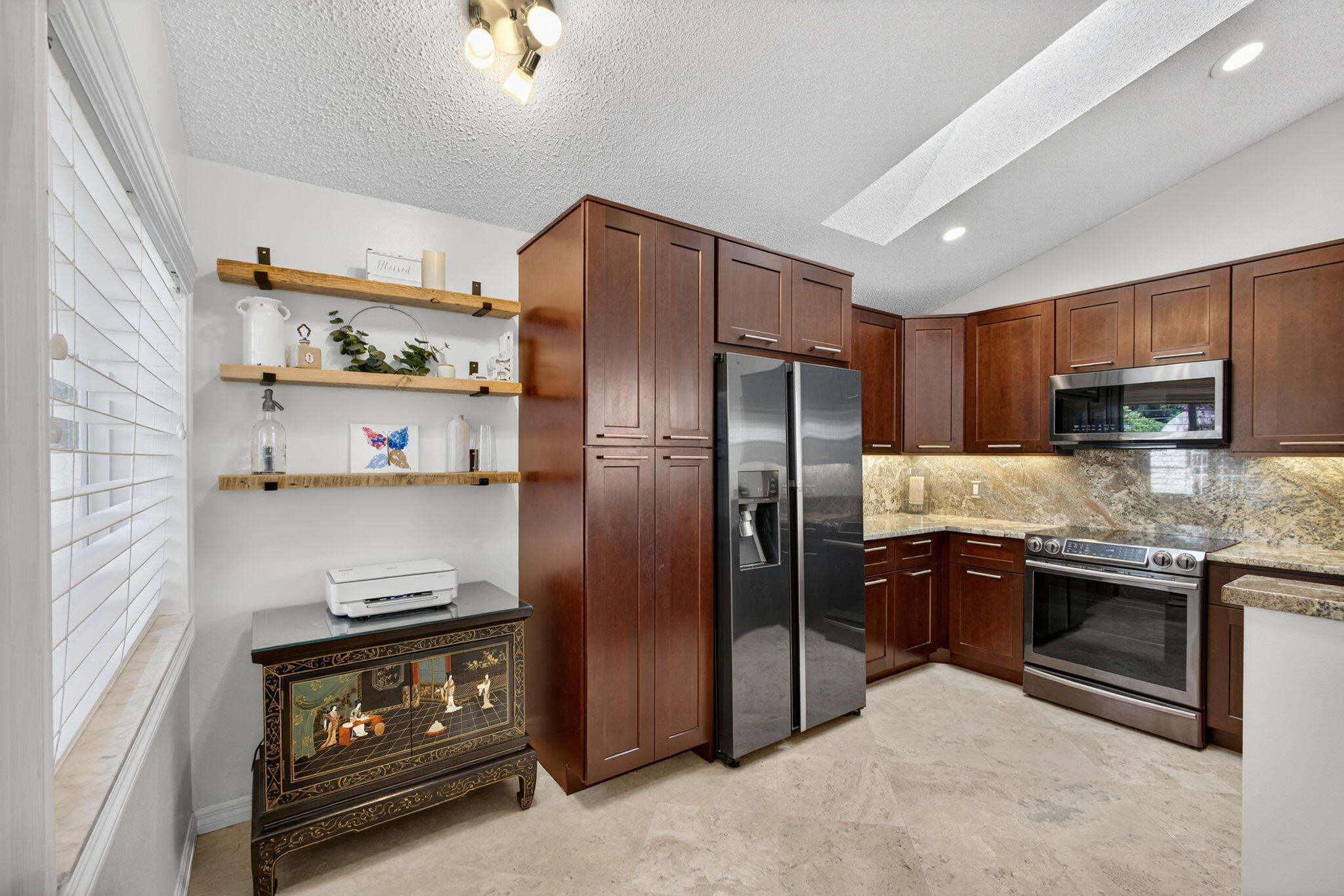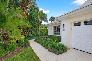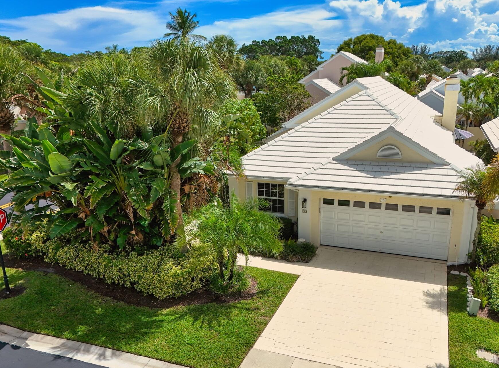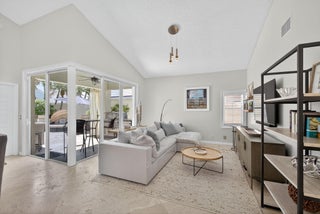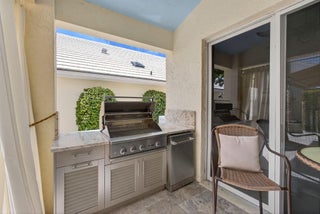Discover this charming 3BR/2BA single-story residence on a desirable corner lot in exclusive Barclay Club. Soaring vaulted ceilings and elegant diagonal travertine flooring create seamless flow from the open living areas through floor-to-ceiling sliders to the expansive rear patio. The fully renovated designer kitchen showcases custom wood cabinetry with LED lighting, striking Netuno Bordeaux granite counters, and premium black stainless Samsung appliances including induction range, counter-depth refrigerator, and digital dishwasher. Exceptional outdoor entertaining awaits with a spacious patio featuring summer kitchen and retractable awning--perfect for year-round Florida living. Recent major improvements include impact windows and doors installed in 2019, a new HVAC system from 2020,and a Bradford-White 80-gallon water heater with circulation pump added in 2021, motorized blinds, new light fixtures in the living, dining and kitchen, interior paint and floating shelves. Located minutes from PGA National's championship golf, resort dining, and community pool access. This rare combination of designer finishes, modern upgrades, and prestigious location offers the ultimate Palm Beach Gardens lifestyle. Perfect for those seeking luxury, comfort, and world-class amenities in one of the area's most sought-after communities.