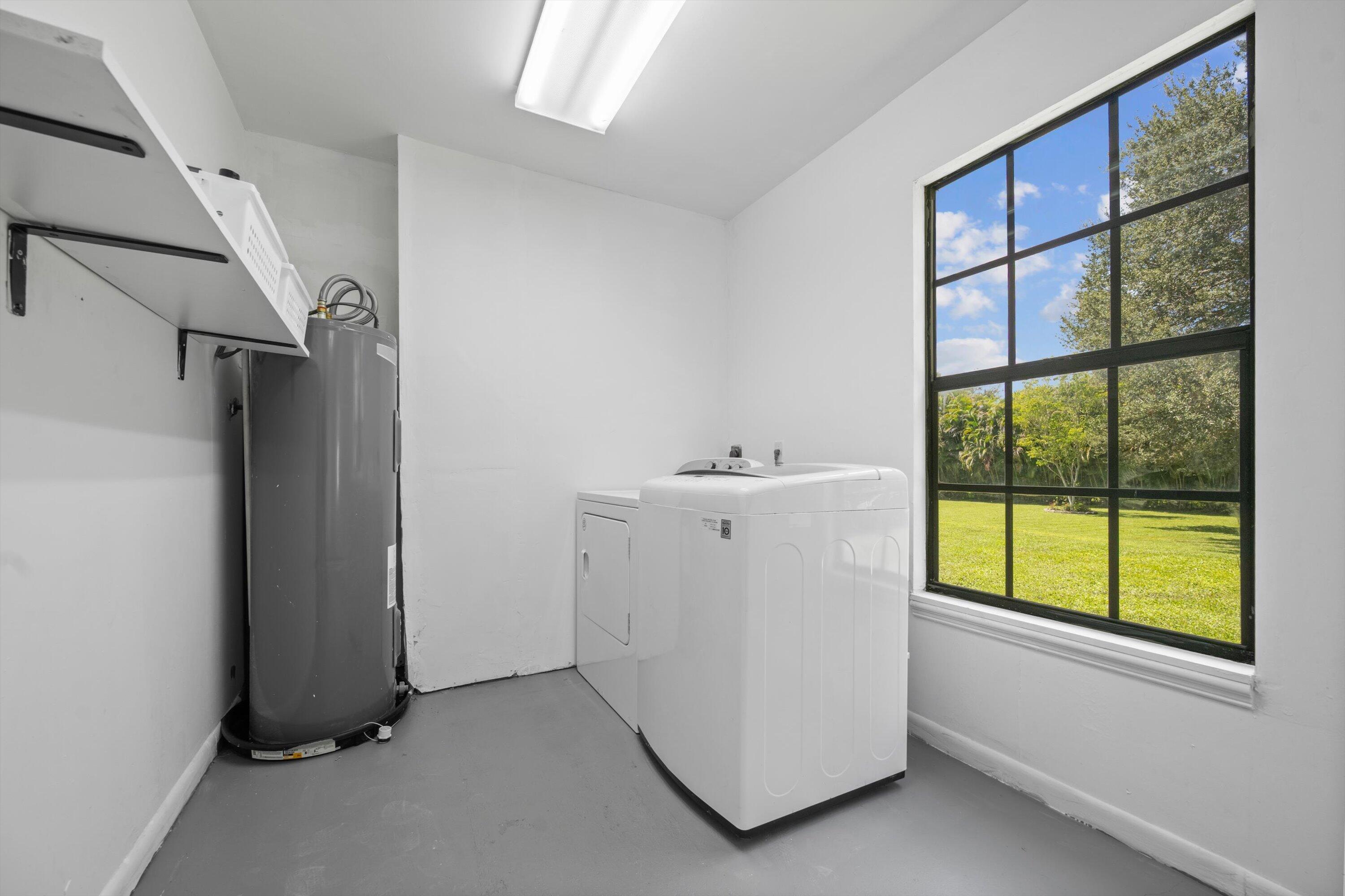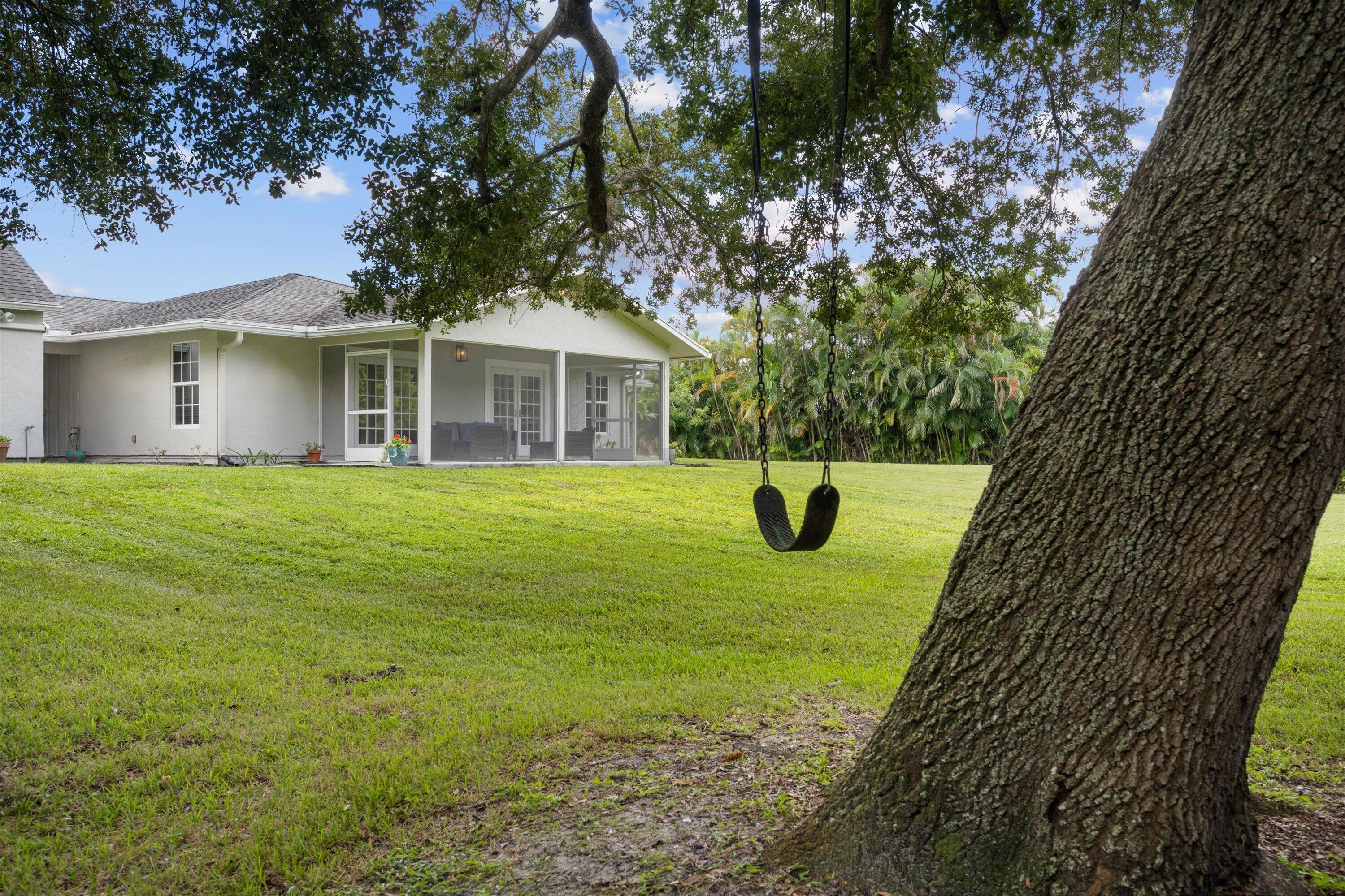 Do not miss this rare opportunity in Palm Beach Country Estates featuring the perfect combination of a spacious single-family home and a detached in-law suite/apartment. The main home offers 3 bedrooms and 3 bathrooms, while the detached guest house includes 1 bedroom, 1 bathroom, a full kitchen, and living area--ideal for extended family, guests, or as an income-producing rental to help cover your mortgage. All of this sits on 1.16 acres with plenty of privacy and no HOA, giving you the freedom to bring your boat, RV, toys, or even farm animals.The main residence is one story and showcases travertine flooring in the living areas, laminate flooring in the bedrooms, high ceilings, and an abundance of natural light throughout. The spacious kitchen features granite countertops, a center island, stainless steel appliances, a breakfast nook, and plenty of cabinet storage, while a formal dining room and large living room provide great spaces for entertaining. The huge primary suite includes a walk-in closet and an updated bathroom with a walk-in shower. A split floor plan offers privacy, with one bedroom featuring its own en suite bathroom and the other located near a newly renovated guest bath completed in 2024. The interior has been freshly painted, and the home comes equipped with impact windows and doors, brand-new hurricane-rated garage doors on the two car garage,and updated systems including a 2023 hot water heater. The detached in-law suite has been fully updated in 2025 with new laminate flooring, fresh paint, a remodeled kitchen and bathroom, and three brand-new mini-split A/C units. The first floor includes the kitchen and full bathroom with a walk in shower, while the upstairs offers a large bedroom, living area, and attic space with tons of storage. The unit also has its own separate electric meter for added independence. Attached to the guest house is a two-car garage, which could easily be converted into a second bedroom if desired. Outside, you'll find a 12x20 shed with hurricane straps, a screened-in patio added in 2020, and a large backyard with room to add a pool. The yard is lined with mature areca palms for privacy, and the home also benefits from city water with a well connection available for irrigation. Additional updates include a new washer/dryer in 2023, a new drain field in 2012, and a termite bond renewed in July 2025. The community offers wonderful amenities, including a park with a playground, covered picnic area, pickleball and basketball courts, racquetball, a fitness trail, and horse trails. Families will appreciate the A-rated schools, while the location provides quick access to shopping, dining, and recreationjust five minutes to Alton Plaza, Downtown Abacoa, and the new Jupiter Hospital opening soon, and only 15 minutes to Jupiter and Juno Beaches. With a fire department coming soon to the community, this home not only offers space and flexibility but also peace of mind.