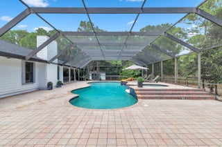 All Sizes Approx. This One Will Check All The Right Boxes! Need A Six Car Garage? Need A Two Bedroom Guest Home? Need A Eight Stall Barn? Need A Resort Style Pool With 3,000 Sq Ft Of Patio? You Can Have It All With This Country Estate! Main Home Offers Three Bedrooms Plus A Den/Office, 20x18 Oversized Primary Bedroom, Primary Bath Has Been Updated With Large Open Shower And Soaking Tub! Kitchen Has Been Updated. Family Room Has Vaulted Beamed Ceiling And A Cozy Fireplace! The Guest Home is Connected To The Main Home By A Covered Breeze Way, Two Large Bedrooms, One Large Bathroom, This Area Would Be A Great Home Office Area! Oversized Six Car Garage With 18 Ft Doors And 20+Ft Open Rafter Ceiling, Workshop Area, Perfect For The Car Enthusiasts or Hobbyist!Eight Stall Center Isle Barn, A/C Feed Room And Tack Room, Oversized Wash Rack, Fly System. Hay Room, Seven Turnout Areas, Dressage/Jumper Arena, Roof On Barn Was Put On In 2022, Plenty Of Room For Horse Trailers, Property Is Completely Fenced And Cross Fenced! 20X50 Custom Designed Screened Pool With Rock Waterfall, Cascading Marble Spillover, Paver Patio Is Over 3000 sq ft With A Beautiful Covered Outdoor Eating Area! Some Of The Many Extras That This Home Offers, All Done In Hardie Board Siding! Cement Paved Driveway, Auto Iron Gate Entry, Roof Was Replaced In 2022, Home Has Accordion Shutters, This One Has It All!! Come See This One Today!!