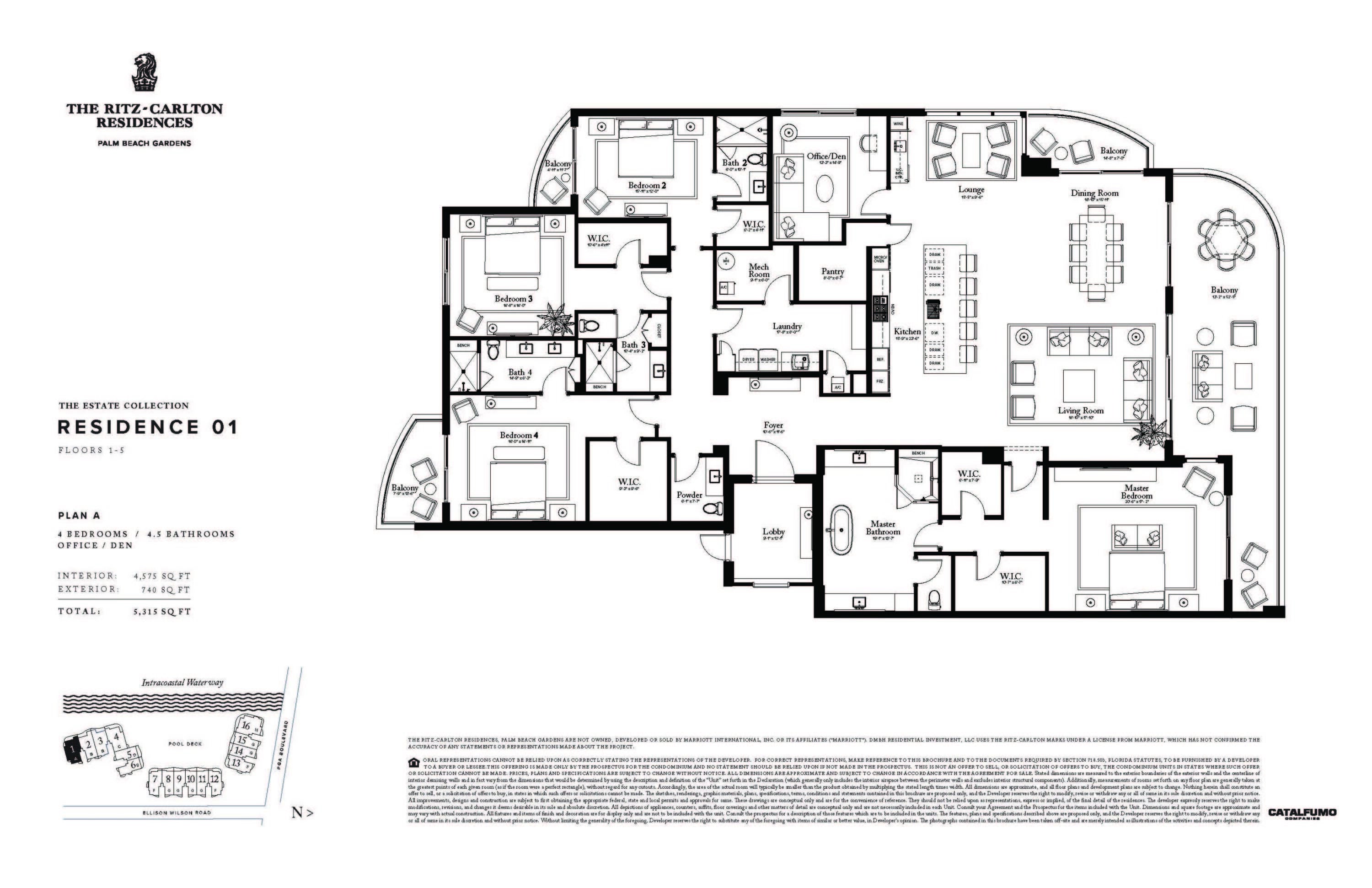 Residence 401A is a rare southwest corner 4BR + Den, 4.5BA home at The Ritz-Carlton Residences, Palm Beach Gardens. Designed with a spacious flow-through layout and a 13' deep balcony, it offers abundant natural light and seamless indoor-outdoor living. Floor-to-ceiling triple-pane glass frames sweeping Intracoastal sunsets, with every detail oriented around the panoramic waterfront views. Features include European oak finish cabinetry, Wolf & Sub-Zero appliances with gas cooktop, and two garage spaces. Just steps from the infinity-edge pool, cabanas, and garden sanctuaries, residents enjoy 20,000+ sqft of amenities and the legendary service of The Ritz-Carlton. Completion Q2 2026.