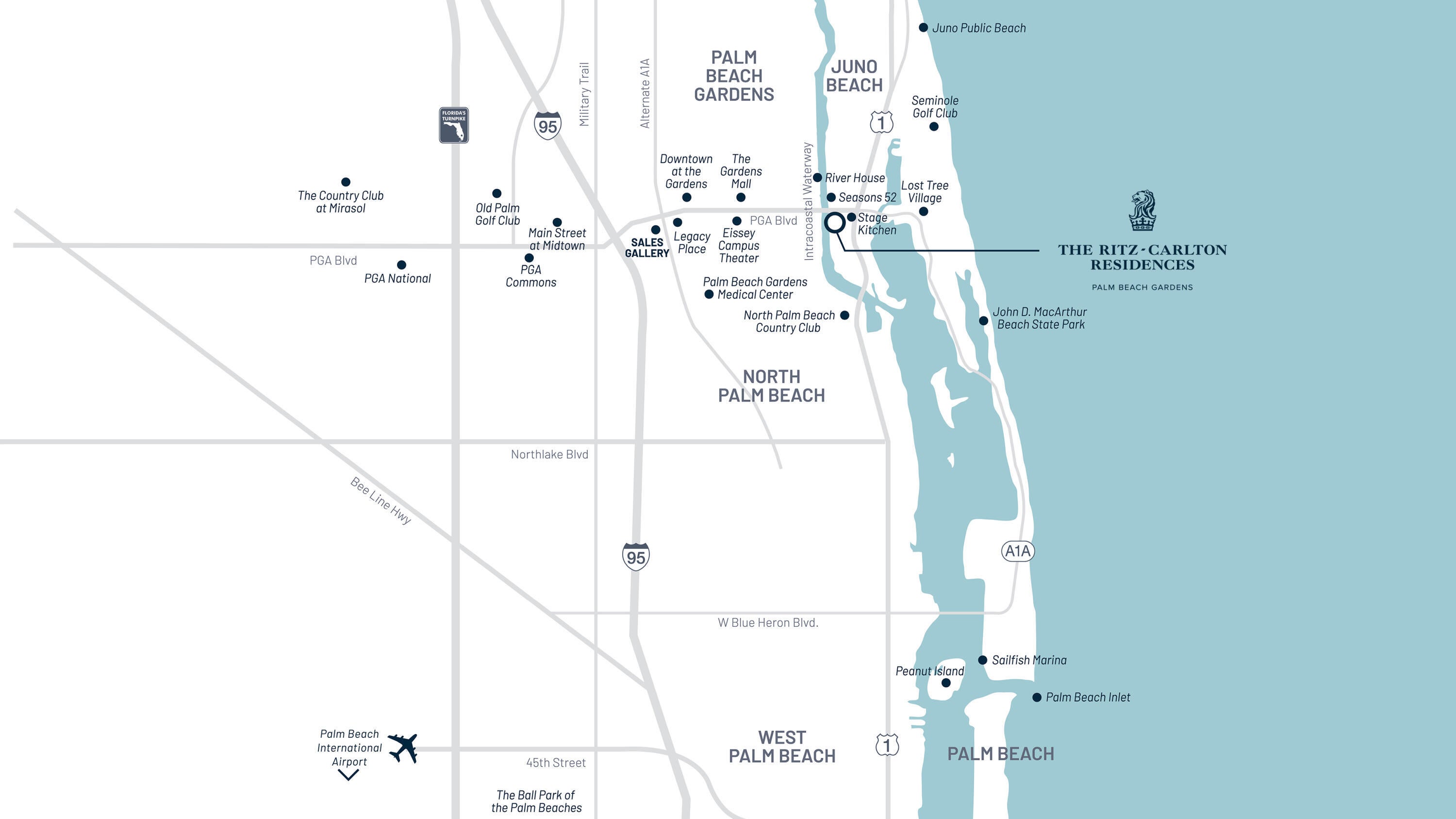 Palm Beach Gardens is located 5 miles north of West Palm Beach, off Interstate 95.