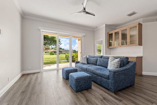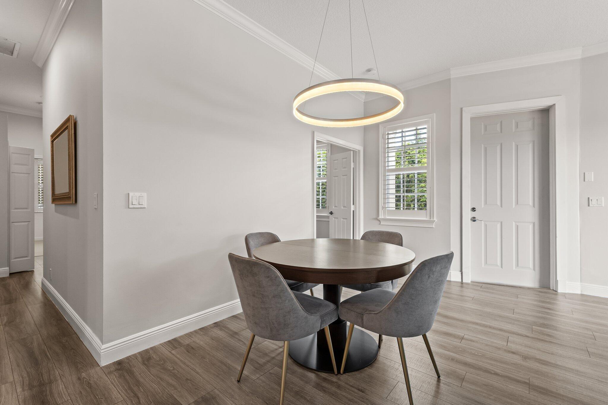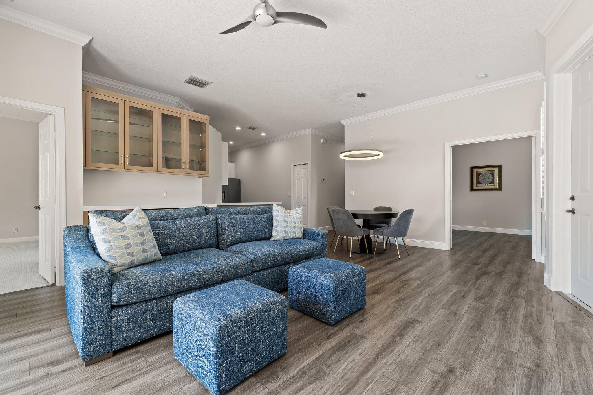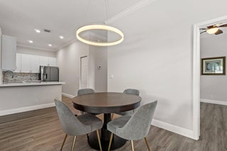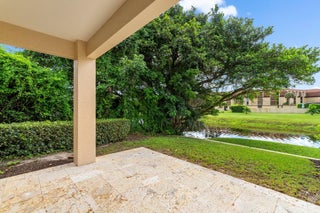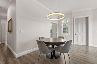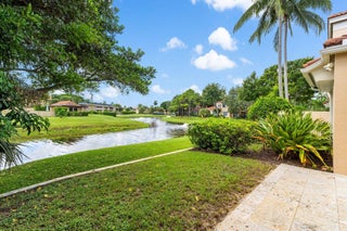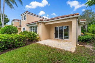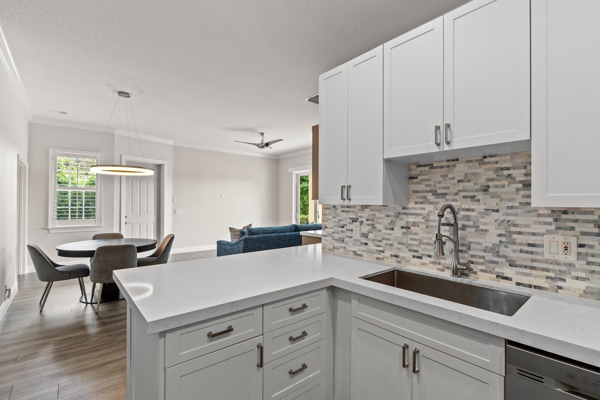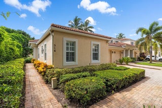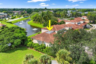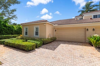Enjoy walkability in this elegantly renovated townhome at PGA Commons--just steps from fine dining and boutique shopping, nestled behind Salute Market and La Masseria. This sophisticated residence features hurricane impact glass, custom kitchen cabinetry with quartz countertops, Samsung appliances, a built-in bar area, electric window shades, and laminate flooring. The two-car garage boasts sleek epoxy flooring and large storage cabinets. Enjoy southern views over a private canal from your back patio with travertine marble decking. Other recent upgrades include a 2018 roof, 2023 A/C, and 2020 water heater. We look forward to showing you this immaculate home.