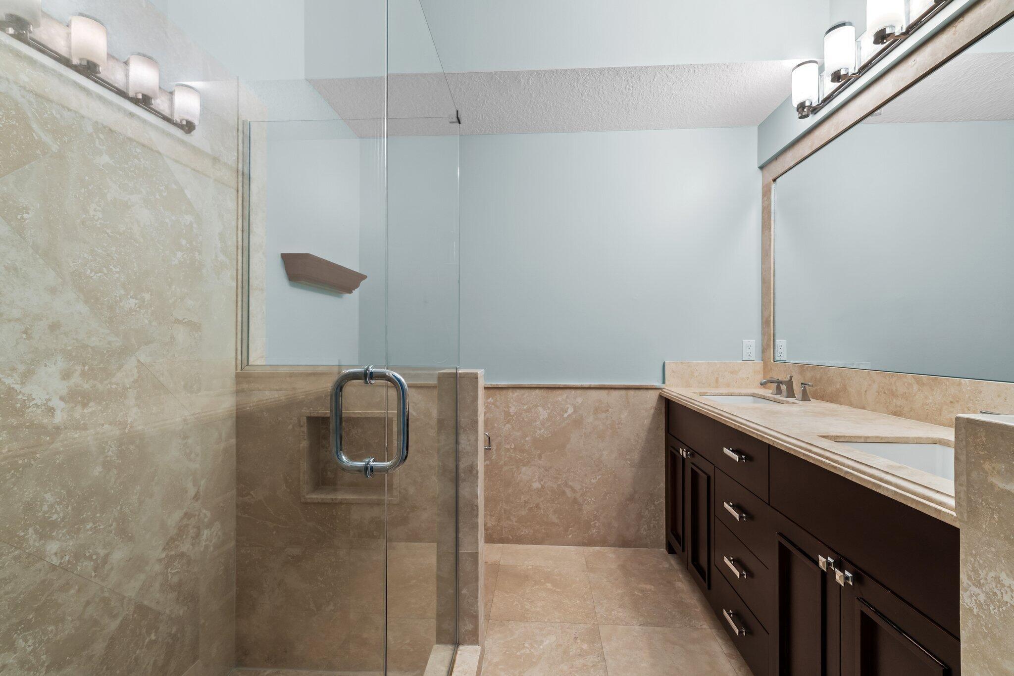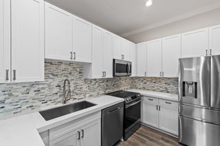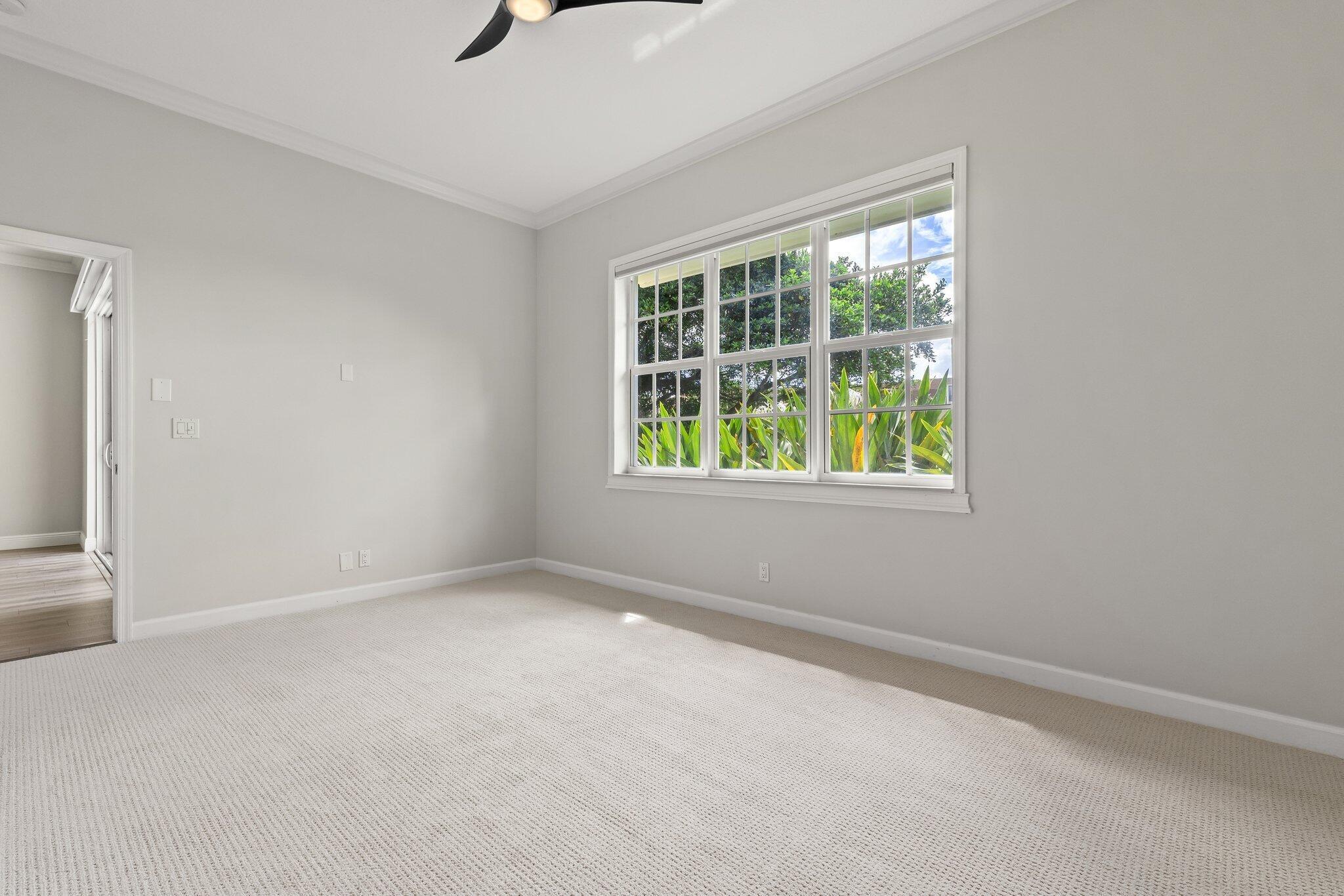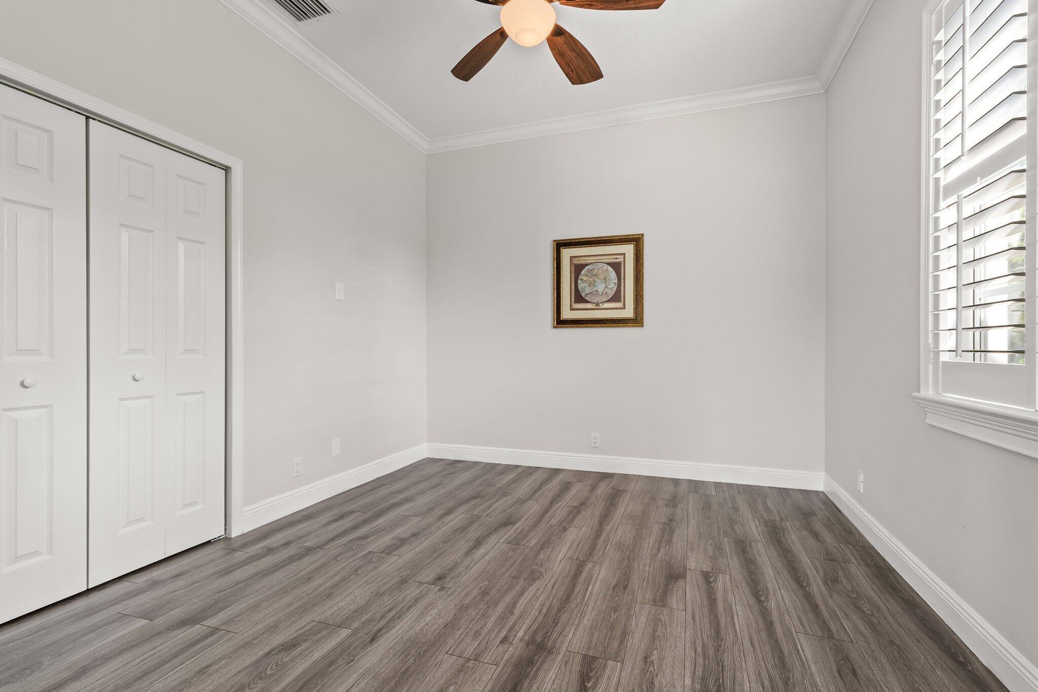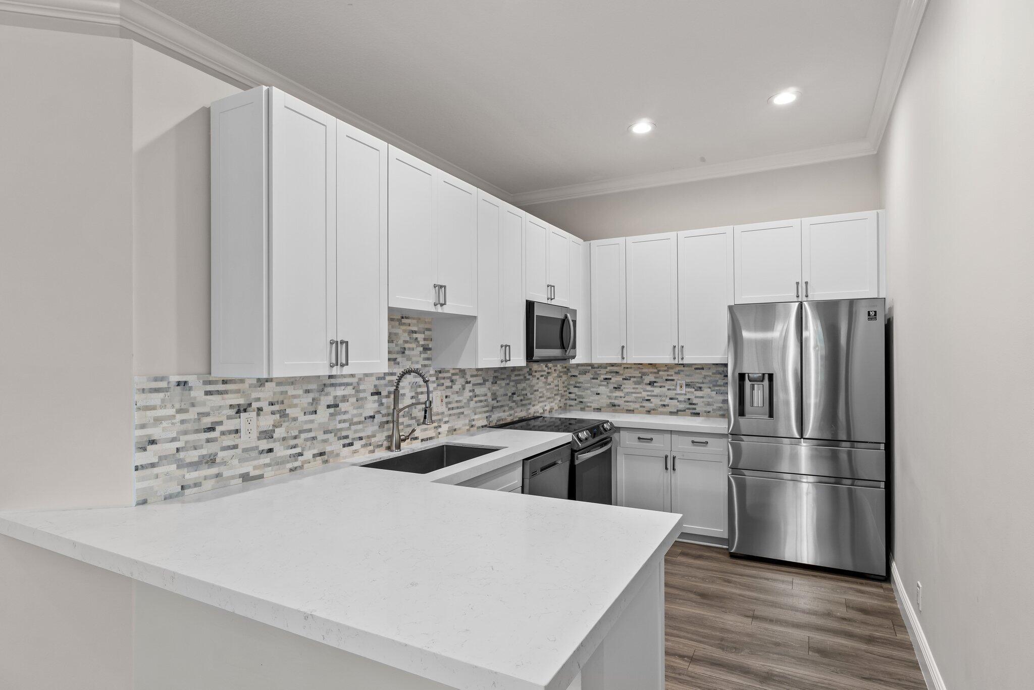 Enjoy walkability in this elegantly renovated townhome at PGA Commons--just steps from fine dining and boutique shopping, nestled behind Salute Market and La Masseria. This sophisticated residence features hurricane impact glass, custom kitchen cabinetry with quartz countertops, Samsung appliances, a built-in bar area, electric window shades, and laminate flooring. The two-car garage boasts sleek epoxy flooring and large storage cabinets. Enjoy southern views over a private canal from your back patio with travertine marble decking. Other recent upgrades include a 2018 roof, 2023 A/C, and 2020 water heater. We look forward to showing you this immaculate home.