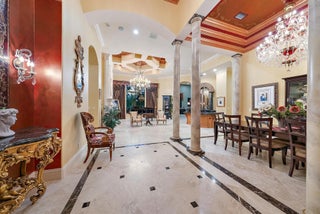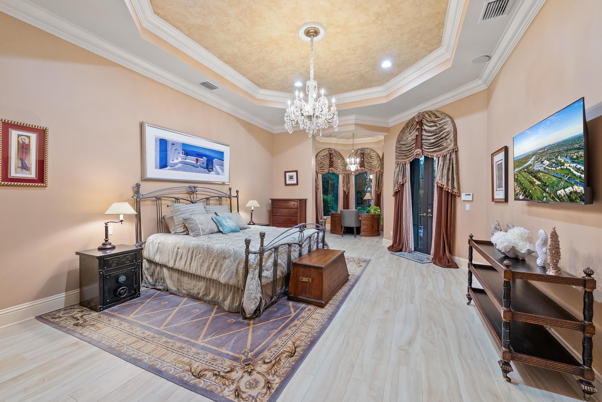 This extraordinary single-story estate in prestigious Bay Hill Estates offers the ultimate blend of timeless craftsmanship and modern convenience. Spanning over 5,400 square feet on a private one-acre lakefront lot, this residence is a showcase of artisan finishes, state-of-the-art upgrades, and resort-style amenities. From the moment you step into the grand foyer, graced with inlaid marble floors and soaring coffered ceilings, it is clear that every detail of this home has been designed with sophistication in mind. The living spaces are adorned with custom millwork, hand-selected marbles, solid wood cabinetry, and designer chandeliers, while a coral stone fireplace anchors the formal living room with warmth and elegance.The chef's kitchen is a culinary masterpiece, featuring Sub-Zero and Thermador appliances, an oversized prep island, and exquisite European cabinetry with imported marble. A custom wood-paneled office provides a serene retreat, while the private home theater, outfitted with Crestron automation, plush recliners, and sound-insulated walls, creates a true cinematic experience. In recent years, the property has undergone significant enhancements to meet the expectations of today's most discerning buyers. A whole-house generator was installed in 2023, ensuring comfort and security in any season. Outdoor living is elevated with a Swat mosquito system (2022), an invisible dog fence (2022), and dual Tesla charging outlets (2025). Comfort and efficiency are further enhanced with insulation blown into the attic (2022), a new septic pump (2023), a new in-home vacuum motor (October 2022), and a smart thermostat and doorbell integrated with a wireless ADT security system (2022). Additional mechanical updates include a new air conditioner compressor (June 2024), a new cooktop (2022), a new microwave (2024), a new pool pump (August 2025), and WiFi-enabled irrigation and pool equipment controllers (2022). The interiors also shine with thoughtful upgrades. All three bedrooms received new tile flooring in late 2022, and a guest bathroom was beautifully renovated in February 2023. Travertine tile throughout the home was cleaned and sealed in 2025, while the entire house was professionally power washed in September 2025, presenting the home in pristine condition. Additional conveniences such as garage shelving (July 2022), new pool lighting (August 2025), and an upgraded Crestron movie system with integrated indoor and outdoor speakers add comfort and luxury to everyday living. The outdoor spaces are nothing short of spectacular. A dramatic resort-style pool with spa and two cascading waterfalls faces the private lake, creating a stunning focal point for entertaining and relaxation. The expansive patio, cabana bath, summer kitchen with built-in grill, and newly enhanced pool lighting set the stage for unforgettable gatherings under the stars. Bay Hill Estates is a gated enclave of just 240 homes, each on one-acre lots surrounded by canals, lakes, and a PGA National golf course. The community provides 24-hour manned security, walking paths, cable and internet, and optional membership to PGA National's golf and tennis facilities. Shopping, dining, cultural venues, and Palm Beach County's pristine beaches are only minutes away, ensuring an unmatched lifestyle in a tranquil yet connected setting. This residence is more than a homeit is a legacy property that combines uncompromising luxury with over two dozen carefully curated recent improvements, making it truly move-in ready and future-proof.