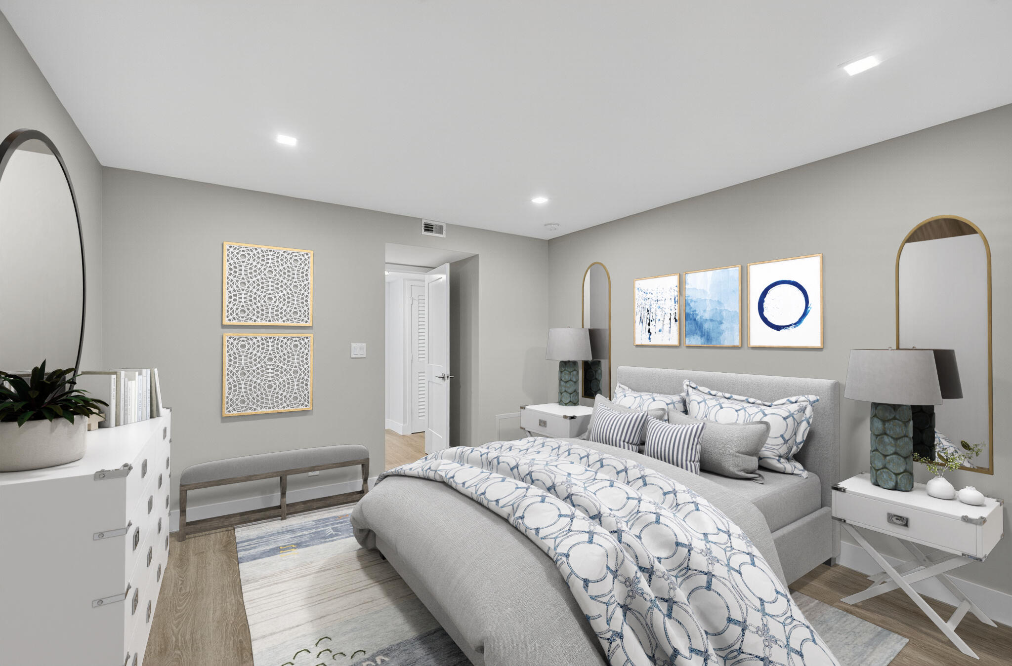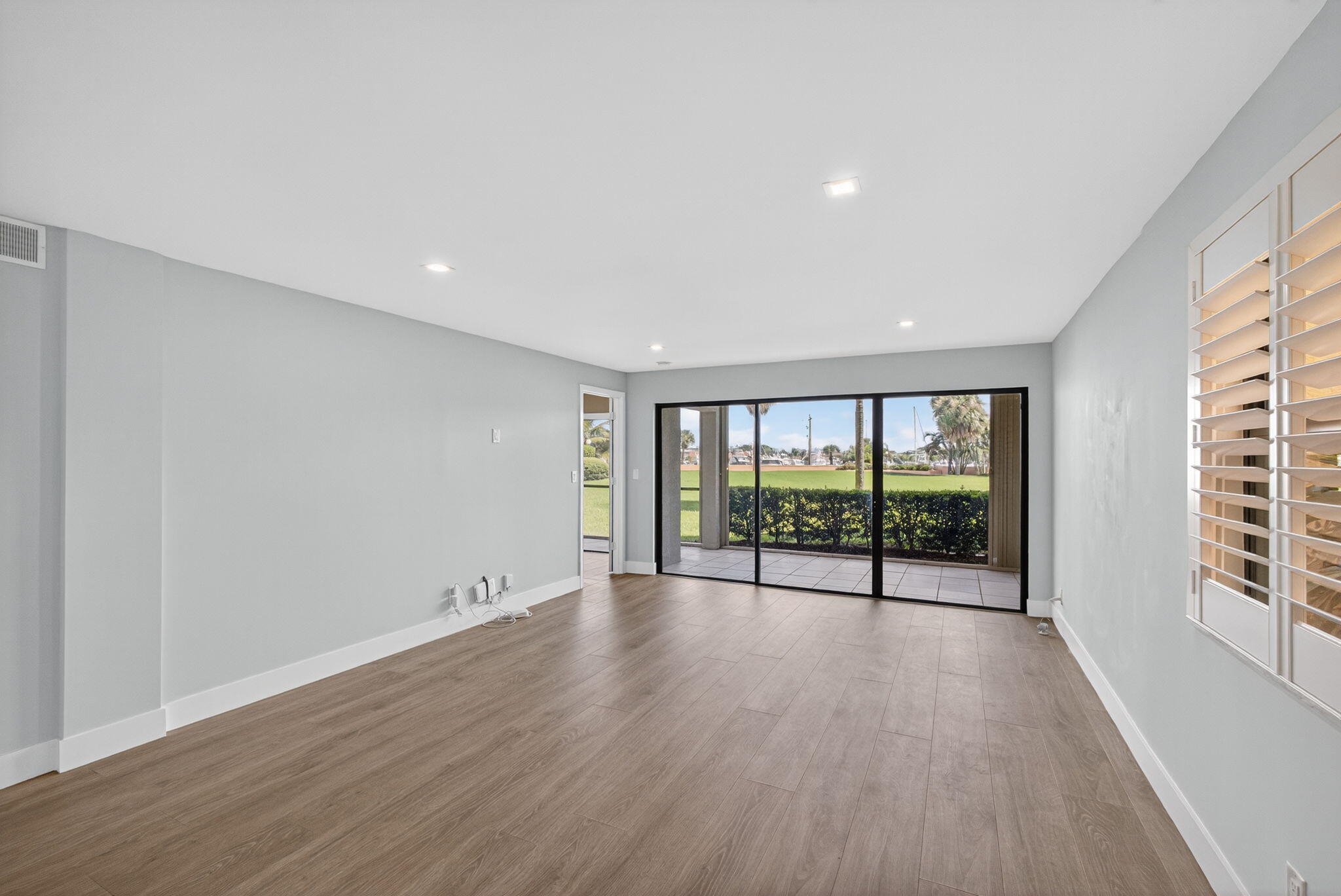 EXTREMELY MOTIVATED SELLER. 1st floor corner condo with wide expanse of lawn overlooking the intracoastal. Brand new kitchen with white quartz kitchen island with built in pull out drawers. Custom built closets in both bedrooms. Master suite has electric black out shade. Plantation shutters in LR, Kitchen, & guest bedroom. Upgraded new LG appliances: Slide in stove with built-in air fryer, Dishwasher & large stack washer & dryer. Hurricane impact windows in living room. Storage closet on large patio plus an additional air-conditioned storage locker. A must see.....you won't be disappointed! There is nothing you need to do to this condo except to move right in!! Close to Belle's Food Truck!