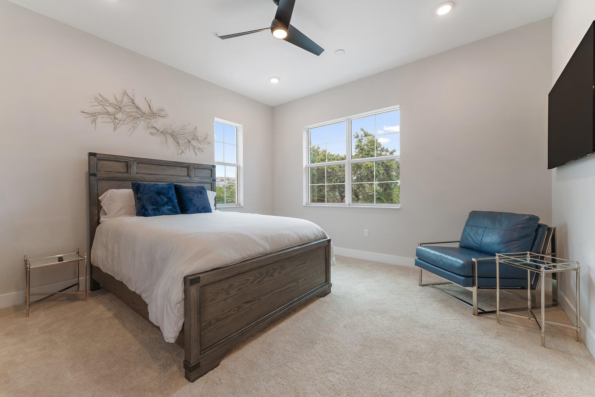 BOAT SLIP INCLUDED - Luxury 3BR/4.1BA end-unit townhouse with 3,673 SF of living space plus rooftop terrace with Intracoastal views. Built in 2019, this spacious home offers a bonus room with bar, gourmet kitchen, private elevator, 2-car garage, and Savant smart home system. Expansive primary suite features walk-in closet and dual baths; all guest rooms are en suite. Located directly on the Intracoastal in a no-wake zone, enjoy the lowest PSF with dockage in Palm Beach Gardens. Minutes to beaches, shopping, dining, and both Jupiter & Palm Beach Inlets.