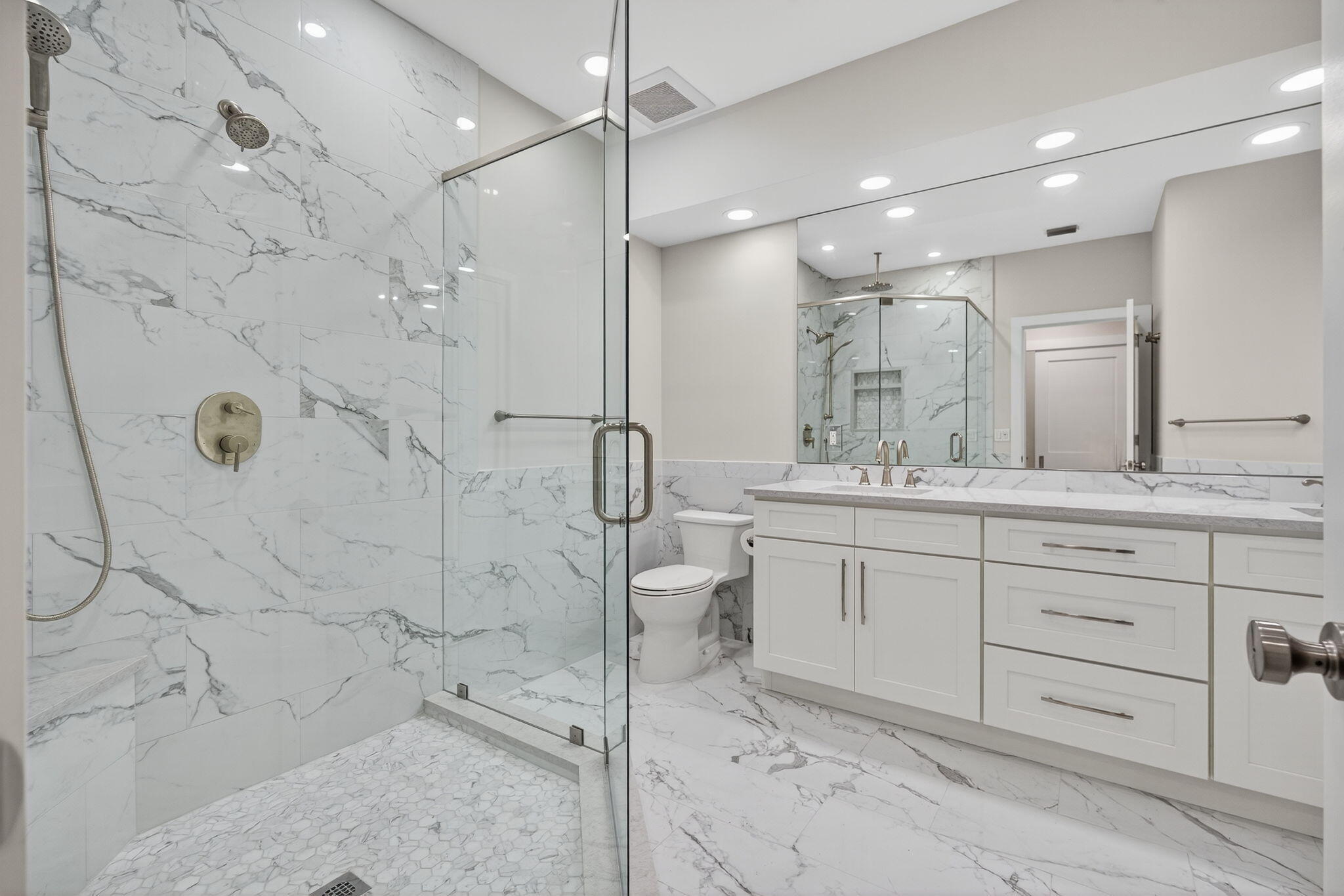 Completed stunning total renovation finished this week, on this executive upscale first floor oversized condominium. Arguably the best views in PGA National. With Impact Glass and Garage. Brand new Kitchen, showers, baths, floors, lights, patio pavers, window treatments, newer ac and water heater. Open and bright. Over the top landscape in front, creating a private oasis.Upgraded plumbing, and hidden touches. Bonus recessed lighting. The best views with sunsets.