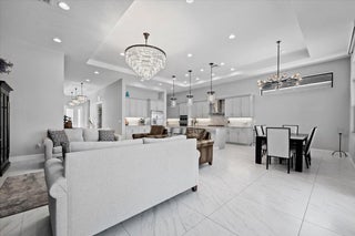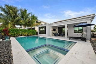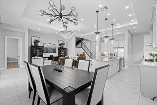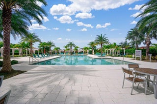 Highly upgraded Mondrian model with an oversized pool, impressive lake views and a custom outdoor kitchen and covered entertainment area with drop down screens. The master bedroom and den are conveniently located on the first level of this home with two guest suites and a huge loft upstairs. The oversized 3 car garages include the extra square footage option that allows room for 3 vehicles plus plenty of storage. Real wood flooring adds visual warmth to the master suite where you wake up overlooking the pool and lake. Located in the center of the community as well as the center of the lake, this backyard features the best views Artistry has to offer. Finishing touches include plantation shutters, light fixtures, high end built in master closet and a heated pool and spa.