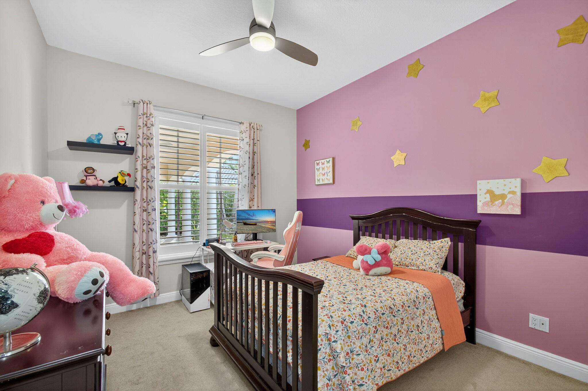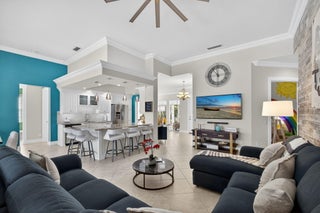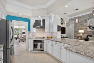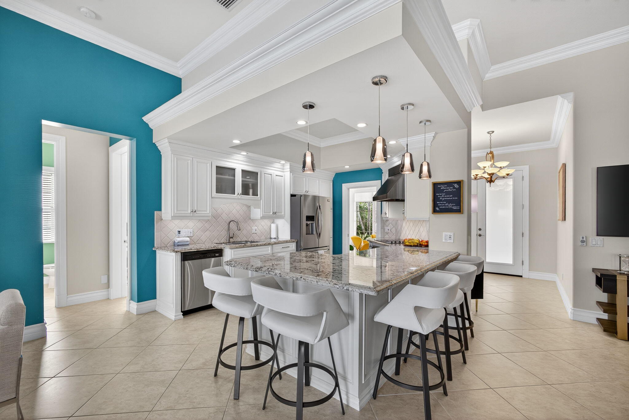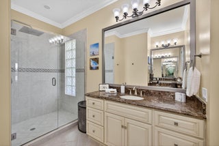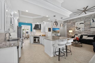 Enjoy the spectacular long lake and pool view located on a premium professionally landscaped lot in Palm Beach Gardens in the the Carlton Oaks community. The open SS & Granite Kitchen, Breakfast area and Family Room provide access to a newer 2021 30'+ pool with built-in sun shelve, surrounded by a picture window screen room and white marble decking/lanai. The interior of the home also features a living/dining, 4 bedrooms 3 baths plus a den with a built in murphy bed, and laundry room. Upgraded 7'' floor and crown moldings; 2024 new air conditioner; newly painted exterior and impact windows and doors; central vacuum, plantation shutters and 9' & 12'' ceilings. Schedule a showing appointment to see this exceptional property.