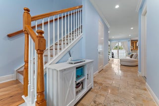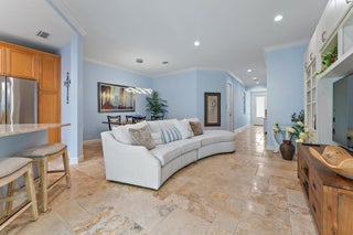 Move right in to this light, bright and updated townhome which has been meticulously maintained. Nestled in a boutique community on a private way, and not in a designated flood zone. Includes custom built entertainment center, crown molding throughout, fully finished walk in closets, hurricane impact windows. Enjoy carpet-free flooring throughout with Tile flooring on first level, and beautiful gleaming hardwood flooring on staircase and second floor. Private tiled patio for entertaining and grilling in backyard. 2025 central air system. Furnishing negotiable
