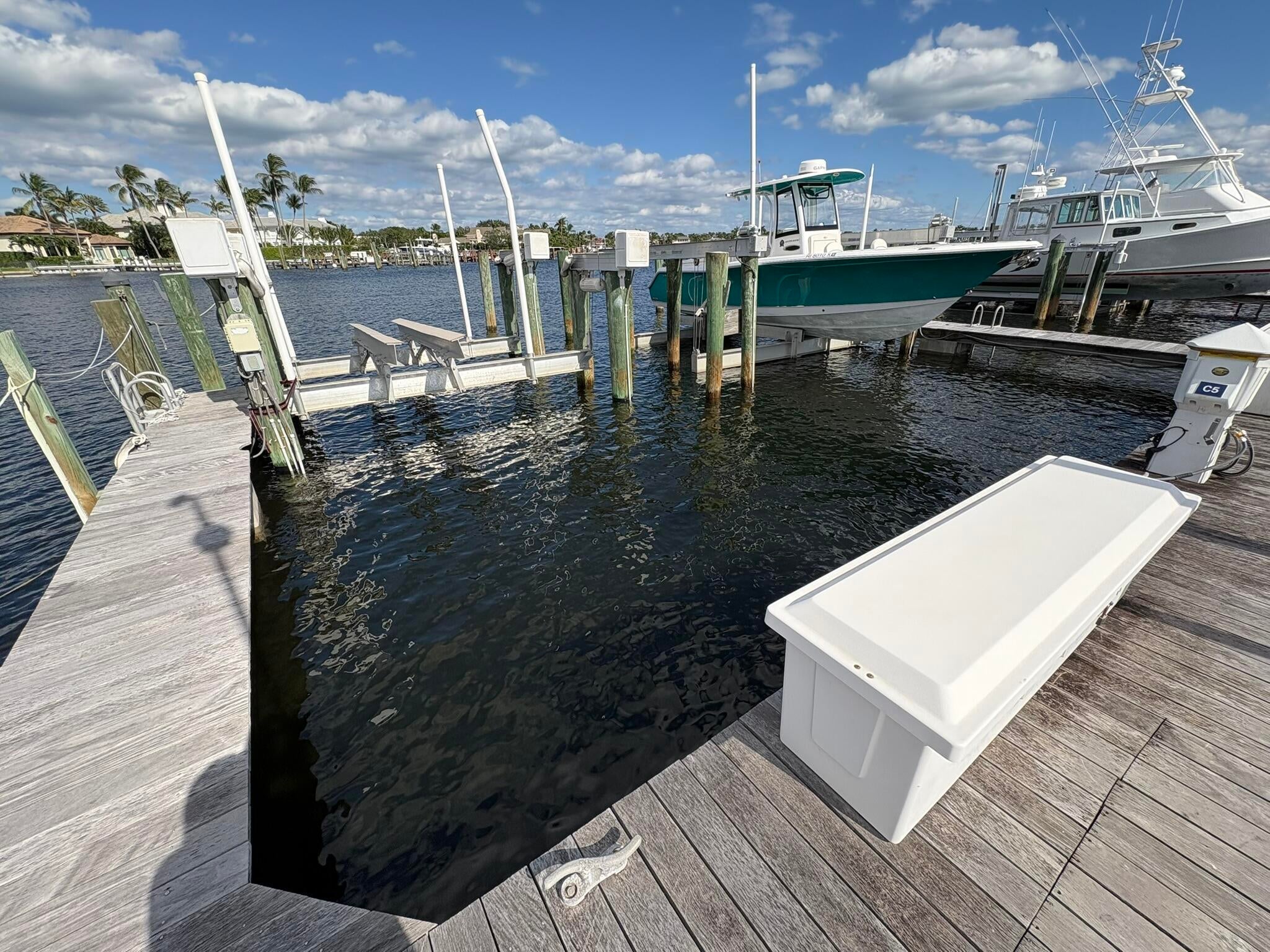 **[Deeded 50' Slip & Lift Included]**Twelve Oaks is one of North Palm Beach's most coveted gated waterfront enclaves. This unique and rarely available 3-bed/3-bath corner residence offers 2,200 sq ft of refined living space and includes a 50ft deeded slip with a 30,000-lb lift, power, and footlocker. This all-Inclusive luxury home for boaters has it's own private marina that sits directly on the deep waters of Lake Worth Lagoon. No fixed bridges means you can be on the open waters of the Atlantic Ocean in minutes. READ MORE!This corner end unit spans 2,200 square feet of refined living space, and is adorned throughout with imported cherrywood, Italian seafoam granite, marble, and tile, complemented by crown-molded tray ceilings and hurricane-impact glass throughout. A private entrance and walkway lead into a breathtaking sunlit glass gallery, an air-conditioned, fully enclosed space that flows seamlessly into the main living area overlooking the marina - perfect for entertaining or quiet relaxation. The owner's retreat features a spa-style ensuite, private lounge, and convertible, air-conditioned lanai opening to a secluded waterfront terrace and Japanese garden. A secondary suite offers its own lounge, ensuite bath, and veranda with lagoon views, while a third suite features a queen-size luxury Murphy Bed, walk-in closet, and a travertine soaking tub wrapped in marble. With its northeast exposure, the home is bathed in natural light year-round and surrounded by huge, mature oaks and lush tropical landscaping that is meticulously maintained year-round. Twelve Oaks Coastal Community is just minutes from MacArthur Beach State Park and the finest dining, shopping and golf in Palm Beach County. Multiple private patios, 24/7 manned security, and community amenitiesincluding pools, tennis, and pickleballcomplete the resort-style experience.