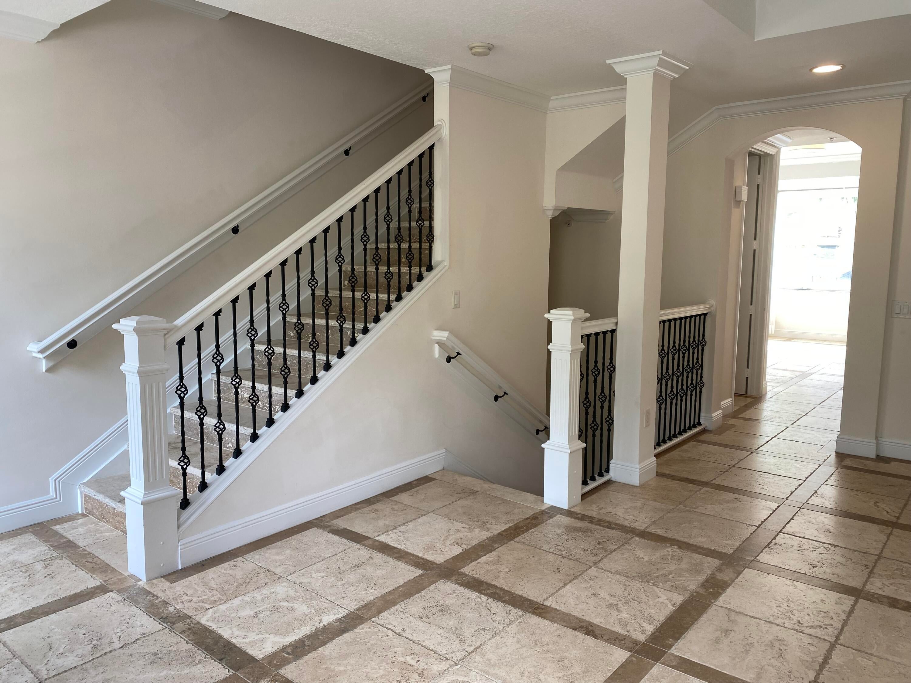 Refinement at its best! This beautiful town house has custom cut coral flooring (coquina) & stairs throughout. Iron railings compliment the solid wood cabinetry, crown moldings, & timeless granite countertops. This lovely gated community has pristine beaches, The Gardens Mall, & I-95 at its' doorsteps. The top floor has 2 master bedrooms with luxurious update baths, walk in closets, a balcony, & upstairs laundry room. The first floor flex room has a custom closet system and can easily do dual duty as an in home office and bedroom with a private adjacent full bath.Sunshine floods an entertainer's open concept dream kitchen and the living & dining spaces with two more balconies! Harbour Oaks provides a state of the art gym, tropical pool & spa, playground, and community room