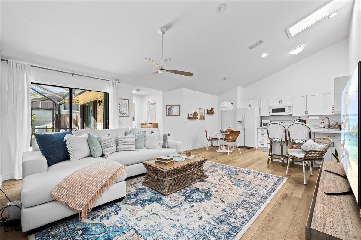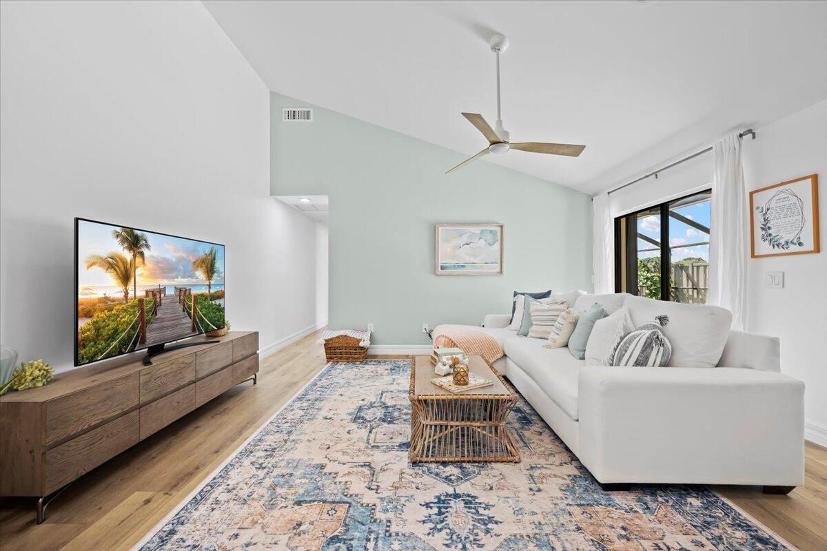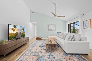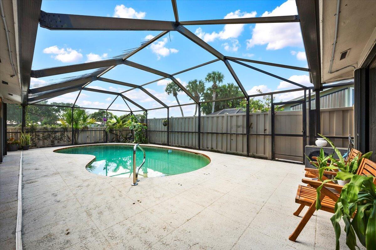 Experience Florida living at its finest in this stunning single-story corner unit townhome in the highly desirable community of Westwood Gardens. Enjoy gorgeous lake views, breathtaking sunsets, and the comfort of private pool living with a screened-in patio-perfect for relaxing and entertaining all year round. This 3-bedroom, 2-bath home offers a spacious split floor plan with vaulted ceilings and all-new flooring throughout, creating an open, airy feel. Each bedroom features sliding glass doors that open directly to the pool area, seamlessly blending indoor and outdoor living. The updated kitchen includes modern finishes and an under sink reverse osmosis system, complemented by a full-house water filtration system for added convenience. Some updates include a metal roof,a four-year-old A/C system with UV lights, and an energy-efficient pool heater that's just two years old. The kitchen has been beautifully updated and the popcorn ceilings have been removed for a clean, modern look, and accordion shutters provide added peace of mind. Enjoy all the amenities Westwood Gardens has to offer, including a clubhouse, community pool, tennis courts, and basketball courts. The location can't be beat - just minutes to I-95 and the Turnpike, 10 minutes to the beach, close to fantastic restaurants and shopping, top-rated schools, numerous public golf courses, and only 20 minutes to Palm Beach International Airport. This townhome has the option of being sold furnished/turnkey. Call today to schedule your private showing!