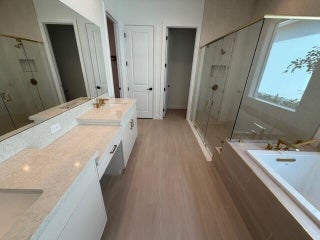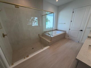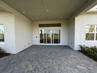 Welcome Home! Step into this stunning residence featuring a grand foyer with soaring 12-foot ceilings and a bright, open-concept design. Gorgeous LVP flooring flows seamlessly throughout, leading you into the expansive living area. Just off the entry, a sunlit study with glass French doors offers space for a home office or library. The chef-inspired kitchen impresses with stylish two-toned cabinetry, a walk-in pantry, and a designer quartz backsplash. The luxurious primary suite showcases white shaker cabinetry, a spa-like bath with a drop-in soaking tub, a walk-in shower with bench, and a spacious closet. A conveniently located powder bath adds comfort for guests, while secondary bedrooms provide ample space for family or visitors. Step outside to the expanded covered lanai, perfect for