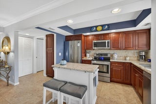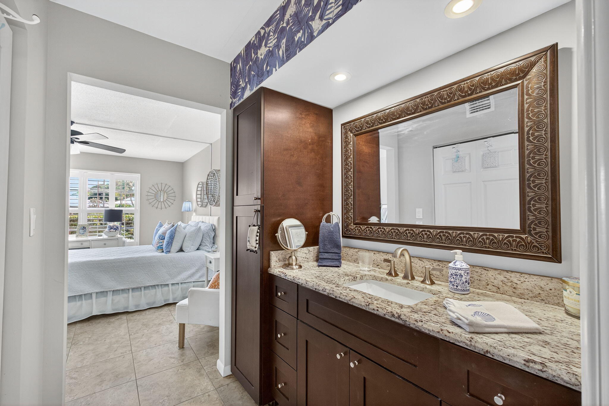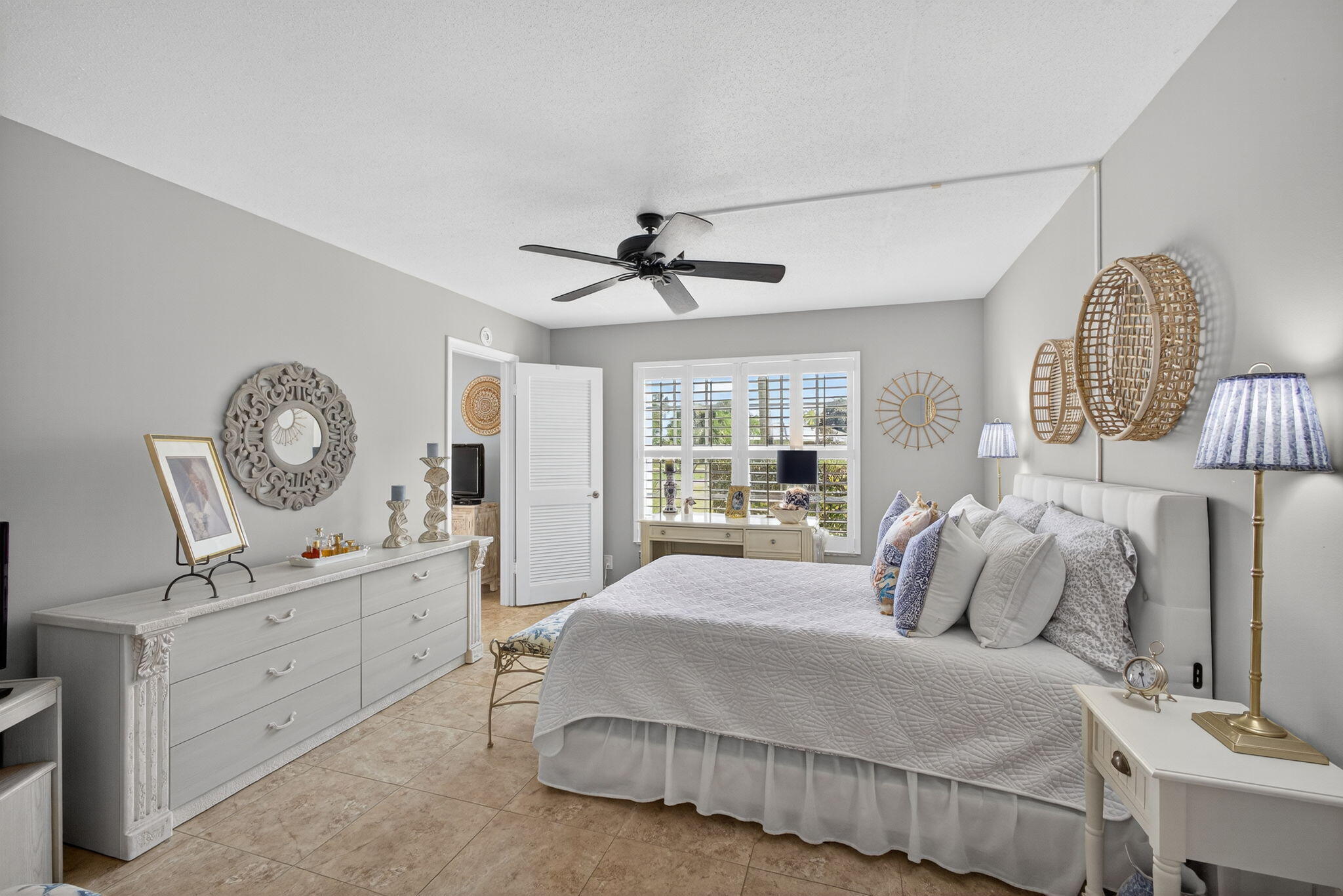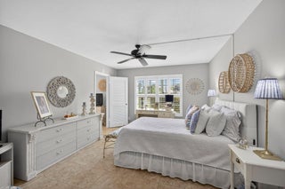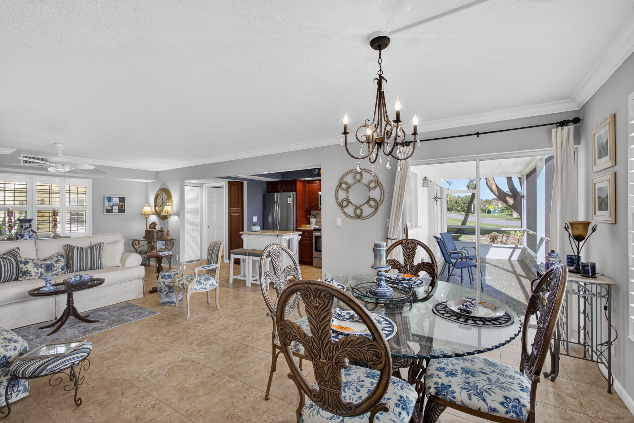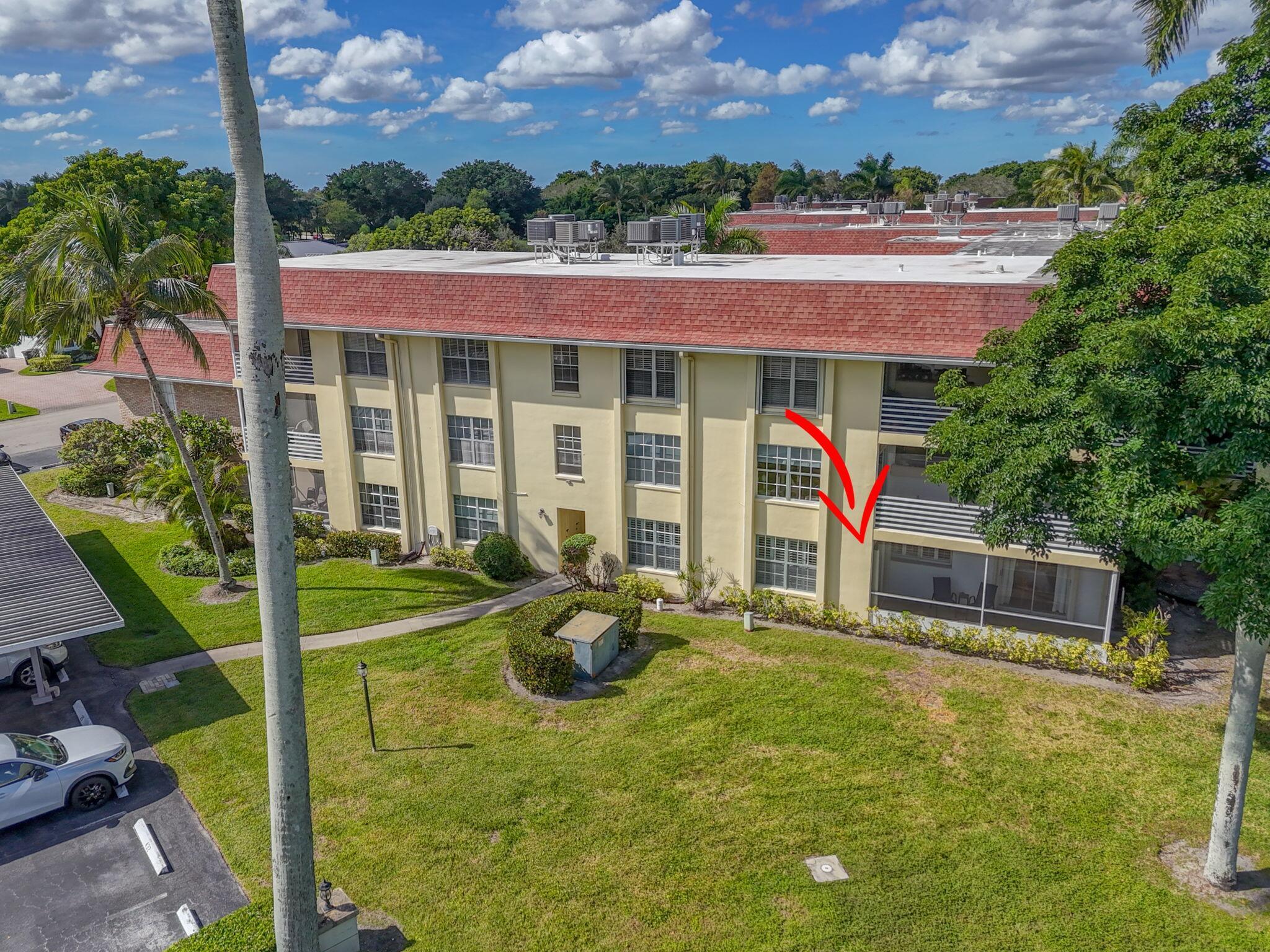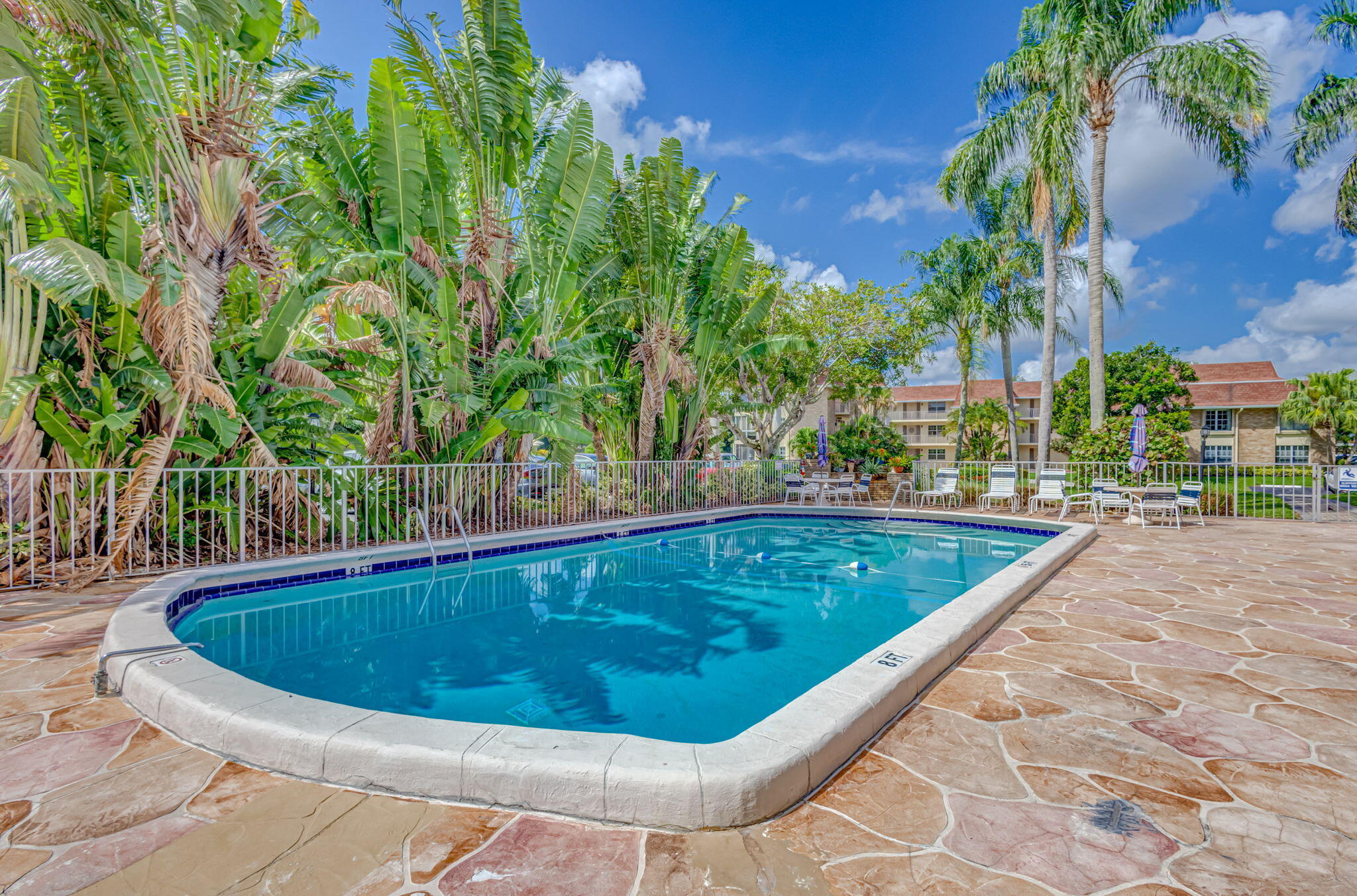 This ground floor, pet friendly, condo features modern design, an open concept layout, and high-end kitchen finishes. The primary suite includes a walk-in closet and sleek en-suite bathroom, while the second bedroom is equally well-appointed for guests or office use. Upgrades such as impact windows, new AC, and plantation shutters add that special detail and value. A screened patio brings in natural light, and views of greenery and upscale homes, creating a great place to relax. The unit has a covered parking spot as well as access to plenty of guest spots. Residents enjoy amenities like a clubhouse, heated pool, and landscaped grounds. This unit is Move-in ready and ideal for low-maintenance, year-round or seasonal living. Located near shops and dining at prestigious PGA Commons.