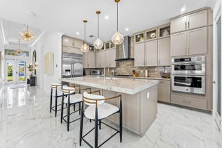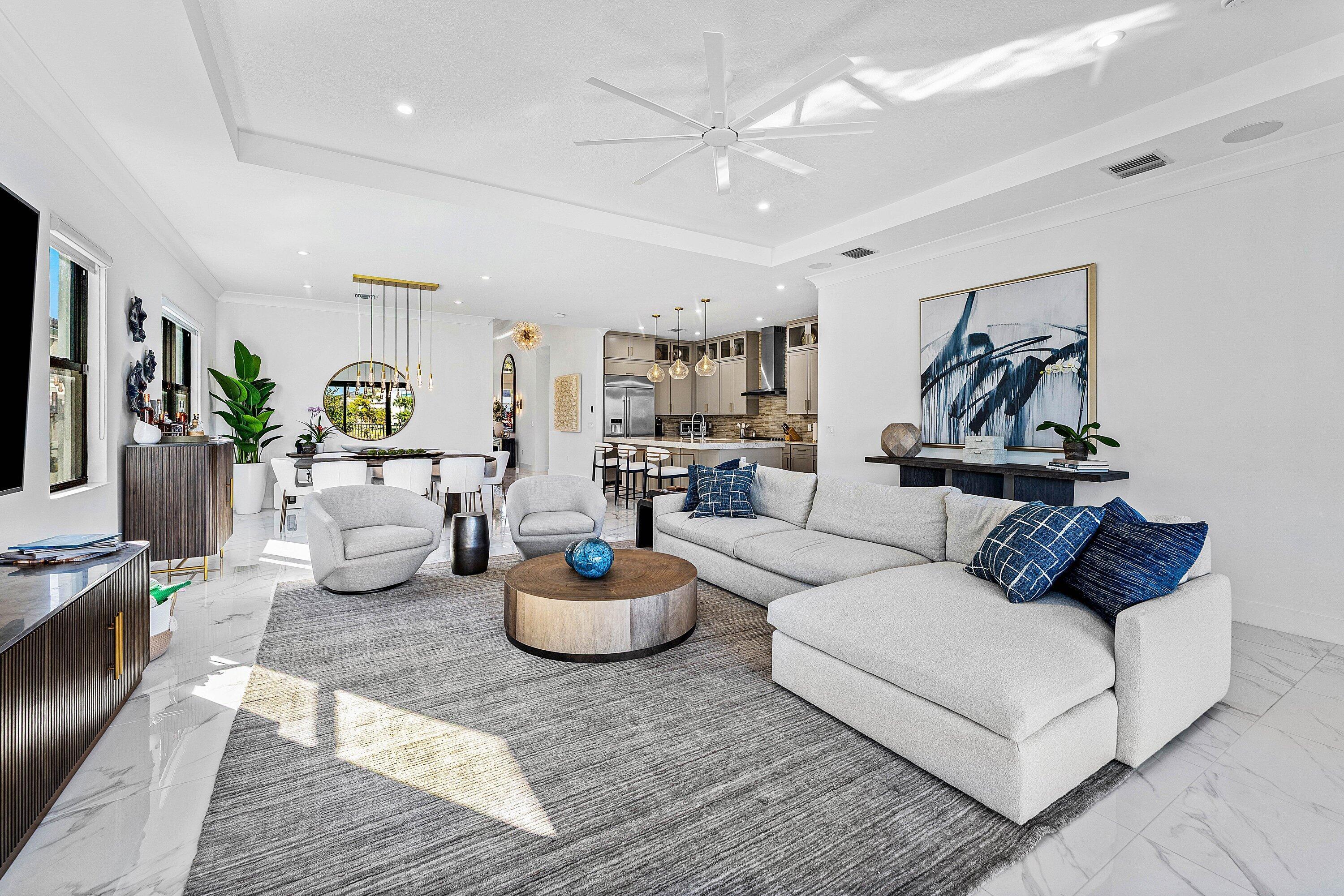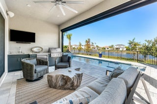 This magnificently appointed Malibu model is the largest single level floorplan in the intimate boutique subdivision of Solana Bay at Avenir. Nothing has been overlooked in its exceptional design & decor with contemporary accents including a chef''s delight kichen with quartz counters, glass tile backsplash, stacked cabinets & a 6 burner gas range. The spacious great room floor plan enhances the open feeling that greets you as soon as you enter the home and extends to the expansive outdoor living area with wide lake views, phantom retractable screens, summer kitchen equipped with built-in grill, refrigerator & sink. Exceptional storage space abounds throughout the kitchen & fully outfitted closets in all bedrooms. Furniture negotiable.
