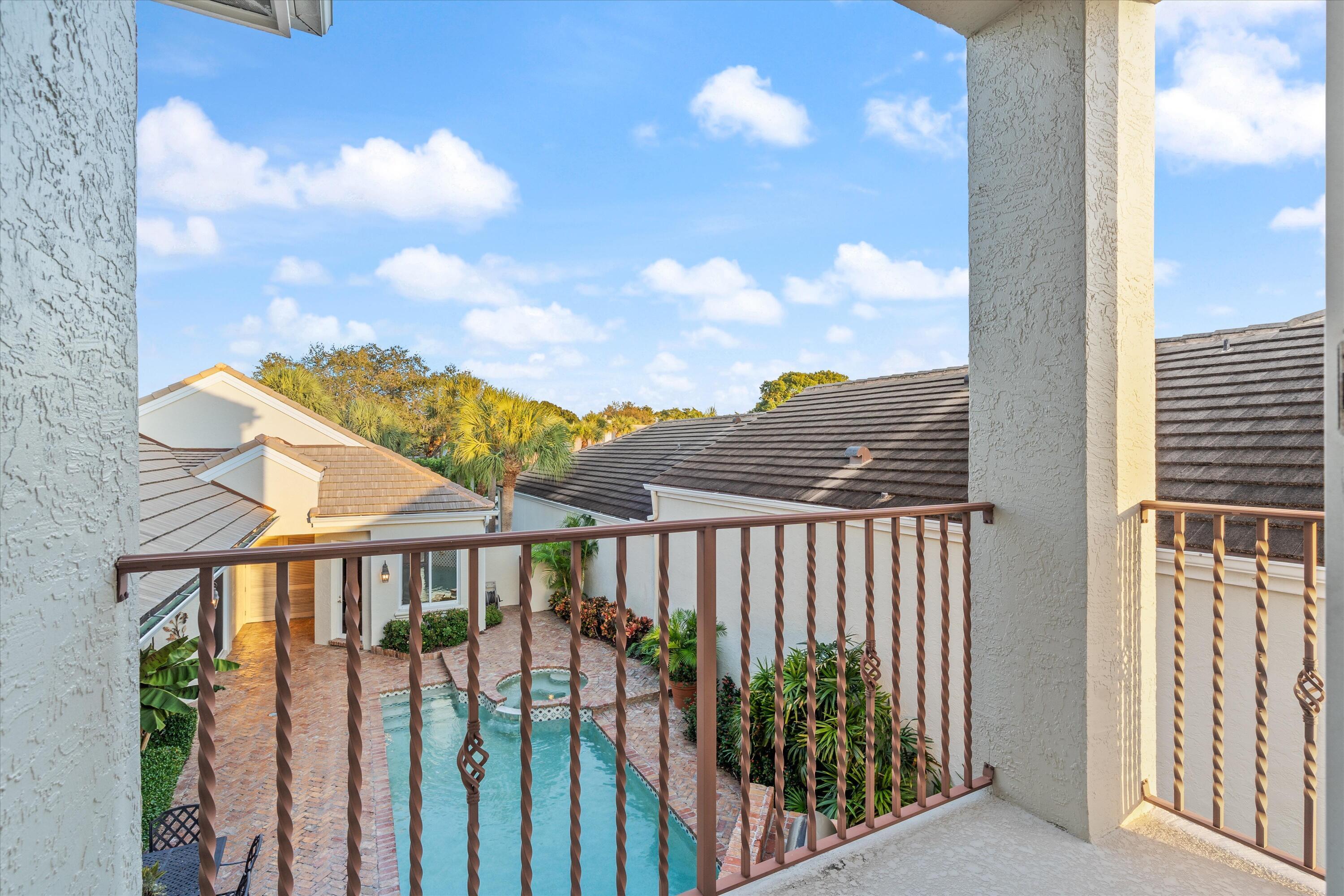 Direct panoramic Intracoastal views from this stunning waterfront 3BR/3.5BA home with two balconies and private courtyard featuring heated pool/spa. Located in the private marina community of Oak Harbour, includes a protected boat slip(up to 40' boat) and 12klb lift. Direct ocean access to Jupiter & Palm Beach inlets, with no fixed bridges. Offering abundant natural light and coquina accents, this home has steel reinforced concrete walls and travertine flooring Main house features private upstairs oversized primary suite with vaulted ceilings, sitting area, office, and dual walk in closets. Kitchen offers chef island with dual sinks, Thermador wall oven/microwave with warming drawer, Bosch dishwasher, pantry and breakfast nook. More -See Supplement...Primary bath offers dual vanity, dual walk in shower and roman tub. A private separate guest house with full bath plus den and kitchenette is perfect for guests, in- laws, etc. Other home features include a newer roof (2022), impact front doors, abundant landcape lighting and 250 Gal propane tank for gas pool heater. Oak Harbour is a 24-hour manned gated community, offering a clubhouse with outside deck overlooking the marina and intracoastal, billiards, exercise room, two pools, tennis/pickle ball courts. This home has a premier location between PGA Blvd and Donald Ross Rd, with an array of dining and shopping options. Close to I-95, turnpike, 20 min. to PBI airport and Brightline station. Both Juno and Jupiter beaches minutes away; front and center location to enjoy the annual Holiday Boat Parade.