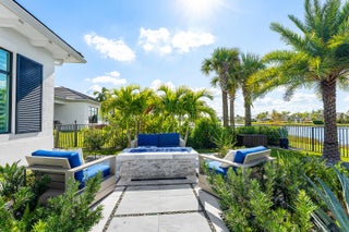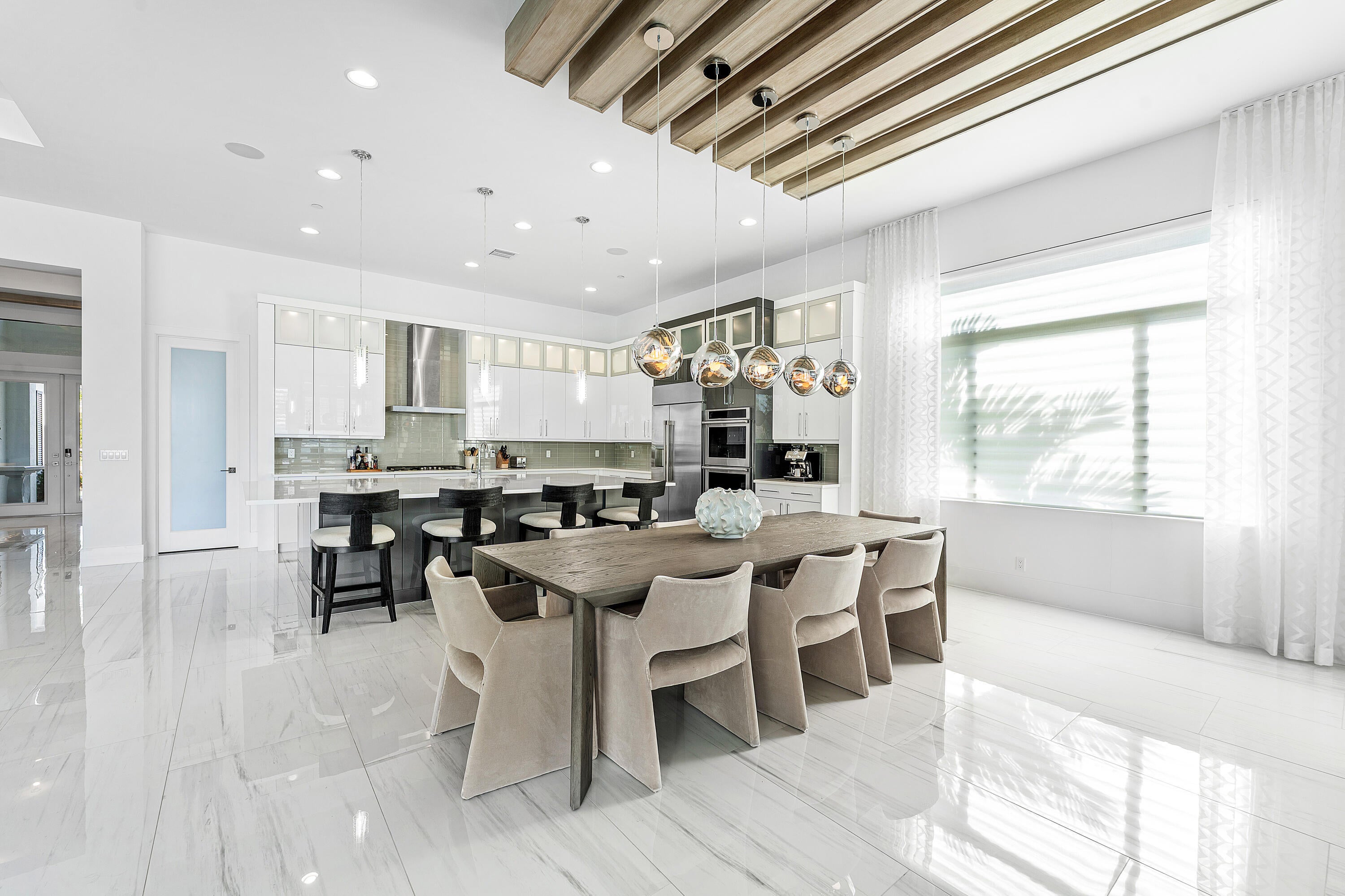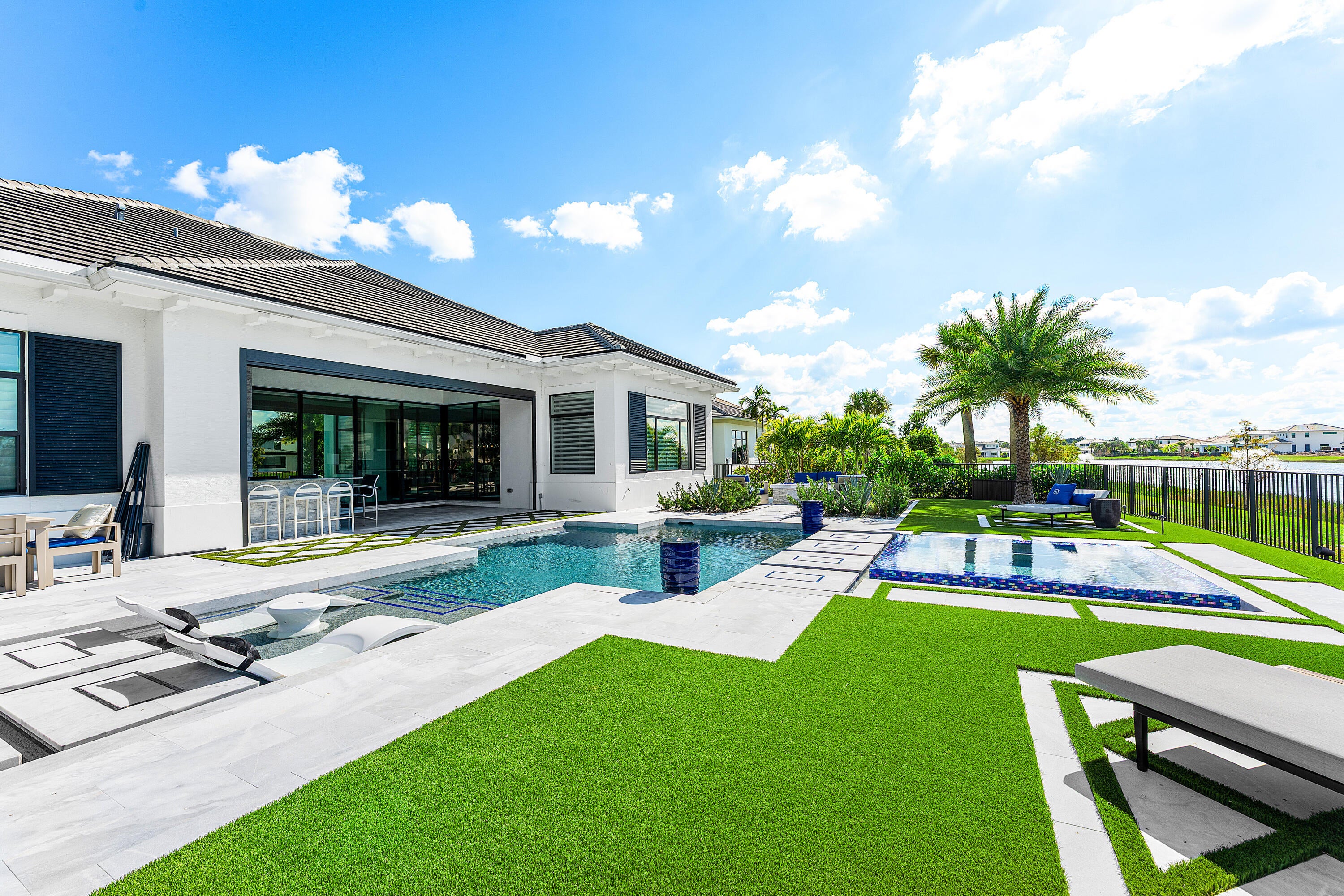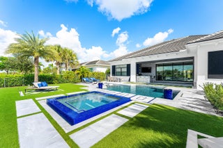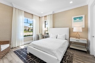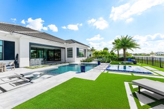 Situated on a premier waterfront lot in Coral Isles at Avenir, this modern residence delivers the ultimate South Florida lifestyle. Replicated from the builder's model and enhanced with extensive upgrades inside and out, the home is framed by lake views and vibrant sunsets. Featuring 3 spacious bedrooms, each with its own ensuite bath and walk-in closet, plus an oversized office/den. The backyard is a private oasis with a resort-style pool, spa, outdoor kitchen, and lounge overlooking the water. An entertainer's paradise. Inside, seamless indoor-outdoor flow, designer lighting, a full-home surround sound system, and a custom garage-to-gym conversion elevate every detail. Move-in ready, offered furnished or unfurnished with Restoration Hardware interiors. Furniture negotiable.