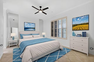 The largest extended Carmel Model that boasts over 2000 SF with an open & spacious floor-plan, making it feel even larger. High ceiling with lots of sliding glass doors & windows w/lots of natural light on one of the nicest Lakefront lots in the Community & close to the community entrance, pool, & Amenities. Lots of nice upgrades throughout the interior, but the owners also recently spent over $100,000 taking care of all the most important & costly improvements all buyers want today, like: Brand New Roof (2025) & gutters, replaced plumbing, so ''No'' Polybutylene pipes anymore, all New Stainless Steal Appliances (Never Used), New Impact Garage Door Installed, all electrical outlets replaced with all new & up to new code with GFI switches & all outdated popcorn ceiling removed & nice smoot& freshly painted ceiling & walls as well as updated lighting throughout. Full accordion shutter Hurricane Protection for all windows and doors. Signature Divosta solid poured concrete construction & located in one of the best 24/7 Manned Guard Gated & Low HOA Communities in literally the "Heart of PBG" just minutes from everything & on the power grid for the Hospital to boot