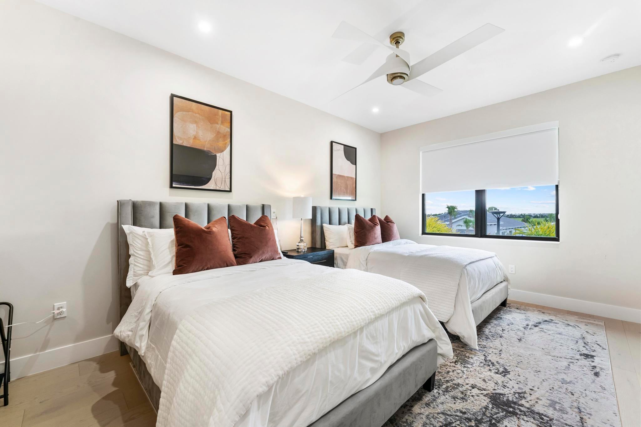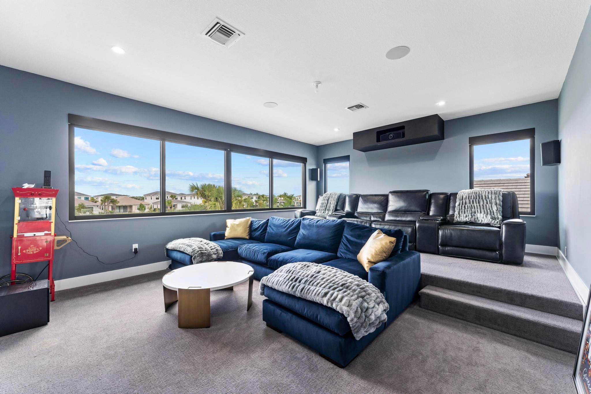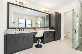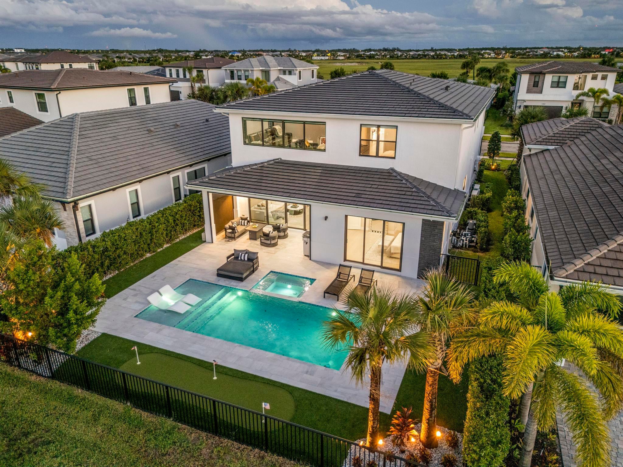 Seller is highly motivated, bring all offers. Highly upgraded 2024-built, one-of-a-kind designer-finished home offering 5 bedrooms, 6 bathrooms, office, media room, and loft on a premier lake-view lot. Features include a custom heated saltwater pool and spa, outdoor kitchen, retractable screens, and putting green. Over $500,000 in builder and designer upgrades, including custom lighting and fans, artwork, electric shades, upgraded baths, epoxy garage floor, upgraded cabinetry, central vacuum, and EV charging station.The elegant first-floor primary suite showcases two custom walk-in closets and sliding impact doors opening directly to the pool and spa. The north-facing backyard provides ideal sun exposure throughout the day. A custom home theater with projector