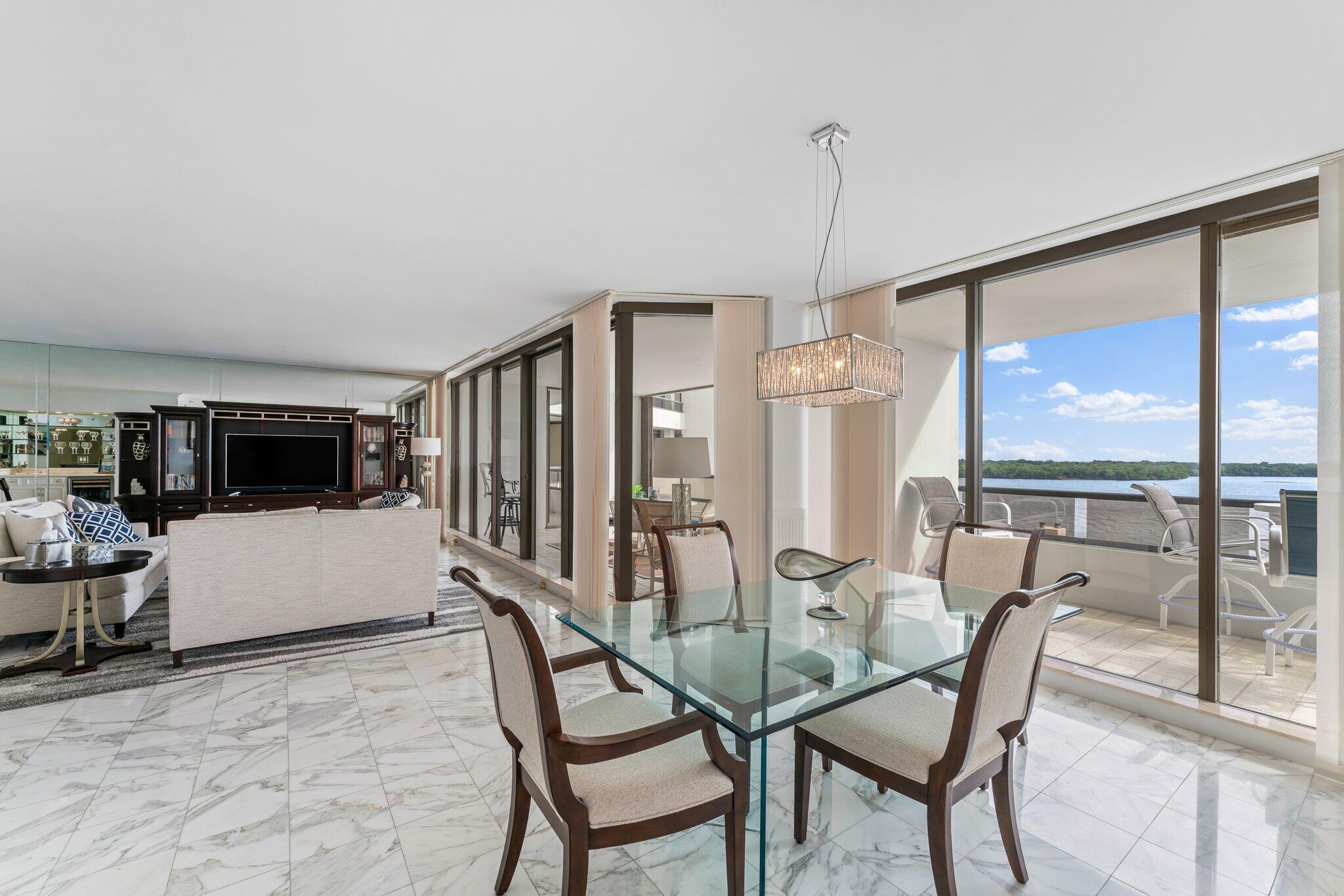 Lake Point Tower's new luxury pool, spa and deck is open and ready for immediate enjoyment! This spacious 2-bedroom, 2.5 bathroom residence in North Palm Beach features sensational wide south intracoastal views, providing an unparalleled waterfront living experience. With over 2600 square feet, this residence allows you to spread out and enjoy breathtaking water views from every room. The living room is generously sized, offering ample space for a grand piano, and included a built in area with wet bar and beverage refrigerator. Enjoy your meals looking out onto the ocean from both the dining room and eat in kitchen area. New impact glass slider in kitchen dining area was recently installed! Huge walk in customized closets in both bedrooms.Large wrap around balcony with loads of space for outdoor furniture! Newer Bosch Air Conditioner, 2021.You'll be among the first to enjoy the exceptionally designed luxury heated pool and expansive outdoor deck, now complete! Pet friendly building (one small dog allowed). This secure gated waterfront community ensures your safety with 24-hour concierge service and roving security. The underground parking garage provides one assigned space and a private storage area - perfect for bicycles and sports equipment. Amenities abound including a newly renovated modern gym with top-of-the-line equipment, workshop, community room, library, 2 saunas and of course the magnificent new pool! Whether you prefer a workout, engaging in a hobby, or socializing with fellow residents, Lake Point Tower has something for everyone. Old Port Cove has an on-site restaurant, Belle's, where you can dine-in or have your meal delivered to your door. Take advantage of the 2-mile walking path around the perimeter of the community, offering a scenic route for your daily strolls. Watch the luxury mega yachts pull in and out of Safety Harbor Marina. Situated just a short drive away from the area's top restaurants, The Gardens Mall, beautiful beaches, Palm Beach International airport and world-class golf courses, this stunning waterfront property has it all!