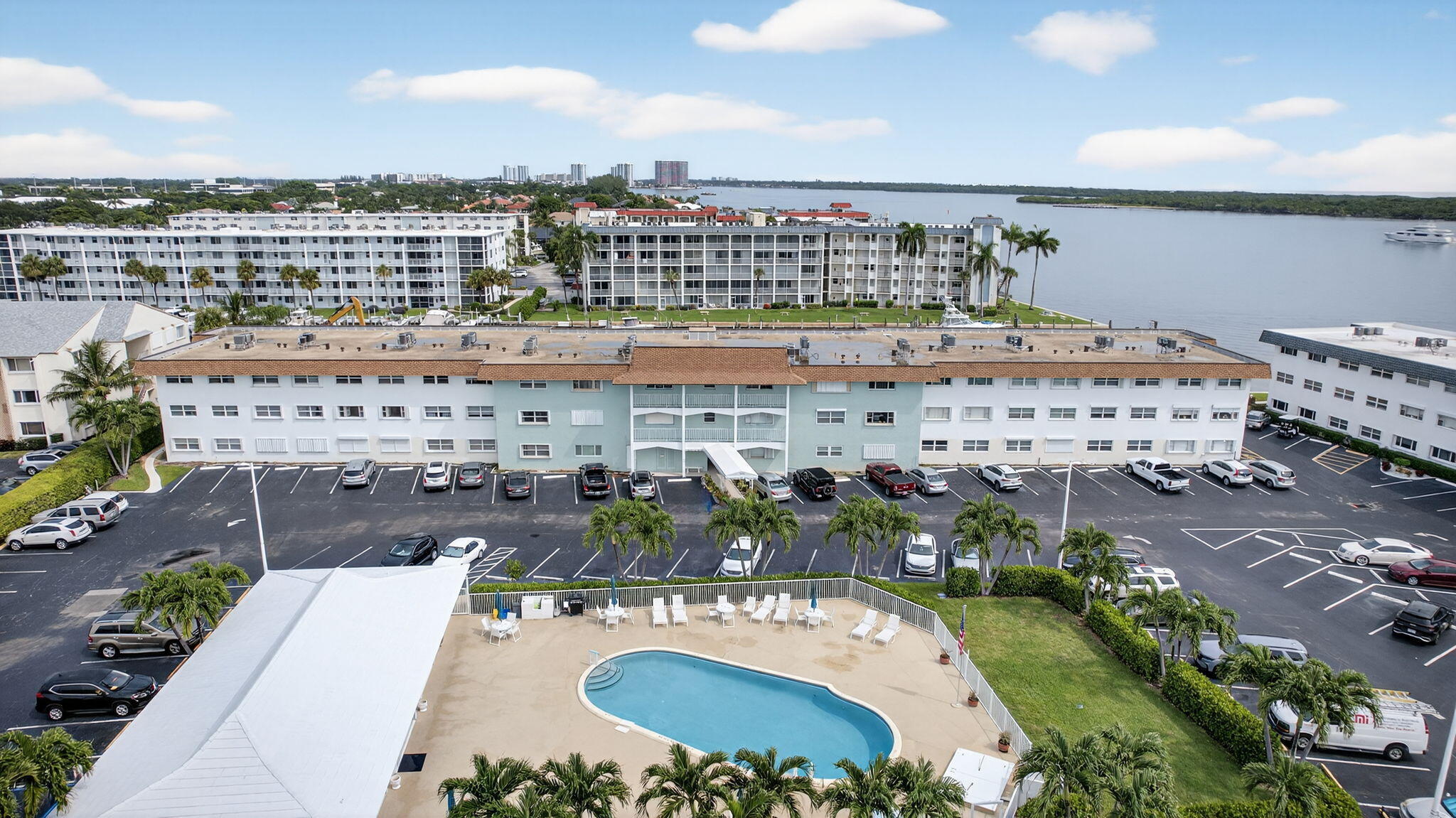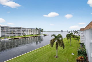 Located in the desirable Shore Club Community, this rare corner-unit condo offers tranquil intracoastal views from your private lanai. The 2-bedroom, 2-bath home features a bright, open layout with excellent natural light, hurricane-impact windows throughout. Enjoy convenient access from the parking lot via the common elevator or nearby side staircase. Recent updates include a new roof and A/C (2022) and an updated elevator (2019). The well-maintained waterfront building also features a freshly painted lanai, new walkways and railings. This 55 plus community offers social clubhouse, heated pool, bbq grill, fishing dock. Ideally situated close to beaches, marinas, shopping, dining, and everyday conveniences, close to PBI. Move-in ready and perfect for full-time living or seasonal enjoyme