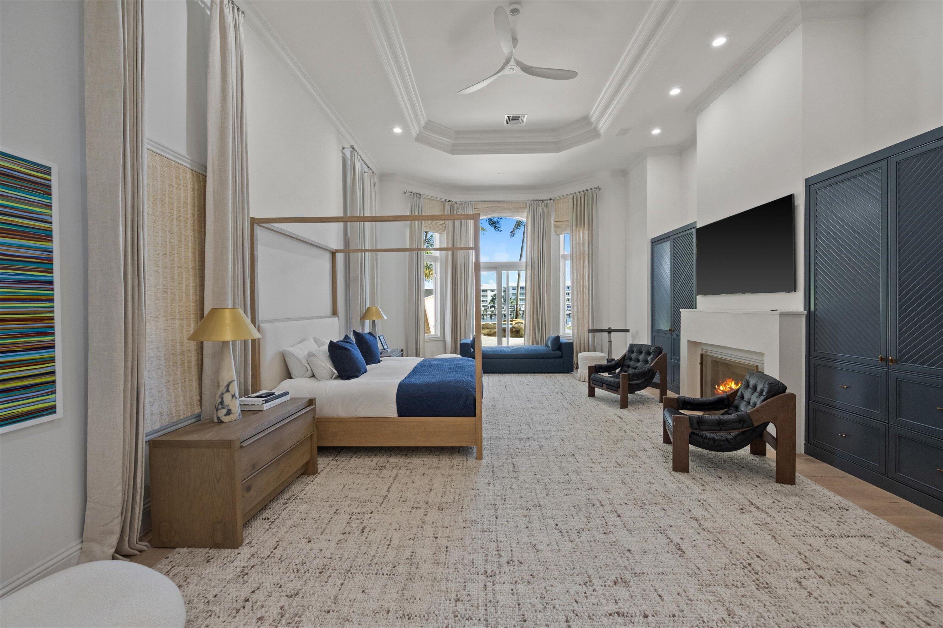 A rare opportunity to own a direct intracoastal estate in the heart of Palm Beach Gardens. Set on a privately gated, elevated 1.04-acre lot with 180 feet of deep-water frontage, this recently reimagined residence was renovated by Caitlin Kah Interiors and offers a true new-construction feel. Surrounded by mature oak trees and lush views, the home enjoys ideal eastern exposure and cooling intracoastal breezes. Interior features include white oak floors, soaring 25-foot ceilings, custom cabinetry, and a chef's kitchen with Wolf, Sub-Zero, and Miele appliances. The resort-style backyard offers a pool and spa, summer kitchen, covered outdoor living areas, and ample space for future expansion.