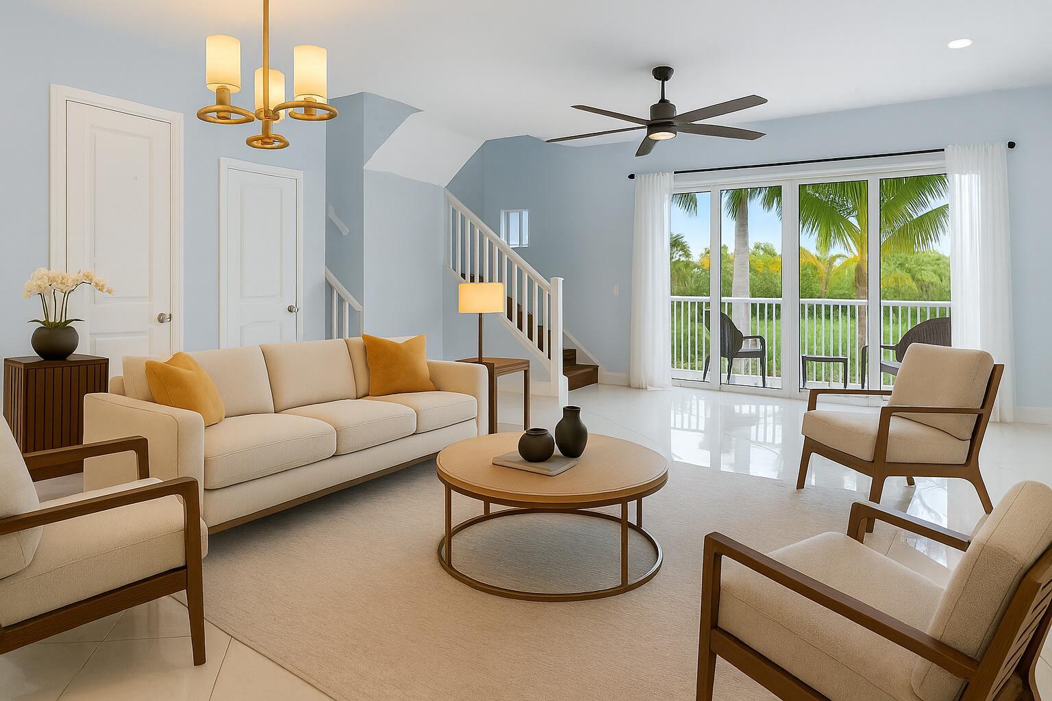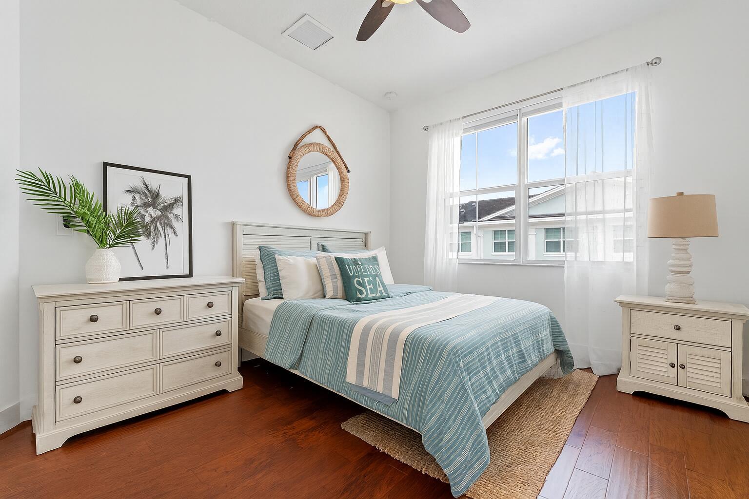 Step into sophisticated living in this immaculate townhouse in Alton, just 10 minutes from the beach. Designed for both comfort and style, it offers a spacious open floor plan, 3.5 bathrooms, and a 2-car garage. The main living area extends seamlessly onto a covered balcony, perfect for relaxed indoor-outdoor entertaining. The gourmet kitchen is a chef's dream, featuring stainless steel appliances, a walk-in pantry, and a large serving island. Elegant marble flooring flows through the main living areas, while warm wood flooring adds character in the bedrooms. Impact glass provides full hurricane protection, and a washer and dryer are included for convenience.