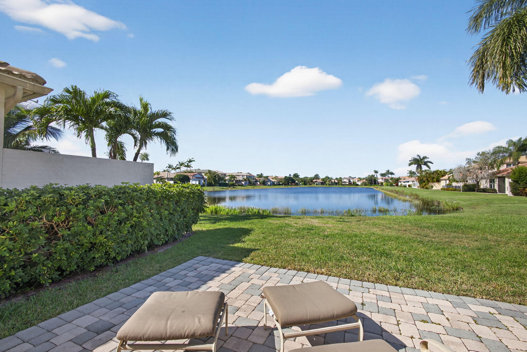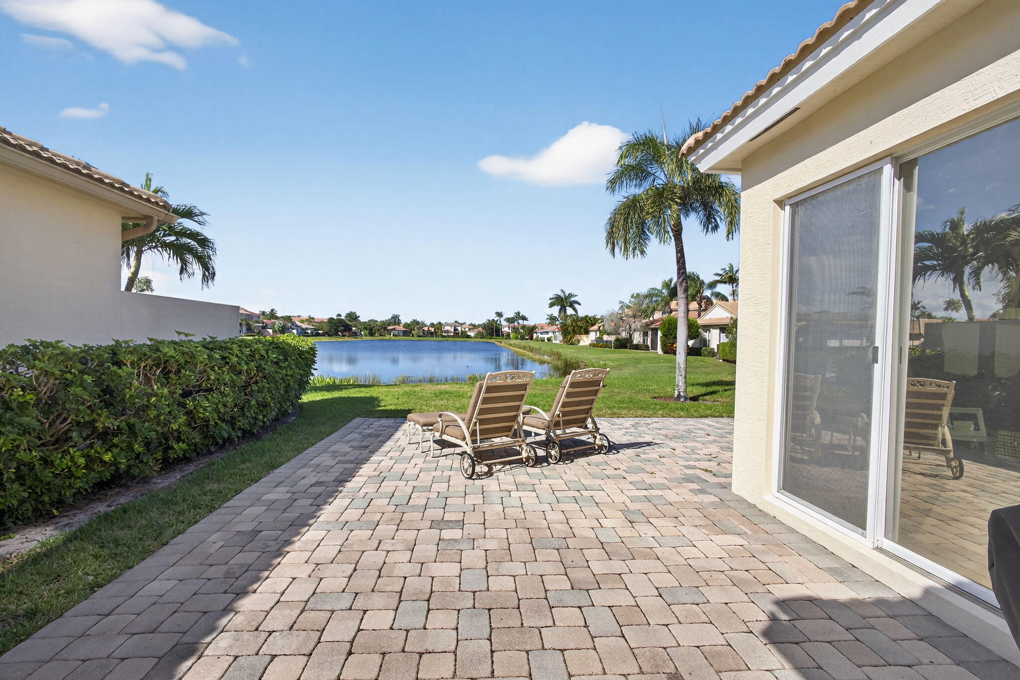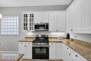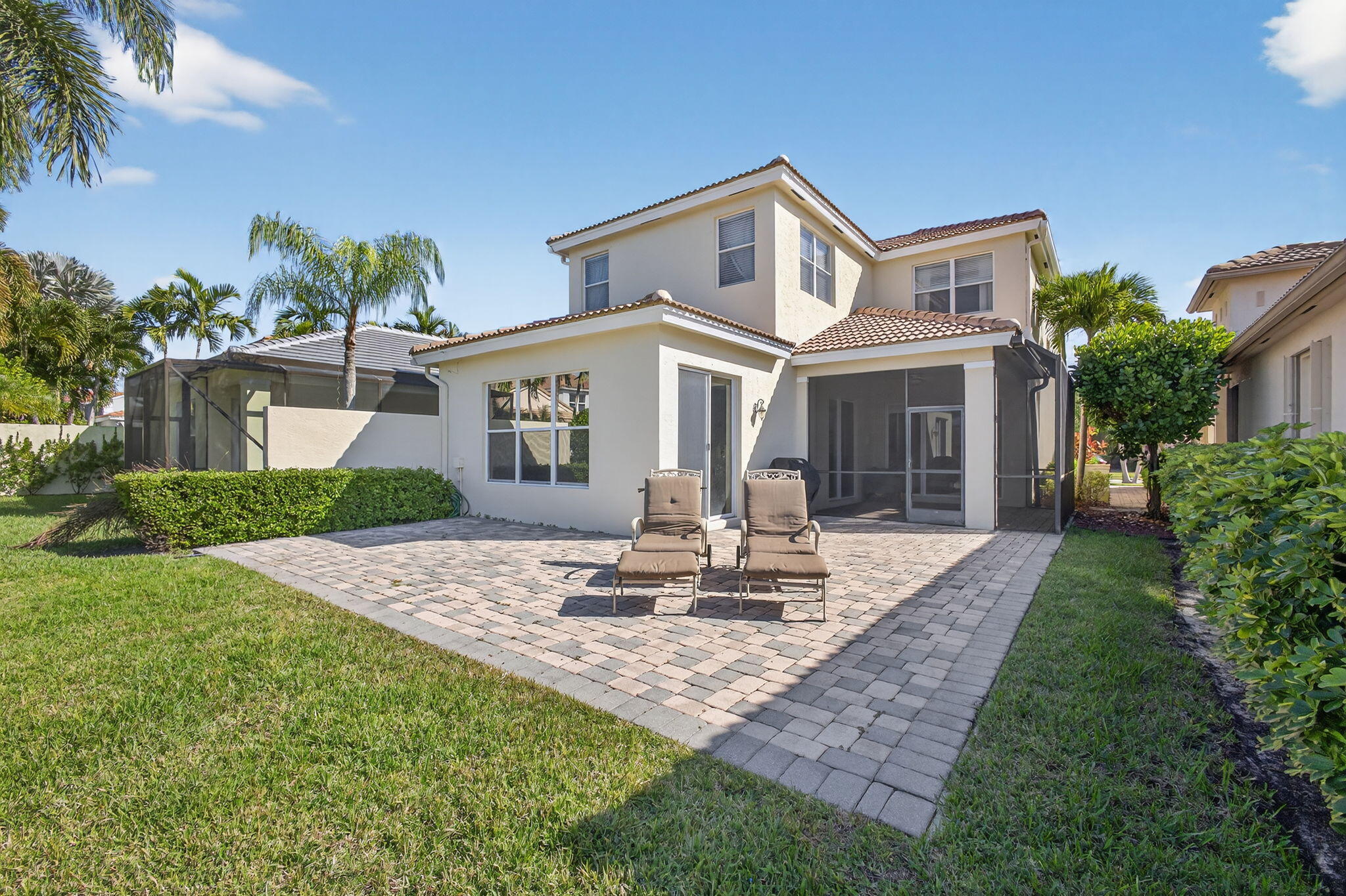 Absolutely pristine 4-bedroom Cortina Model with 3 bathrooms on a fabulous lakefront lot with long lake views in Isle Verde. This home has been meticulously maintained & features a Brand-New Roof Installed in 2023, Newer Samsung stainless steel kitchen appliances & refinished wood cabinetry & granite countertop, and a center island. New light fixtures, custom Window Treatments, & new vinyl flooring on the stairs and hallway, and updated designer carpeting in the bedrooms. Other updates include: recently repainted exterior and interior and full hurricane protection. This home has a nice screened-in lanai & extended patio area for entertaining & enjoying the amazing South Florida Sunsets. This home is even nicer in person, and truly a must-see. Mirabella is one ofthe best 24/7 Manned Guard Gated HOA Communities in all of Palm Beach Gardens with Resort Style Amenities: a Refurbished Clubhouse with Social Events and onsite property managers, one of the best Tennis Facilities, and Workout Room for a non-country club community in the entire area, Separate Kids' Clubhouse & Gated Playground and Heated Pool.