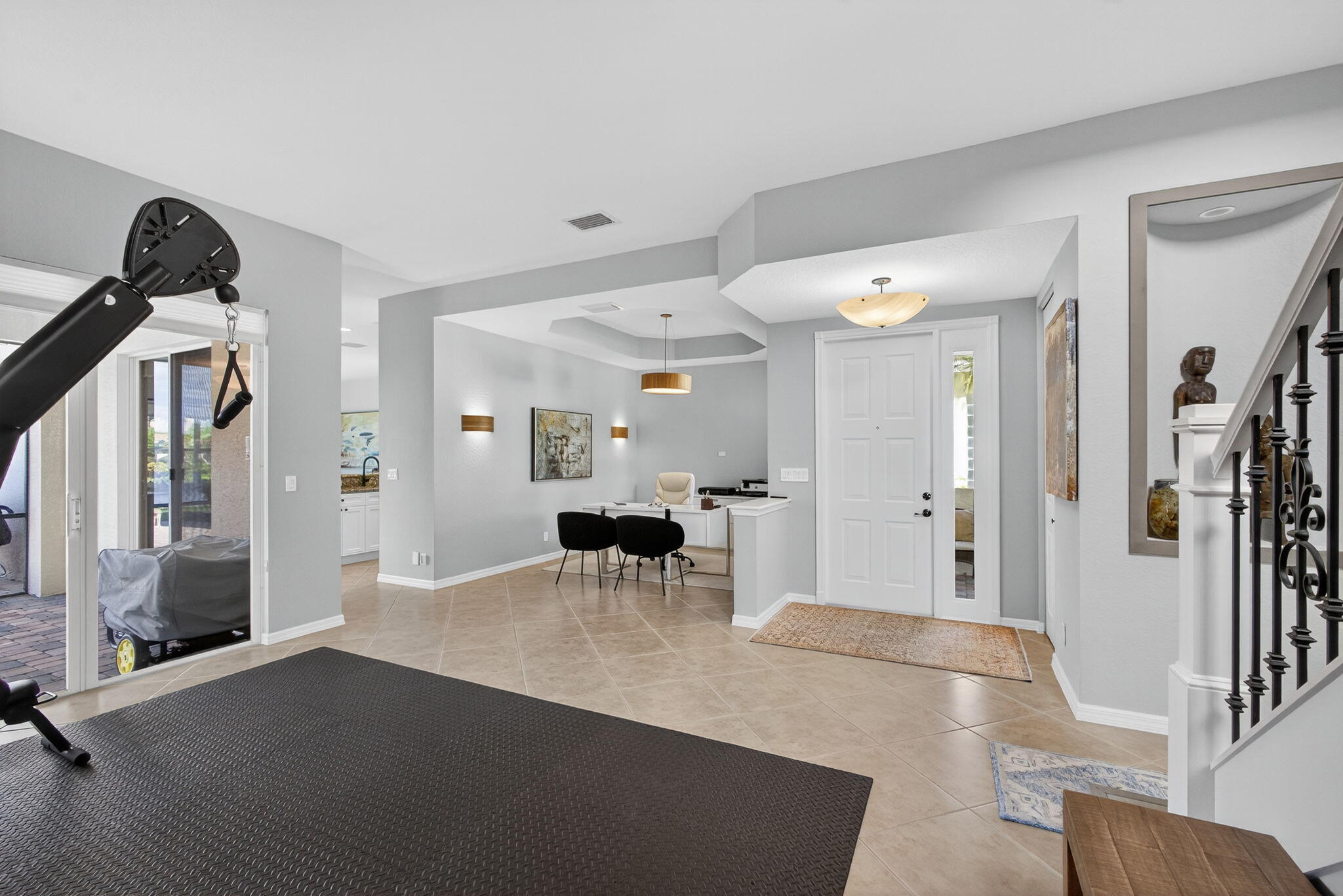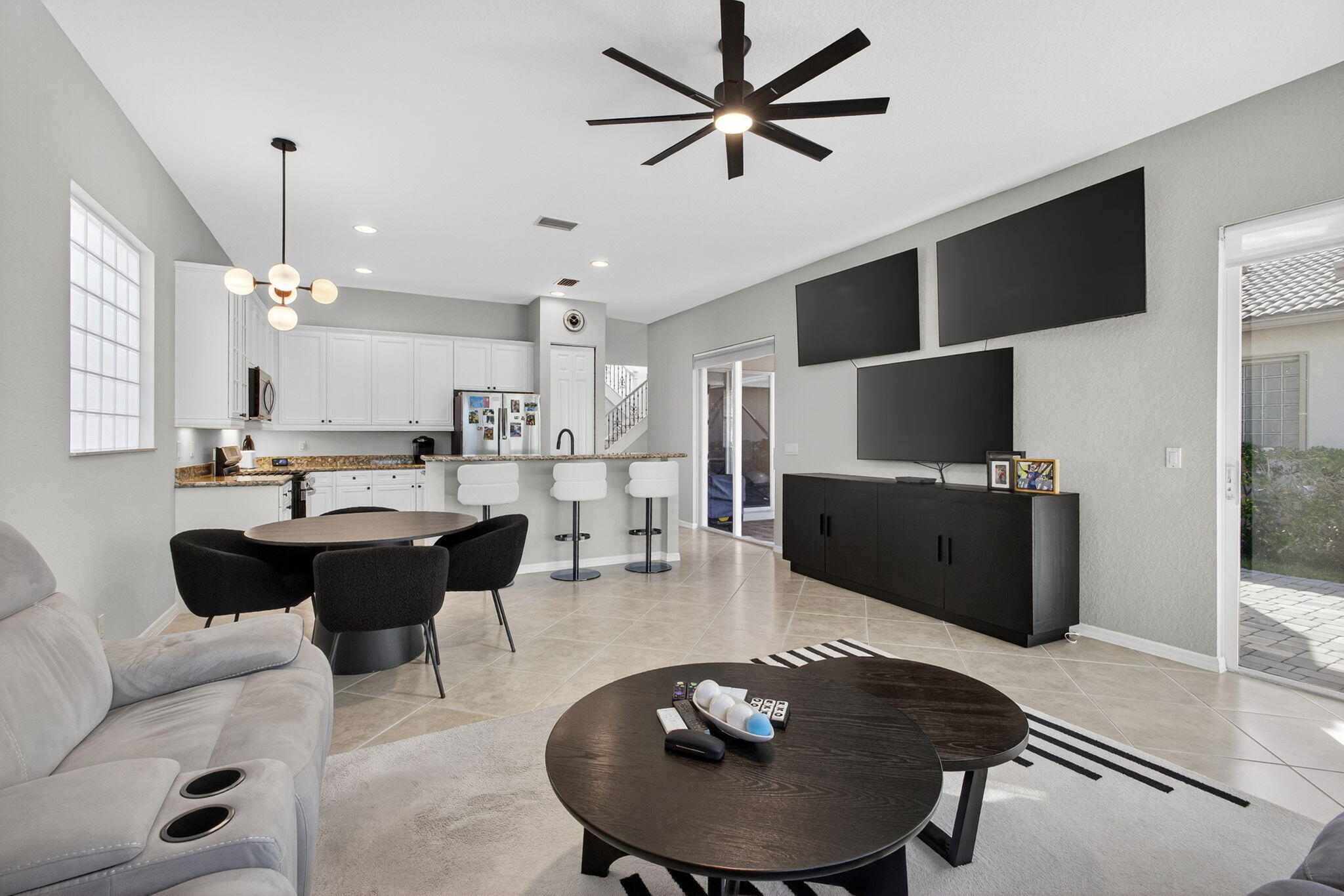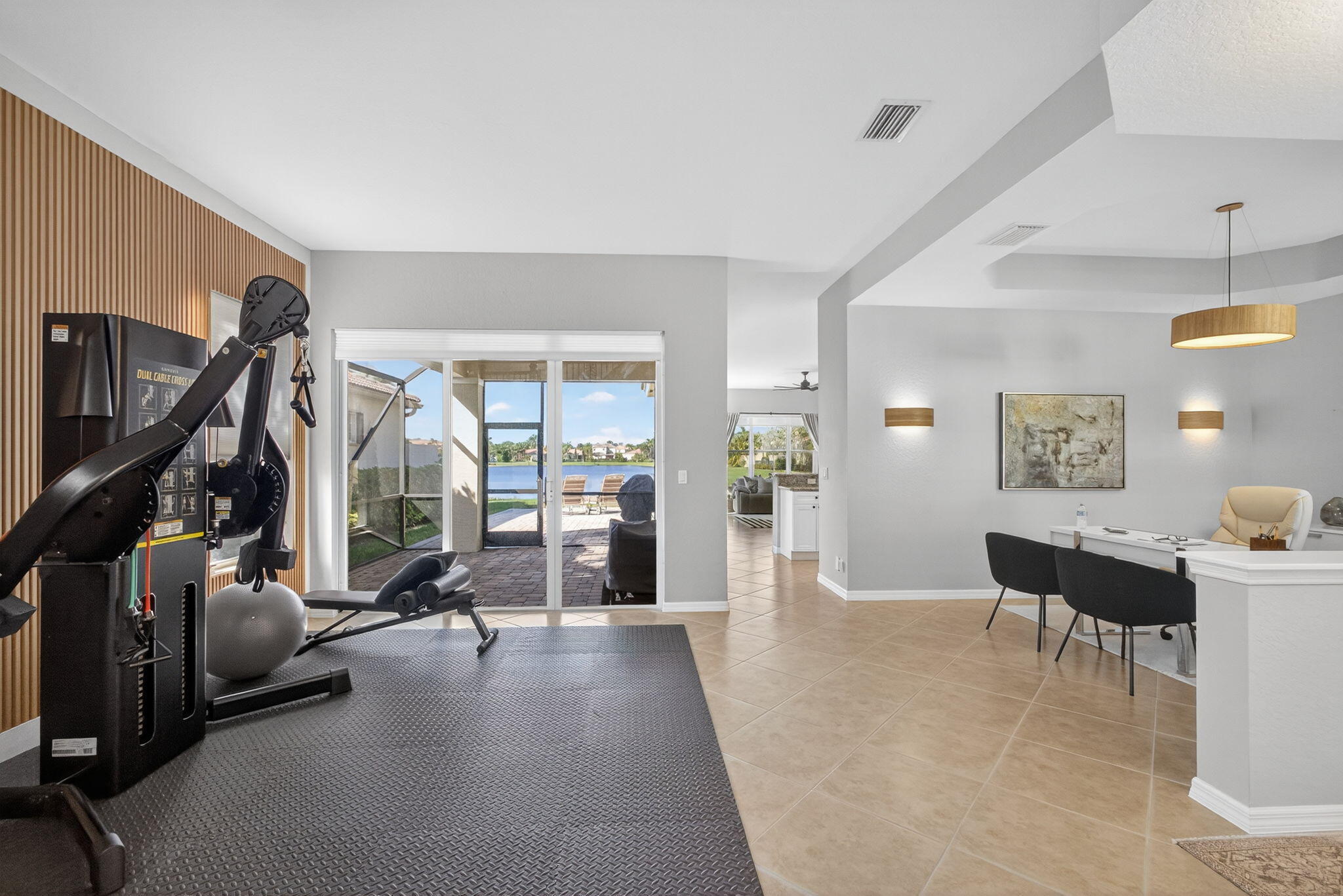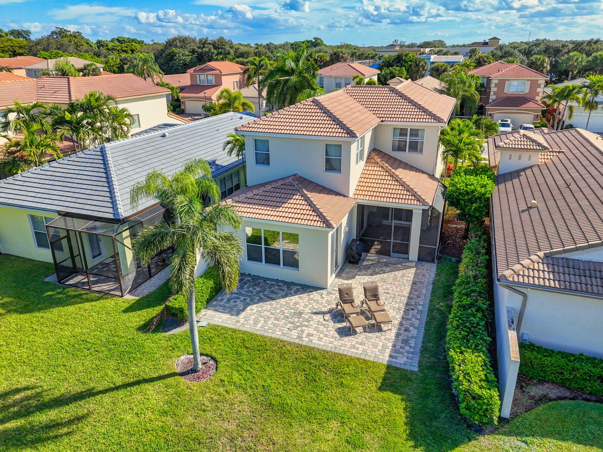 Absolutely pristine 4-bedroom Cortina Model with 3 bathrooms on a fabulous lakefront lot with long lake views in Isle Verde. This home has been meticulously maintained & features a Brand-New Roof Installed in 2023, Newer Samsung stainless steel kitchen appliances & refinished wood cabinetry & granite countertop, and a center island. New light fixtures, custom Window Treatments, & new vinyl flooring on the stairs and hallway, and updated designer carpeting in the bedrooms. Other updates include: recently repainted exterior and interior and full hurricane protection. This home has a nice screened-in lanai & extended patio area for entertaining & enjoying the amazing South Florida Sunsets. This home is even nicer in person, and truly a must-see. Mirabella is one ofthe best 24/7 Manned Guard Gated HOA Communities in all of Palm Beach Gardens with Resort Style Amenities: a Refurbished Clubhouse with Social Events and onsite property managers, one of the best Tennis Facilities, and Workout Room for a non-country club community in the entire area, Separate Kids' Clubhouse & Gated Playground and Heated Pool.