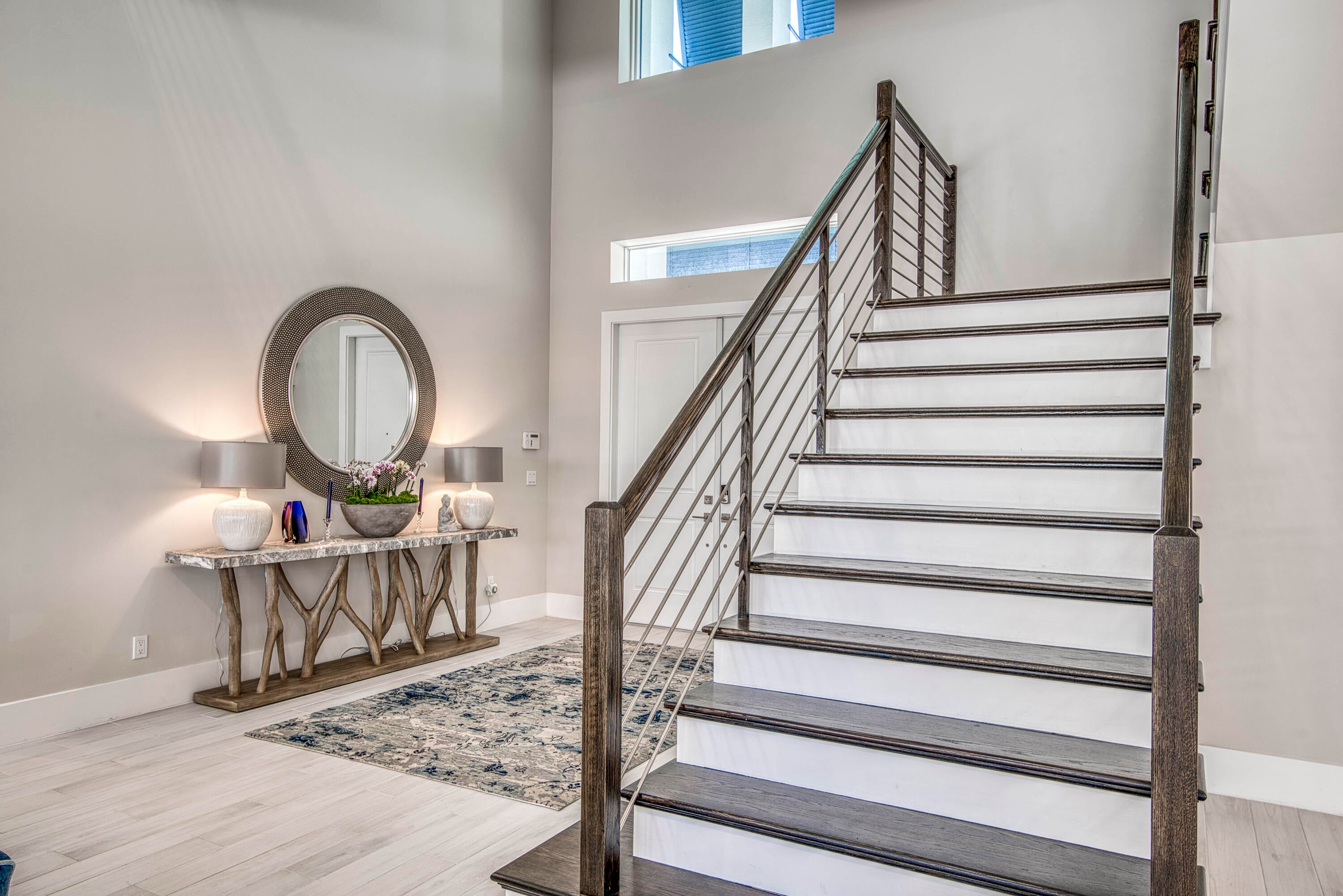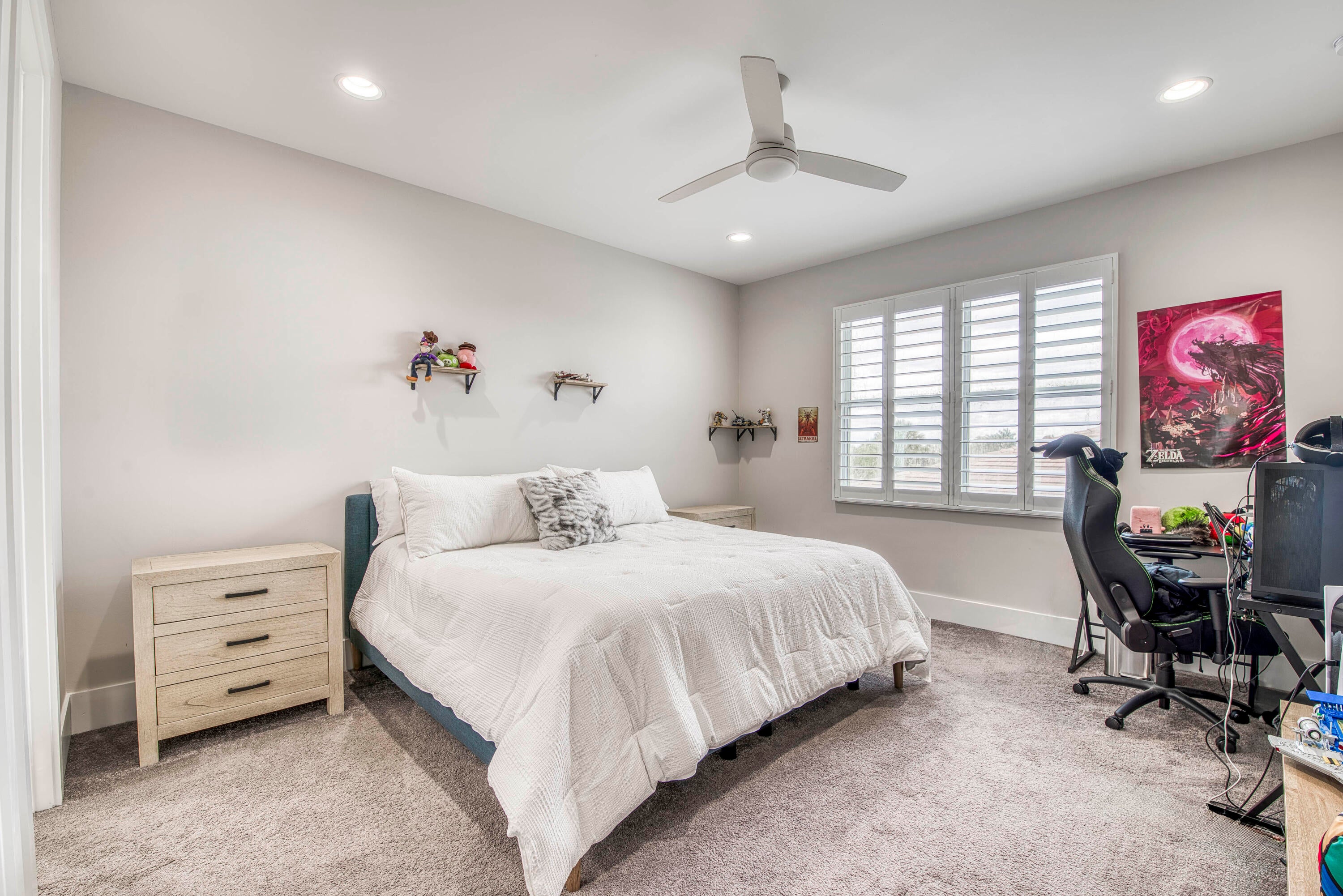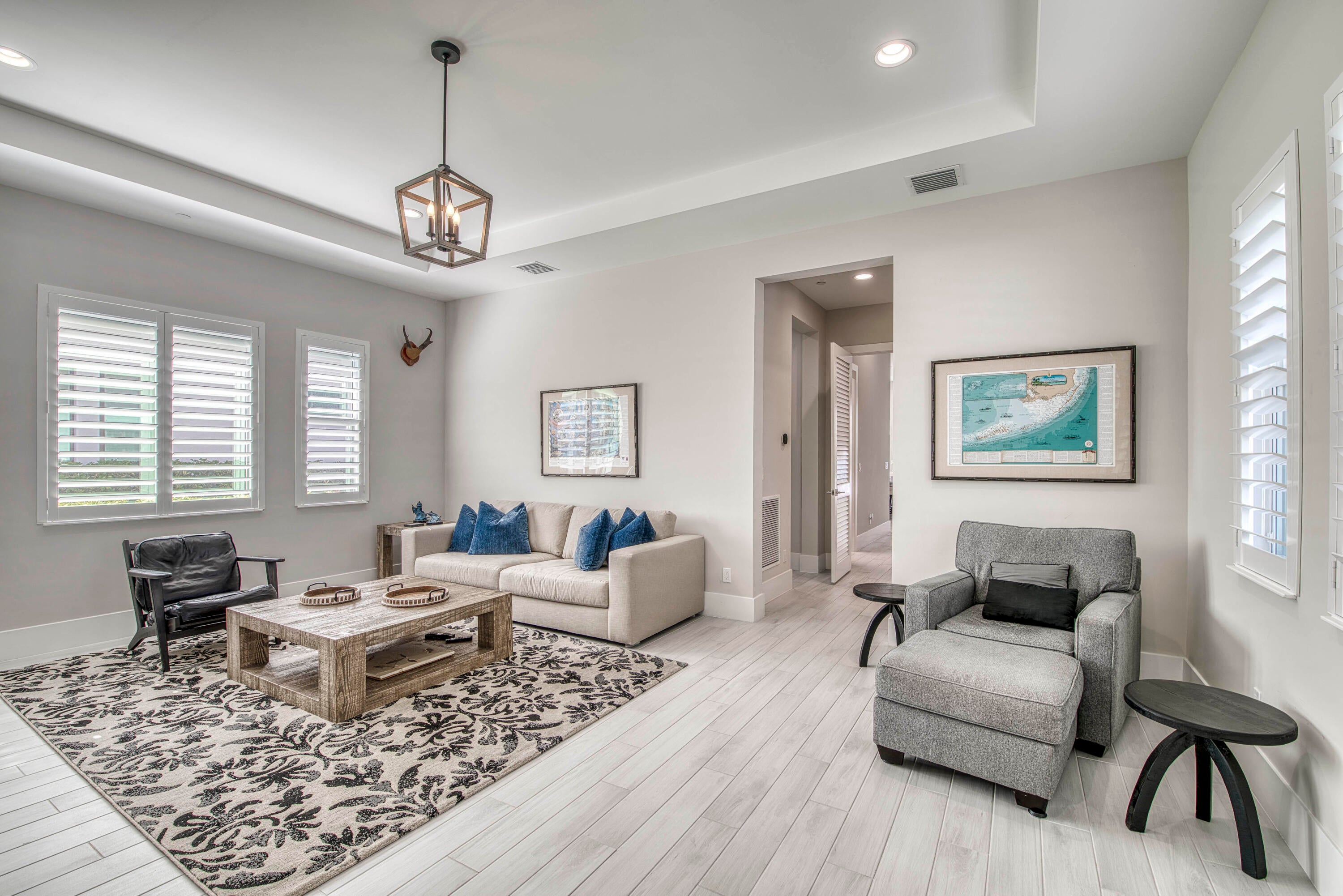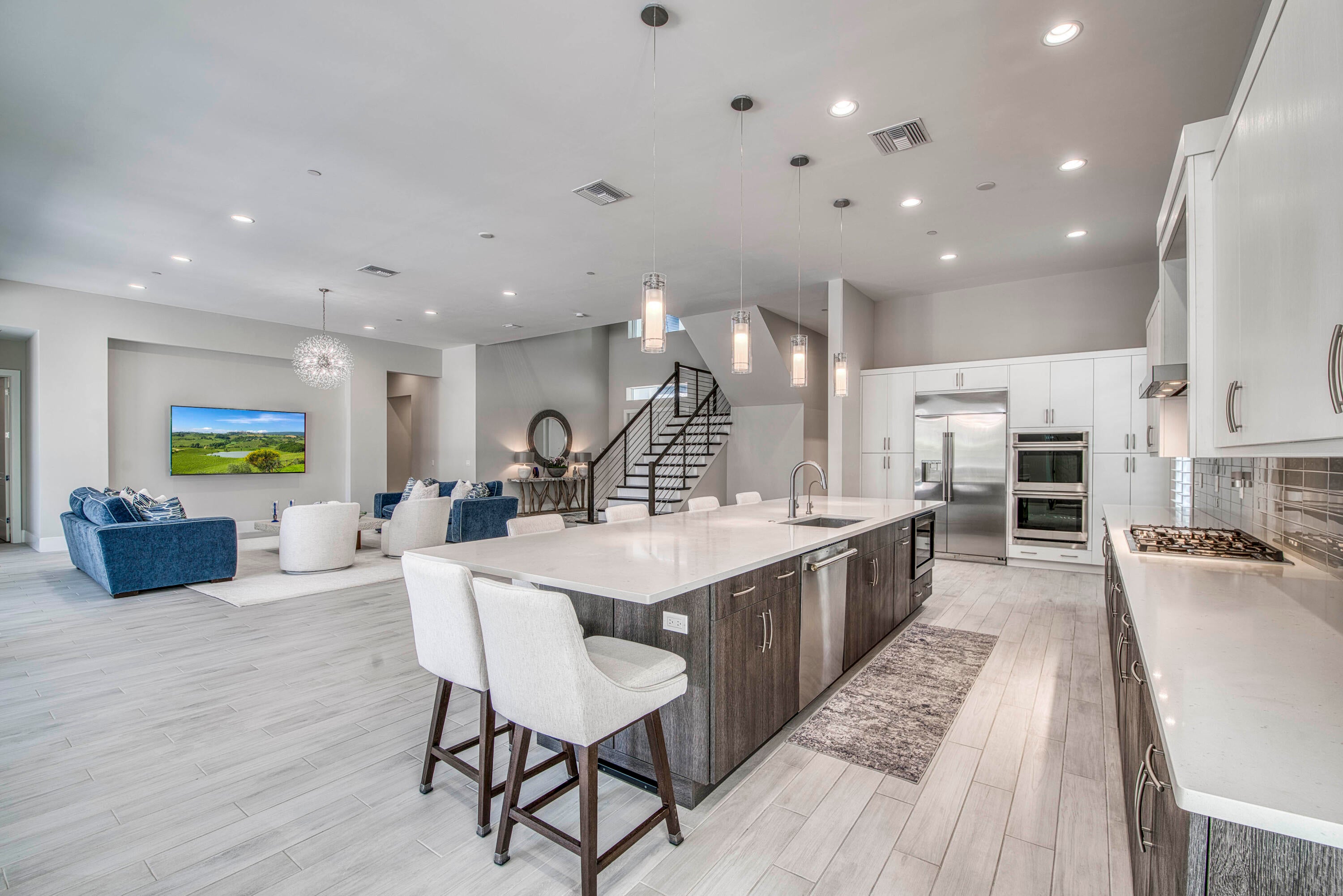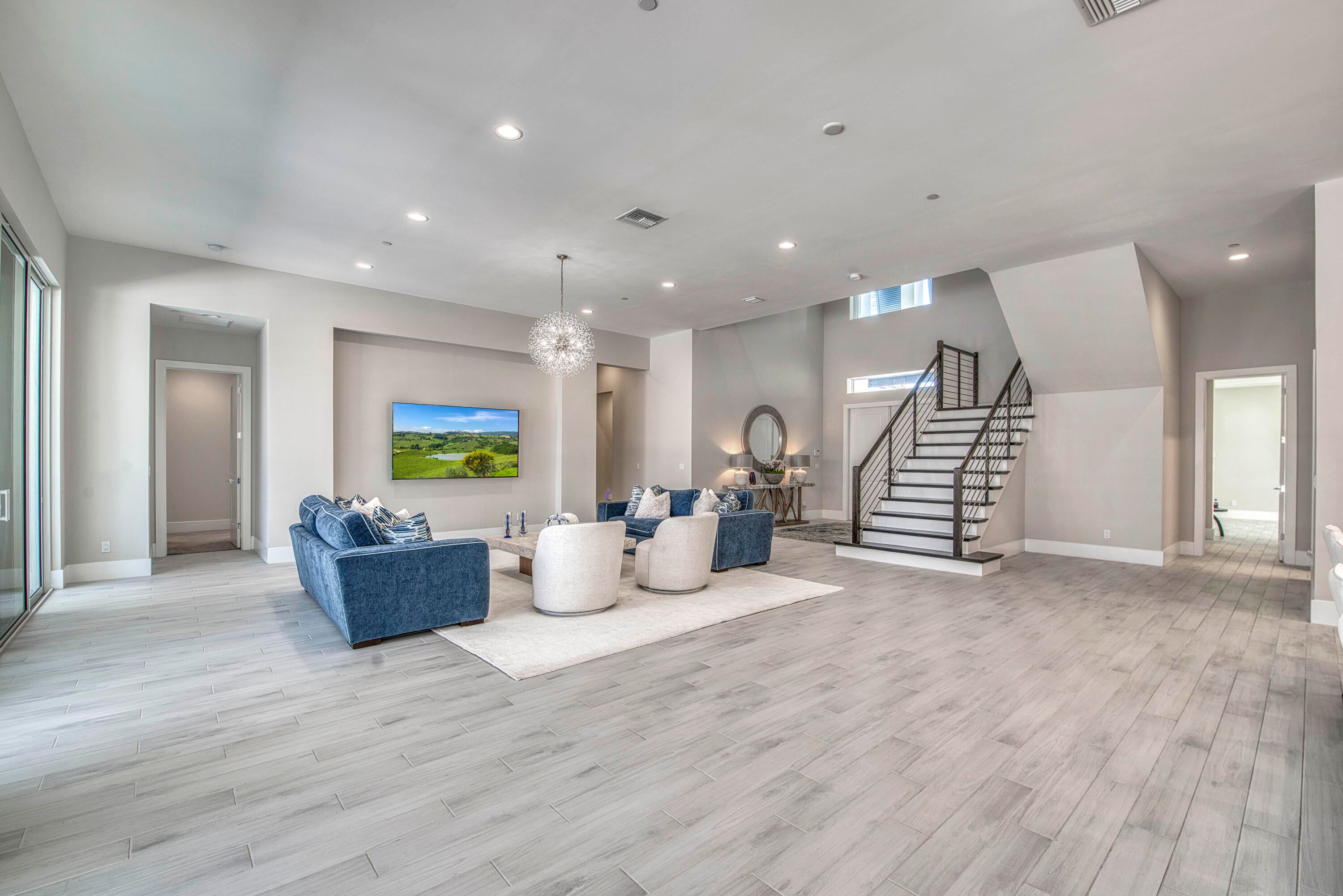 Welcome to this exceptional 2022-built Dominica floor plan residence offering 5 bedrooms, 6.5 bathrooms, 5,342 sq ft, and a 3-car garage, perfectly situated on an oversized 0.28-acre lot within walking distance to Avenir's resort-style clubhouse and amenity center. This immaculate, like-new home showcases high-quality finishes and thoughtful upgrades throughout, including full impact glass, an upgraded A/C system, a tankless water heater, white plantation shutters, custom closets, soaring ceilings, and expansive wall-to-wall sliding glass doors that seamlessly blend indoor and outdoor living. The open-concept design features a primary suite and guest suite on the main level, with three additional ensuite guest bedrooms upstairs, each offering walk-in closets and access to a shared loft