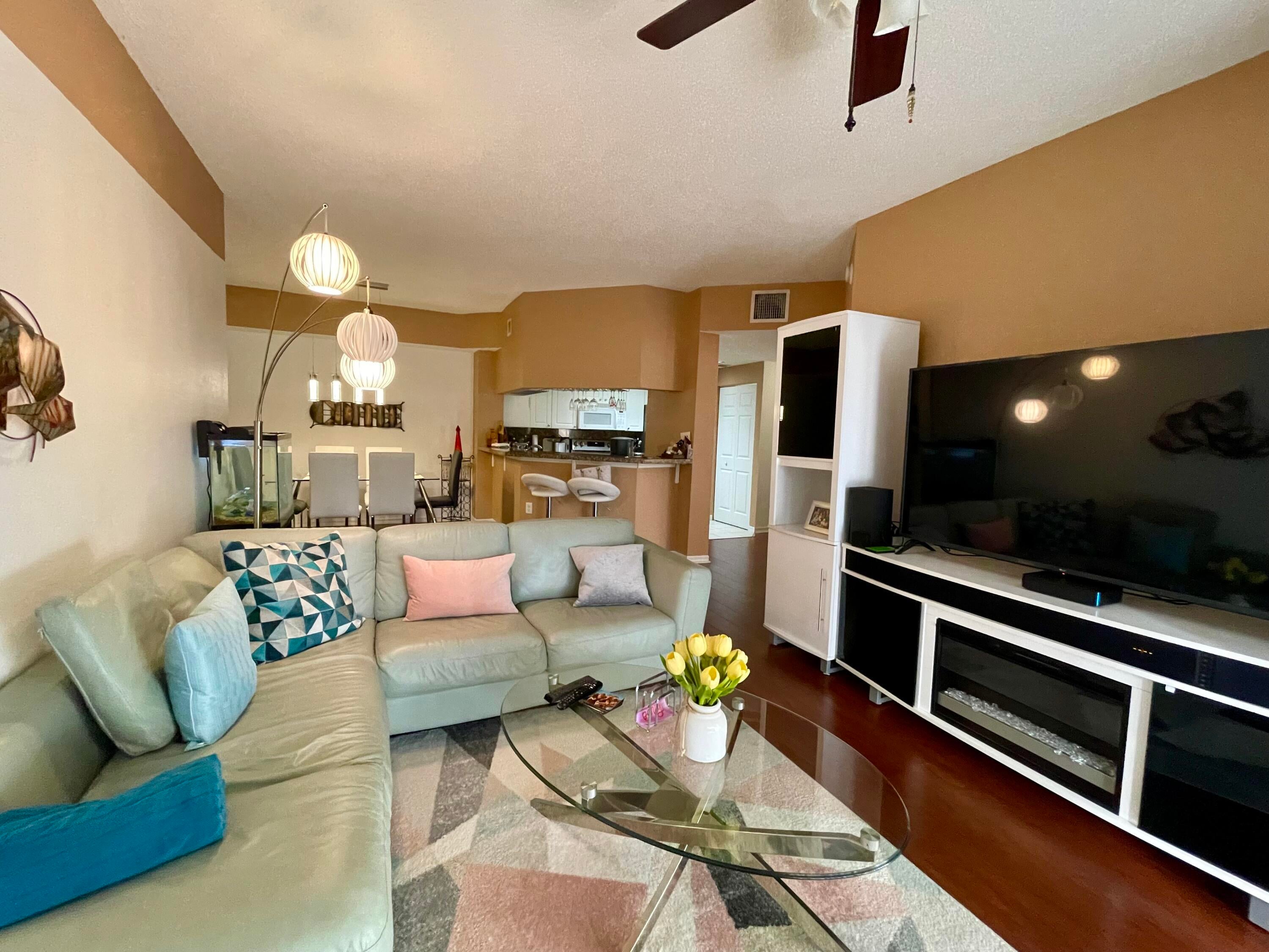 Great opportunity to buy a ground floor unit in San Matera. Enjoy resort style living in this 3 bedroom, 2 bath condo offering split floor plan, screened patio, wood floors and new kitchen appliances. San Matera amenities include clubhouse with pool, fitness center, sauna, steam room, billiards room, racquetball, tennis and pickleball. Prime location adjacent to the Gardens Mall with abundant dinning opportunities and quick access to PBI.