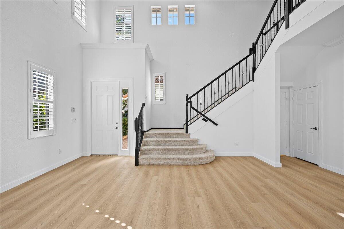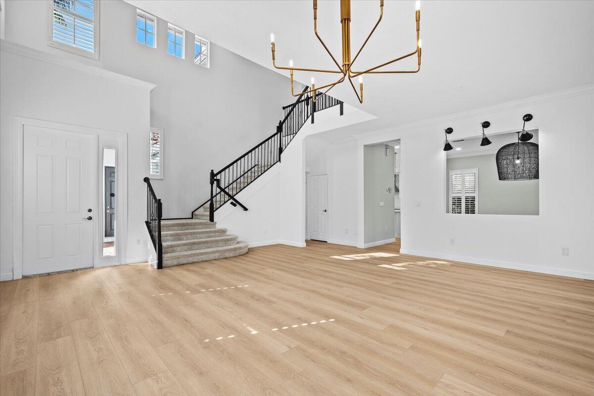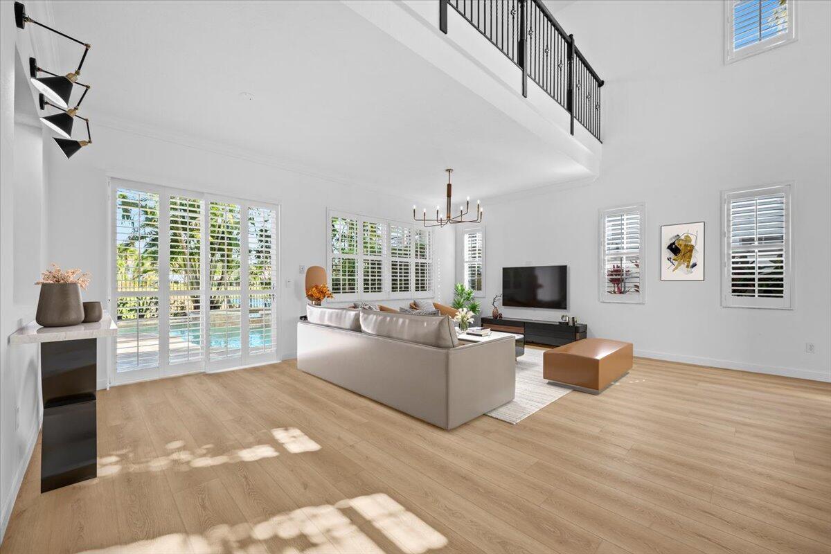 Welcome to this Stunning Lakefront Pool Home Featuring 4 Beds/3.5 Baths, with a Separate Courtyard Guest Suite. Newly Renovated & Reconfigured Chef's Kitchen Includes; Top-Notch Stainless-Steel Appliances, Hooded Stovetop, Quartzite Counters, Subway Tile Backsplash + Farmers Sink. Large Great Room (Living/Dining Rooms) has 25' Ceilings, Separate Family Room + Upstairs Entertainment Loft. Oversized Owner's Suite has a Private Balcony with Lake & Pool Views. Stunning Tropical Fenced-In Backyard with Pool/Spa has an Extended Paver Stone Patio + Covered Lanai. Luxury Vinyl Plank Floors, Central Vacuum System + 2 Car Garage with Easy Care Epoxy Floors. Enjoy Evergrene's Resort-Like Amenities. Minutes to the Beach, Tennis Center, Public Golf Courses, Downtown & the Airport, ''A'' Rated Schools.