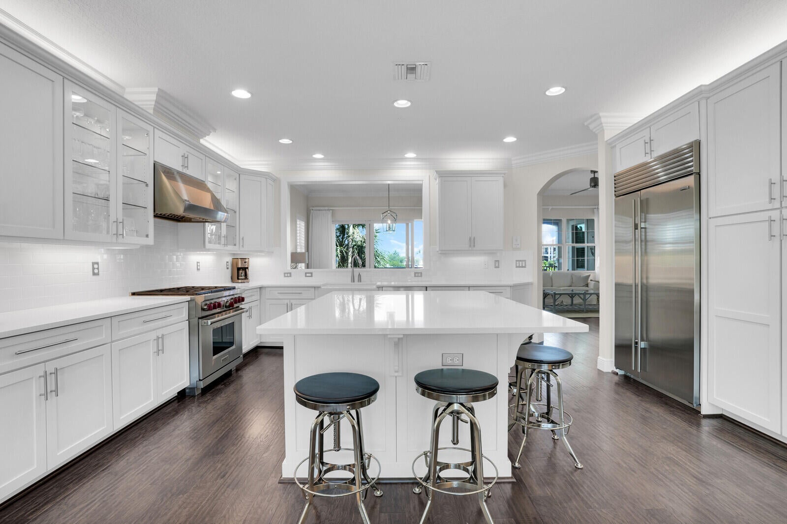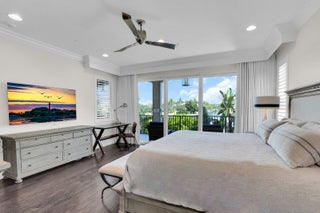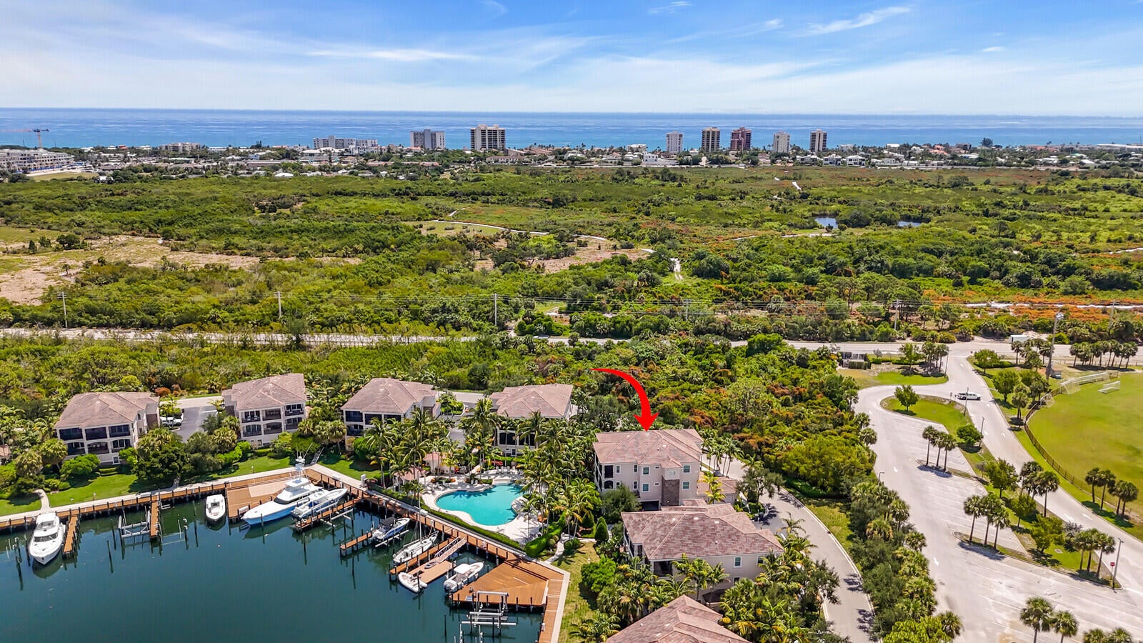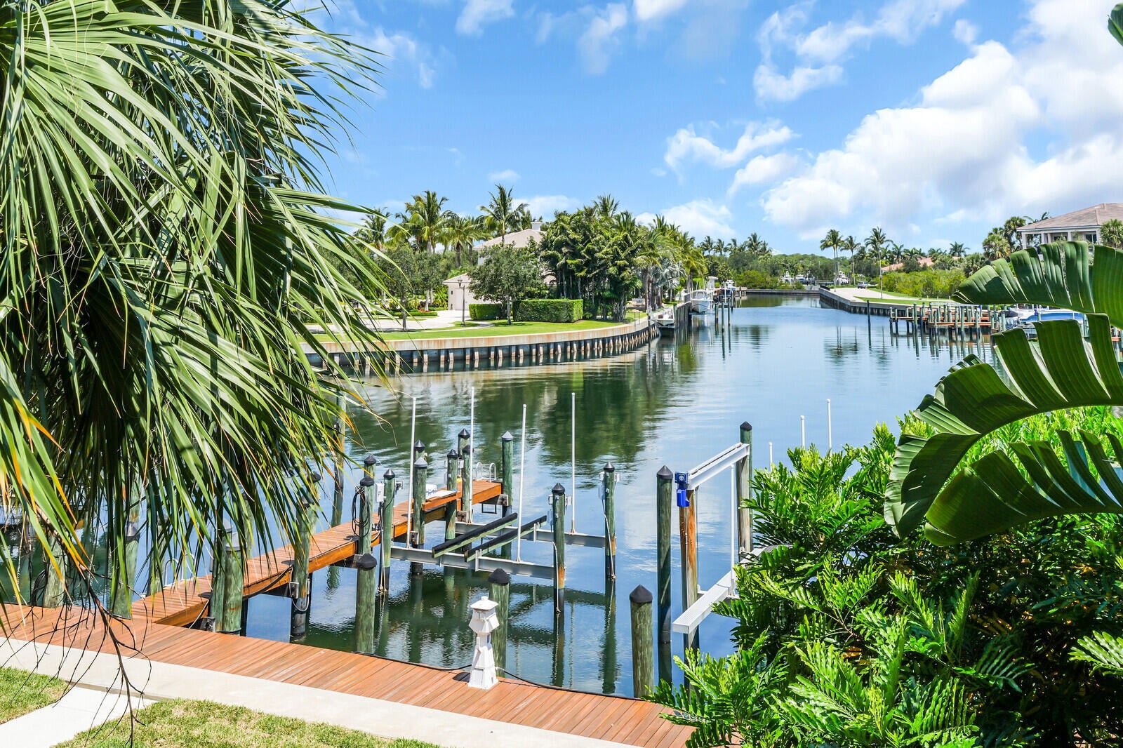 Discover timeless waterfront elegance in the gated enclave of Frenchman's Harbor. This exceptional residence features a 65-foot deep-water dock with a 22-foot beam and a 16,000 lb lift, no fixed bridges, and direct Atlantic access via the Palm Beach and Jupiter Inlets. A two-car garage adds convenience.The open-concept floor plan includes a private elevator, a living and a family room, ideal for entertaining. The chef's kitchen offers Wolf, Sub-Zero, and Bosch appliances, white quartz countertops, custom cabinetry, a wine refrigerator, and a large center island.An oversized waterfront balcony showcases stunning water views, completing this refined coastal offering, perfectly positioned for elevated boating and waterfront living.*Information deemed reliable, not guaranteed
