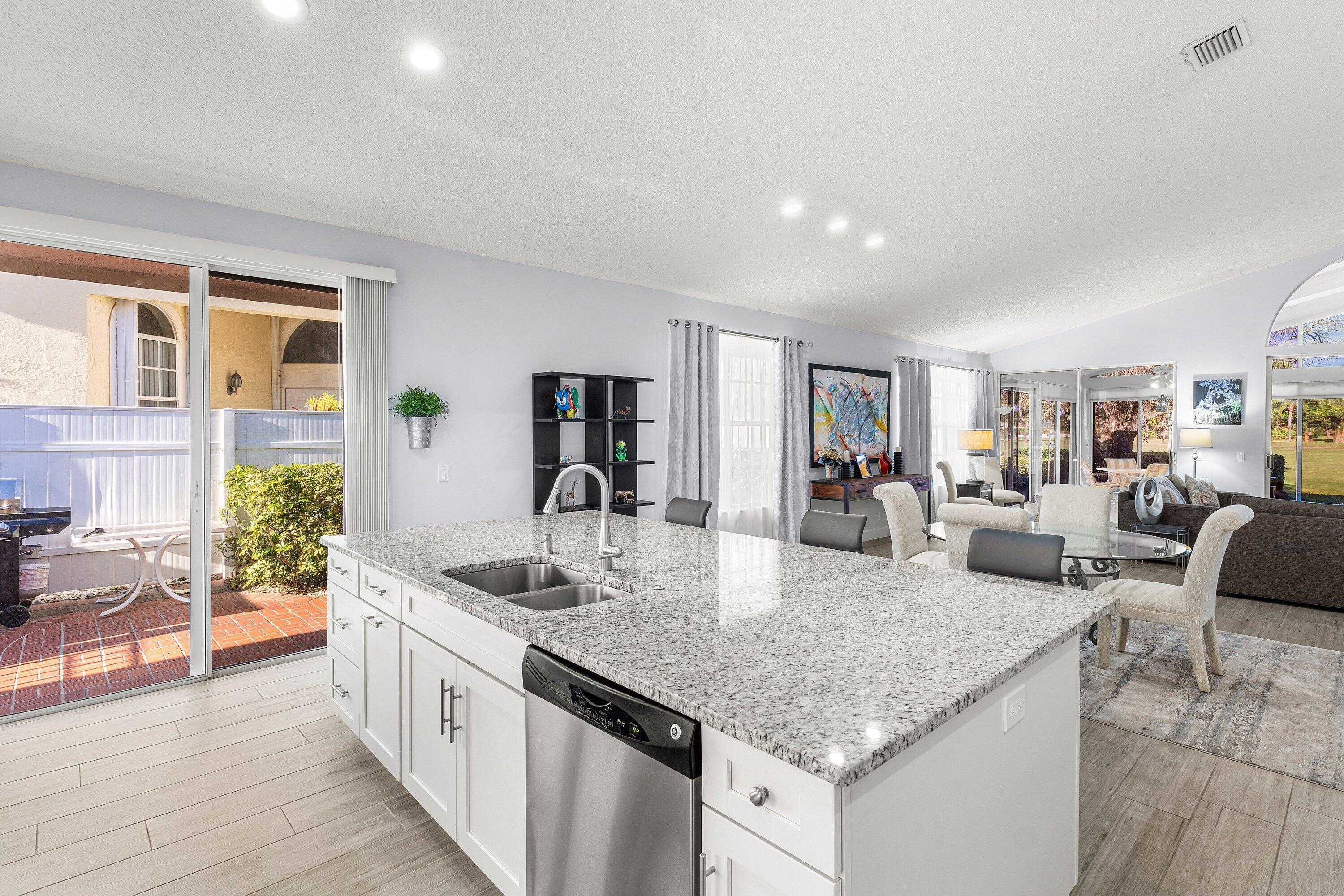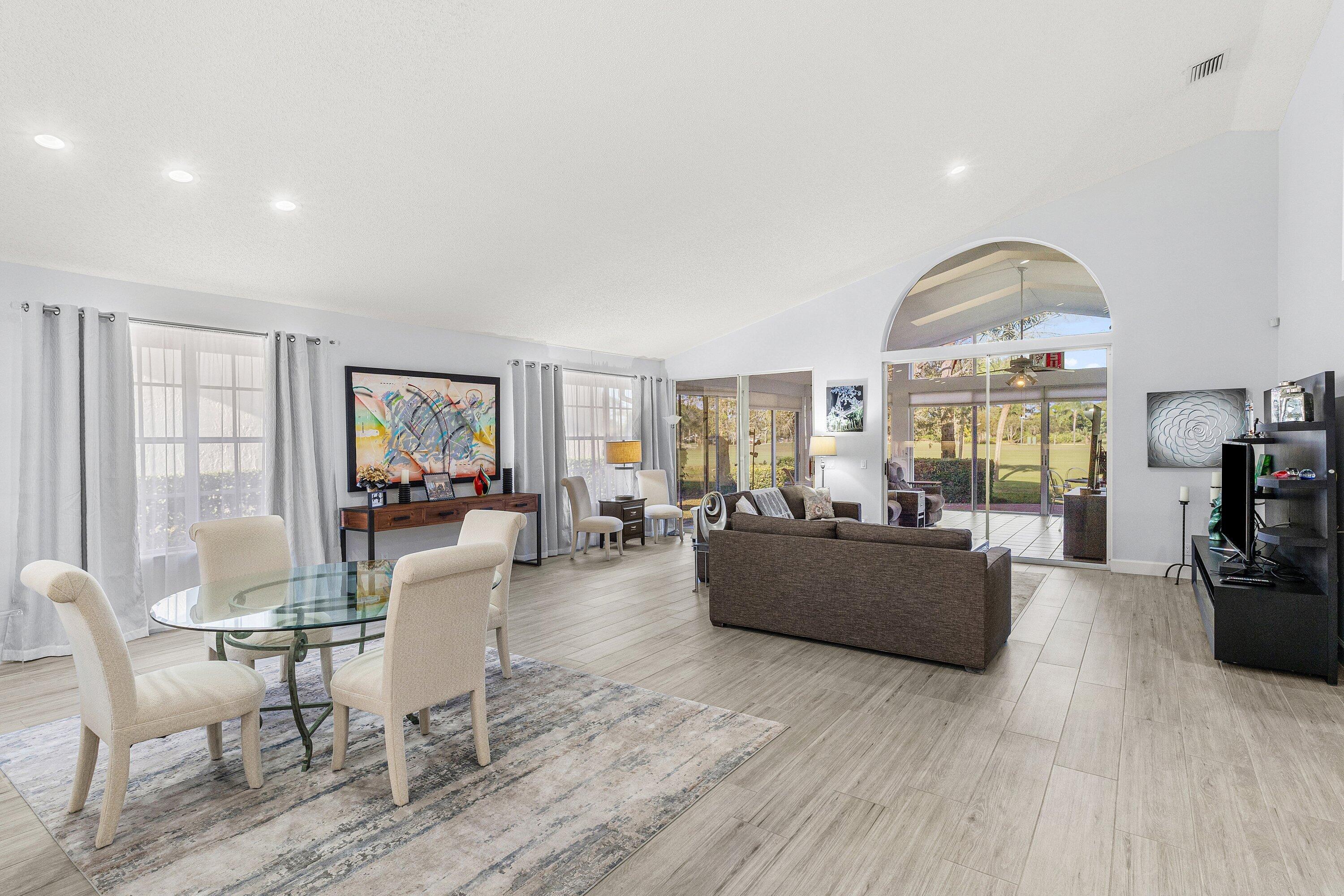 Welcome to Eastpointe Country Club, widely regarded as one of Palm Beach County's finest private golf communities. Ideally situated along the 16th fairway of the West Course, this residence offers a serene setting with picturesque golf course views.Thoughtfully designed, the home features three generously sized bedrooms and three full baths, providing comfort and privacy for both family and guests. The expansive kitchen flows effortlessly into the dining area, creating a warm and inviting space for entertaining. Just beyond, a large glass-enclosed, air-conditioned lanai serves as a tranquil retreat, perfect for enjoying indoor-outdoor living throughout the year.Eastpointe offers an exceptional lifestyle with two championship golf courses, the newly unveiled Pointe lifestyle...