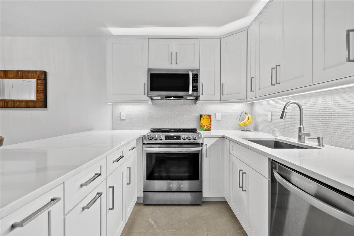 Totally RENOVATED 3 bed/2.5 bath townhouse with a lake view! This model-perfect unit has a brand new kitchen with upgraded appliances, and new porcelain tile flooring throughout, master bedroom suite has been opened up to include a brand new bathroom with upgraded tile and an extra large shower, his/her oversize closets. The master bedroom has a spectacular private view of the lake. Guest bathrooms have also been totally renovated. The guest bedroom downstairs has a built-in closet. The spacious private courtyard makes for a great outdoor entertaining area. Garden Lakes has great amenities and is centrally located to shopping, restaurants, the Gardens Mall, beaches and has easy access to I-95 and Florida's Turnpike.