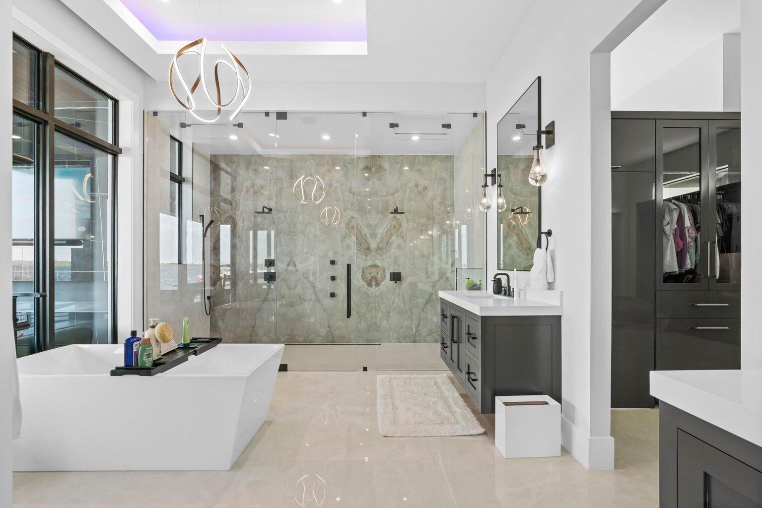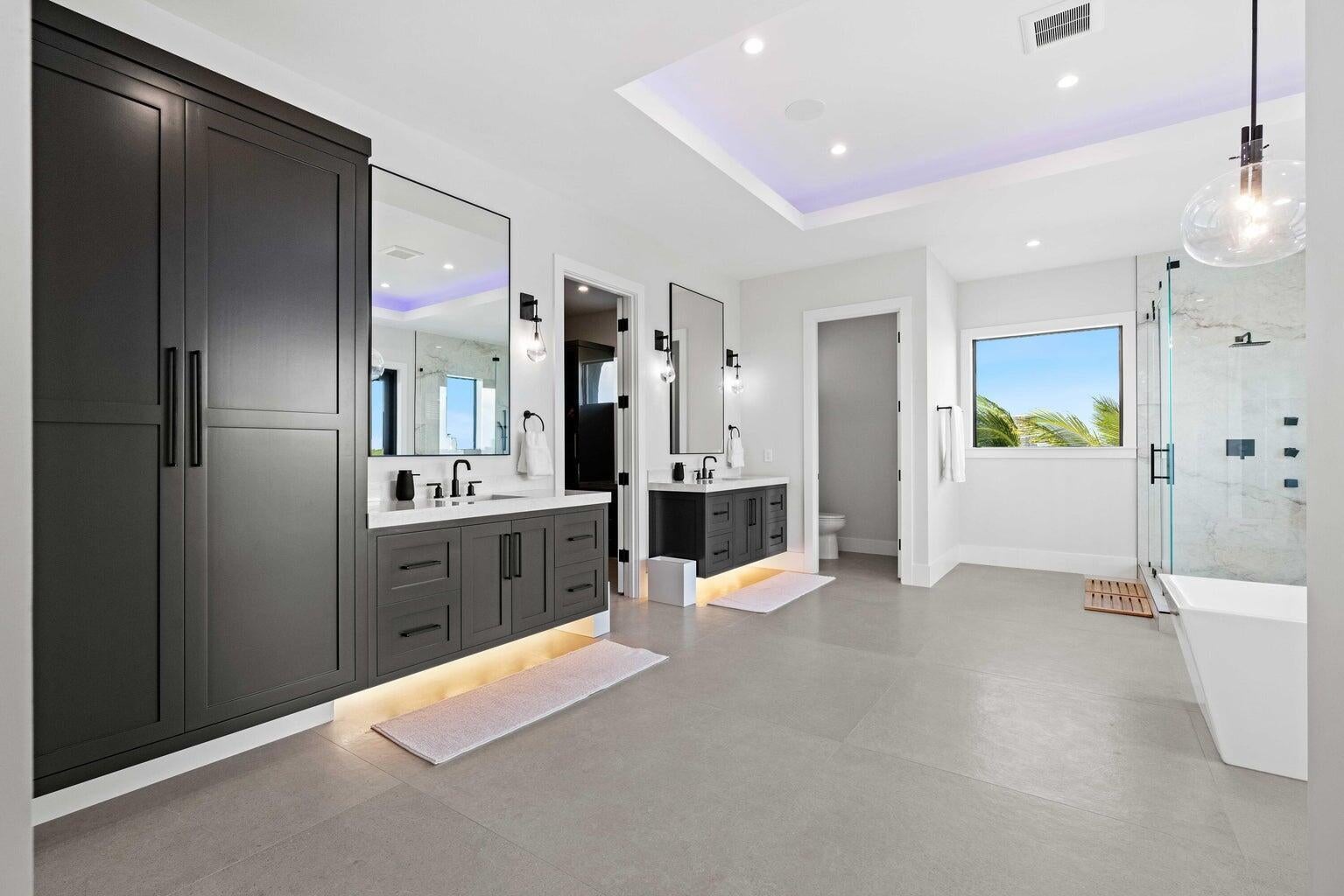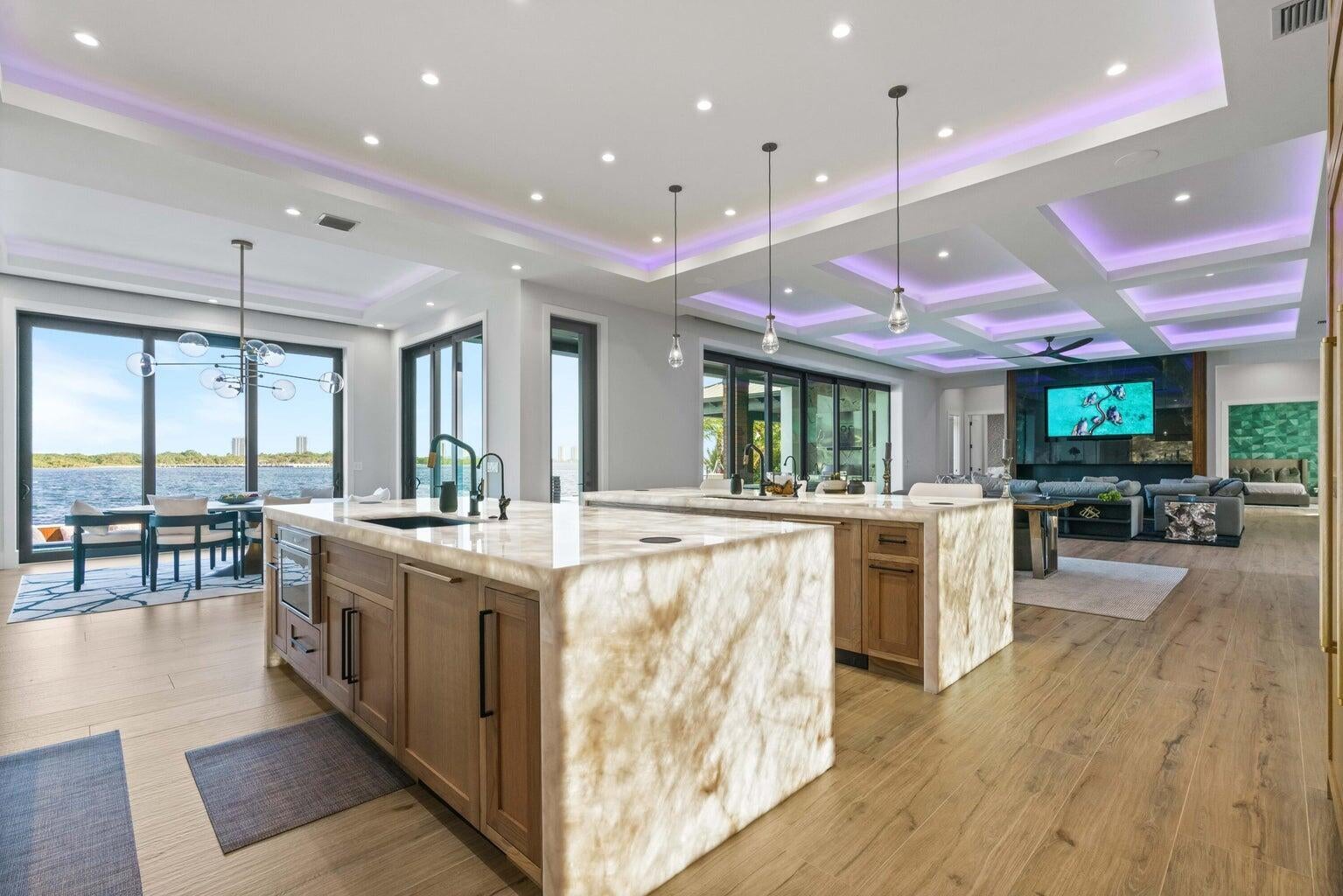 WELCOME TO 712 LAKESIDE CIR. THIS AMAZING NEWER CONSTRUCTION HOME WAS COMPLETED IN 2022 AND NO EXPENSE WAS SPARED. THIS HOME OFFERS ONE OF THE WIDEST INTRACOASTAL VIEWS IN PALM BEACH COUNTY. THE HOME OFFERS A UPSTAIRS AND DOWNSTAIRS PRIMARY BEDROOM THAT OFFER STUNNING VIEWS. THE HOME HAS ALL THE LATEST SMART HOME AND GREEN HOME TECHNOLOGY RUN FROM THE COMFORT OF YOUR CELL PHONE ANY WHERE IN THE WORLD. THE HOME HAS A 200 FOOT SEAWALL AND DOCK WITH TWO 32K ULTRA HIGH SPEED HIGHTIDE BOAT LIFTS. CAPABLE OF LIFTING UP TO A 50 FT BOAT. AS WELL AS A DOUBLE JETSKI LIFT. THIS HOME IS A TRUE ENTERTAINERS PARADISE WITH COMPLETE PRIVACY IN THE BACKYARD WITH NO NEIGHBORS IN SIGHT. JUST WIDE OPEN VIEWS OF THE INTRACOASTAL WITH A RESORT STYLE POOL WITH ALL THE BELLS AND WHISTLES.